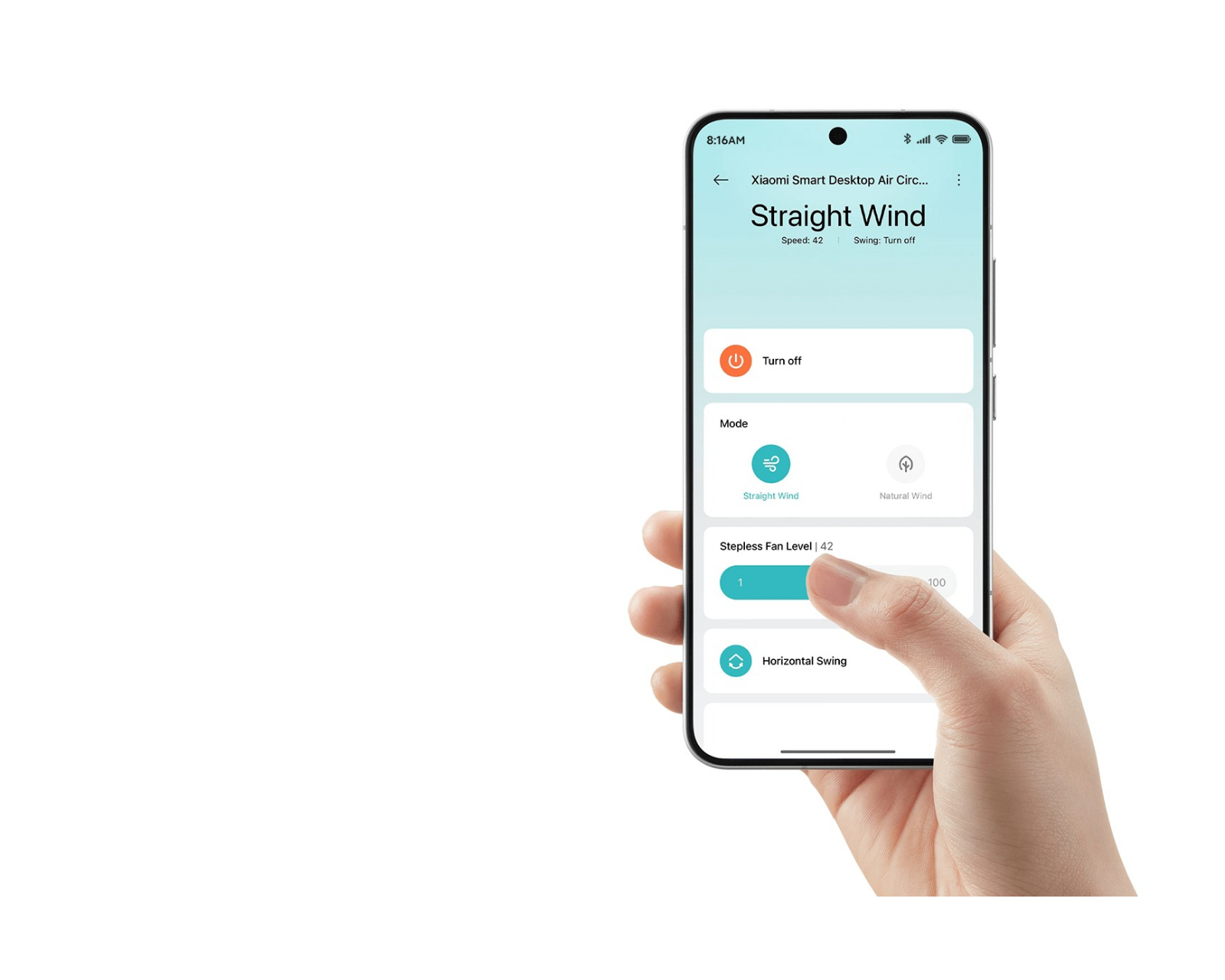Xiaomi Smart Desktop Luftcirkulationsfläkt är en kompakt fläkt som erbjuder kraftfull luftcirkulation och är designad för att passa i alla miljöer. Med en ljudnivå på endast 28,4 dB(A) och 100 olika hastighetsinställningar tillhandahåller fläkten en tyst och effektiv lösning för att hålla ett behagligt inomhusklimat. Den är utrustad med en Type-C-port för portabel laddning, vilket gör den lämplig för användning när som helst och var som helst.Fläktens konstruktion inkluderar en stabil bas som är halv storleken av ett A4-ark, vilket gör den lätt att flytta och placera. Den erbjuder en stark luftström på 1180 m³/h och kan cirkulera luft i ett rum på upp till 20 m² på cirka tre minuter. Med automatisk 3D-luftdistribution som ger 120° horisontell och 100° vertikal svängning, säkerställs att den kalla luften når varje hörn av rummet. Fläkten kan även drivas av en Xiaomi power bank för flexibilitet och portabilitet.