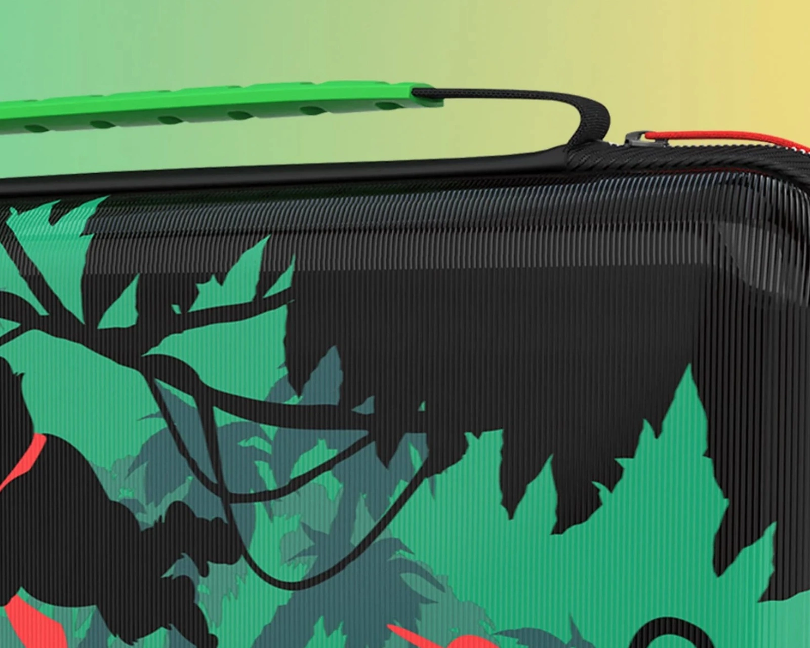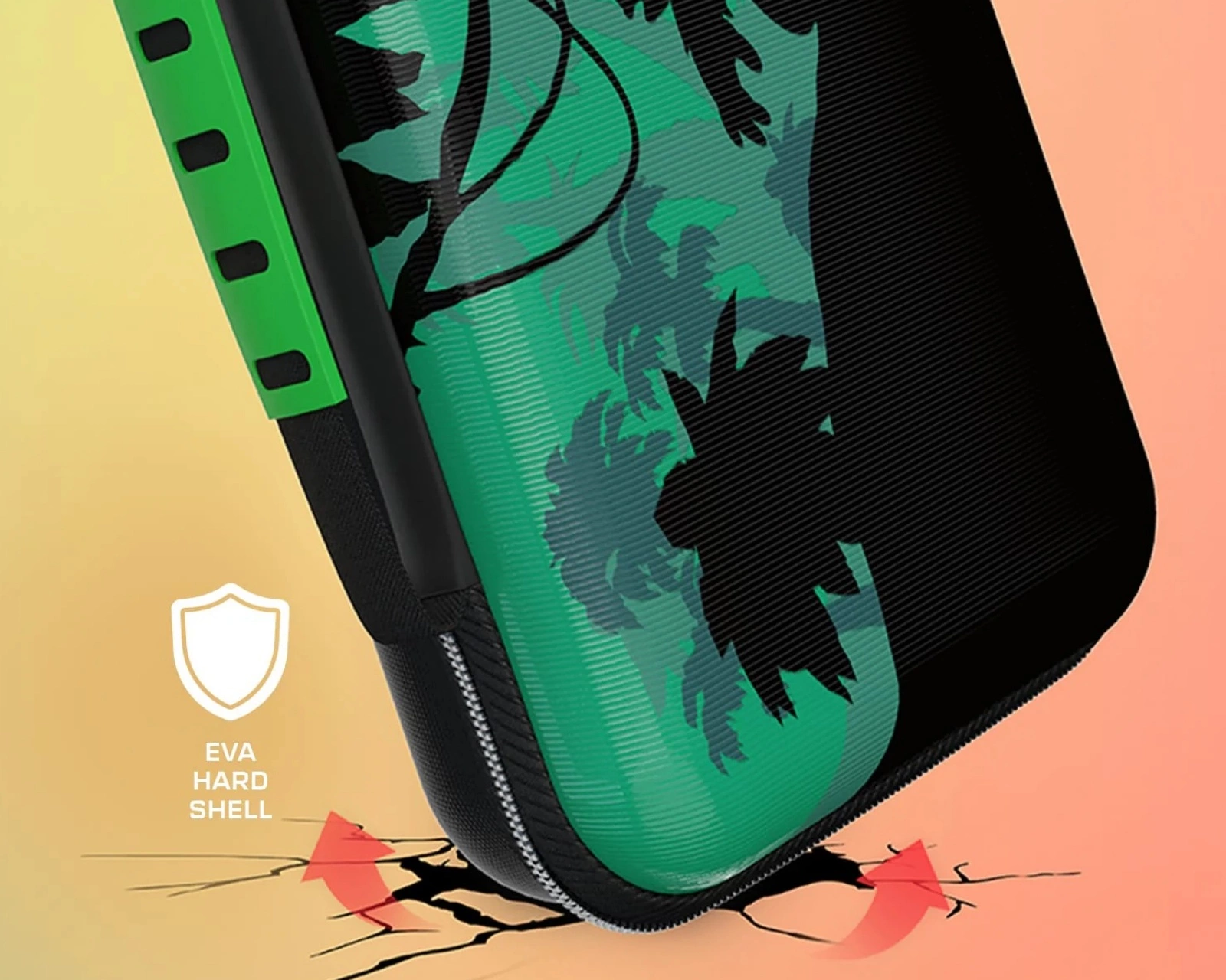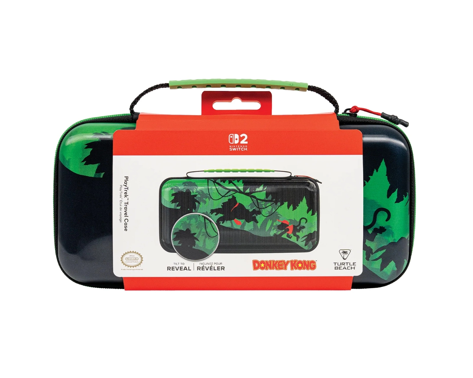 PlayTrek Resväska är ett bärbart fodral från Turtle Beach, utformat för att skydda Nintendo Switch™ 2, Nintendo Switch™ och Nintendo Switch™ - OLED Model. Fodralets design kombinerar funktionalitet med hållbarhet för att säkerställa att konsolen är skyddad under resor. Med en vikt på 0,83 lbs (378 g) och mått på 11,81” x 6,10” x 2,28” (300 mm x 155 mm x 58 mm) är det en kompakt lösning för gamers på språng.Fodralet har en strukturerad EVA-moldad skal hölje som är täckt med TPU-belagd polyester, vilket bidrar till en hög nivå av stöt- och slittålighet. Det vadderade inre facket skyddar skärmen från repor, medan en inbyggd nätficka erbjuder förvaring för mindre tillbehör som kablar eller öronsnäckor. Dedikerade kortplatser ser till att spelkort hålls organiserade. Ett förstärkt handtag ger en komfortabel hållbarhet för enkelt bärande.