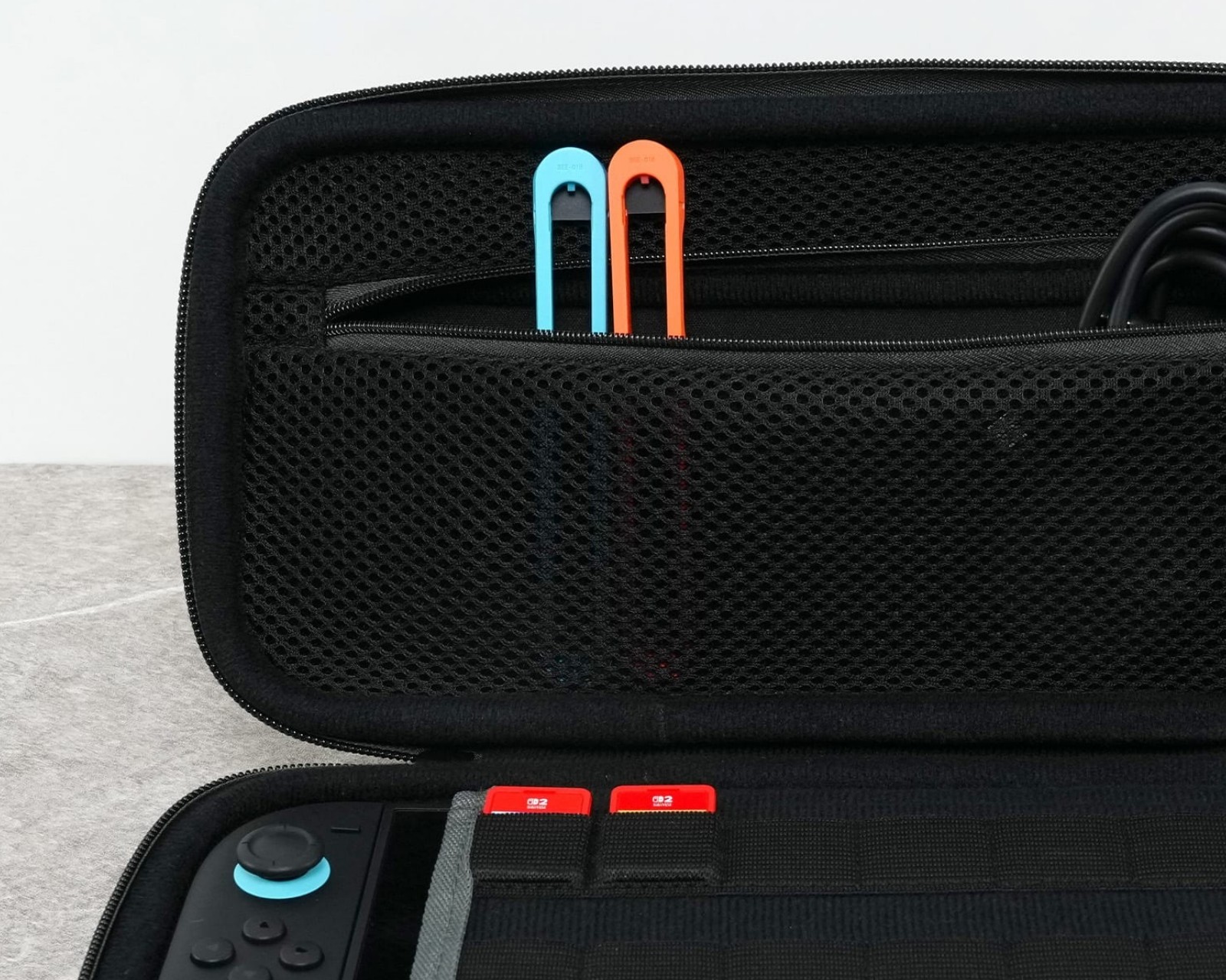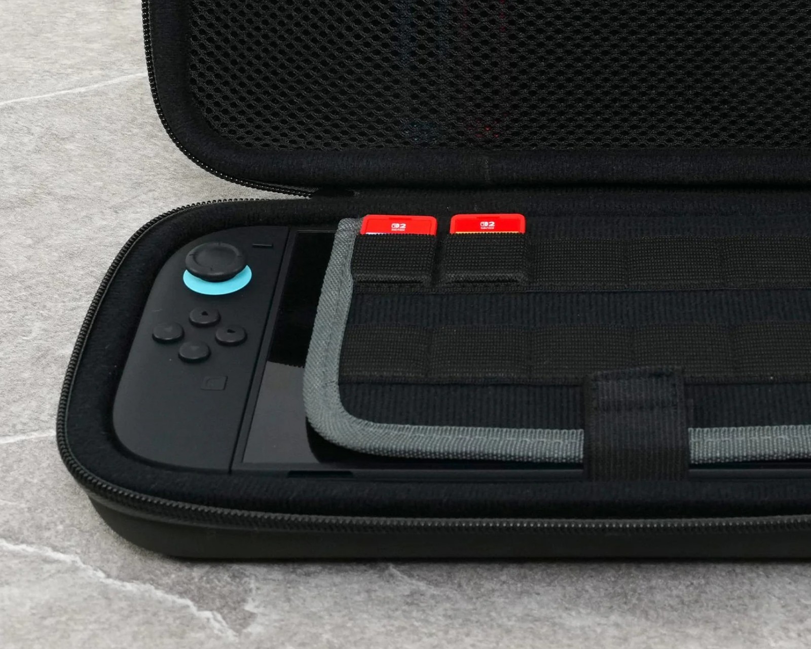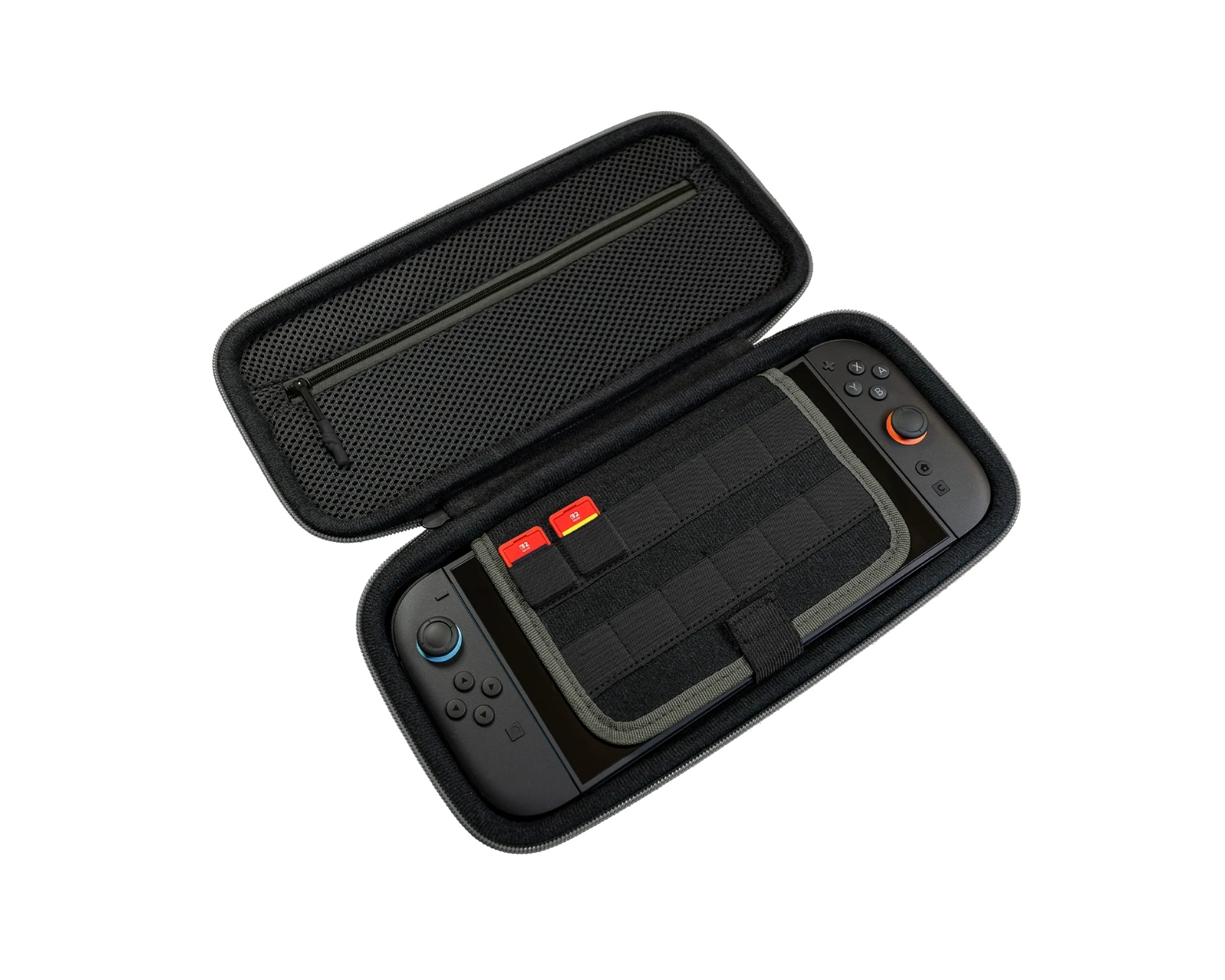 PlayTrek Resväska är ett bärbart fodral från Turtle Beach, utformat för att skydda Nintendo Switch™ 2, Nintendo Switch™ och Nintendo Switch™ - OLED Model. Fodralets design kombinerar funktionalitet med hållbarhet för att säkerställa att konsolen är skyddad under resor. Med en vikt på 0,83 lbs (378 g) och mått på 11,81” x 6,10” x 2,28” (300 mm x 155 mm x 58 mm) är det en kompakt lösning för gamers på språng.Fodralet har en strukturerad EVA-moldad skal hölje som är täckt med TPU-belagd polyester, vilket bidrar till en hög nivå av stöt- och slittålighet. Det vadderade inre facket skyddar skärmen från repor, medan en inbyggd nätficka erbjuder förvaring för mindre tillbehör som kablar eller öronsnäckor. Dedikerade kortplatser ser till att spelkort hålls organiserade. Ett förstärkt handtag ger en komfortabel hållbarhet för enkelt bärande.