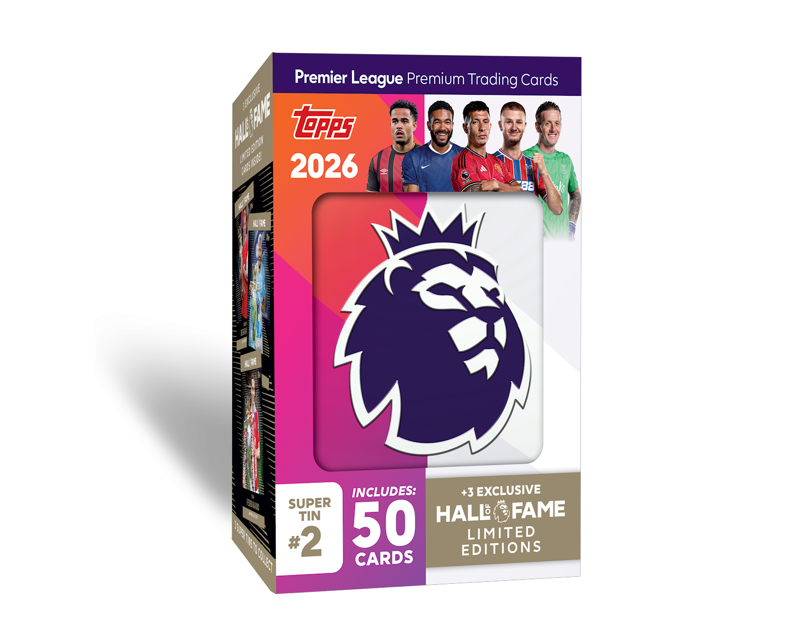Premier League Super Tin 25/26 är en samling fotbollskort från Topps. Denna samling innehåller kort från de främsta engelska klubbarna och stjärnspelarna i Premier League. Super Tins erbjuder åtta paket, där varje paket innehåller tio kort, samt tre exklusiva Limited Edition-kort och chansen att upptäcka sällsynta kort. Den riktar sig till samlare och fotbollsfans i alla åldrar. Produkten väljs slumpmässigt vid beställning.Produktens uppbyggnad inkluderar kort med ny design och specialkort, vilket ger en ökad upplevelse för såväl nya som etablerade samlare. Varje Super Tin består av strategiskt utvalda kort som speglar det aktuella spelet i ligan, inklusive Rookie-kort med de mest lovande talangerna. Det finns också en sektion av kort som hedrar legender från Premier League Hall of Fame, vilket bidrar till samlingens värde. Den utförda kvaliteten på korten överensstämmer med Topps standarder och ger en långlivad produkt.