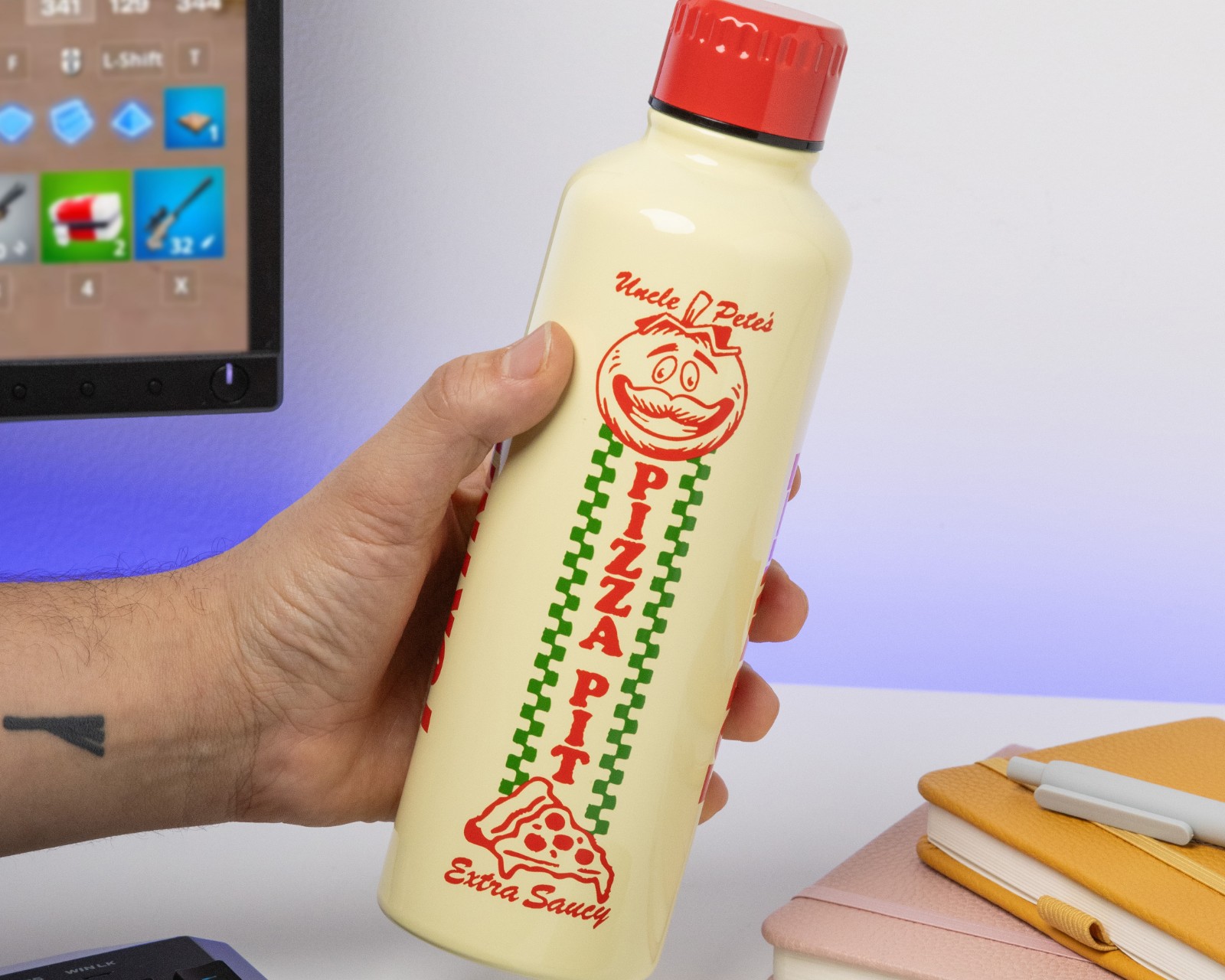 Fortnite Vattenflaska i metall 500 ml är en funktionell vattenflaska designad för att hålla drycken varm eller kall under längre tid. Tillverkad av rostfri stål med en kapacitet på 500 ml gör den till ett praktiskt val för vandrare, studenter eller kontorsarbetare. Den skruvbara locket säkerställer att flaskan är läckagefri och lätt att hantera. En tydlig inriktning mot fans av Fortnite, flaskan är en officiellt licensierad produkt med Pizza Pit-design.Flaskan är utformad för både funktion och hållbarhet. Rostfritt stål är materialvalet, vilket ger en robust konstruktion med god isolationsförmåga. Den praktiska skruvtoppen hindrar spill, vilket gör den lätt att använda under olika aktiviteter. Vattenflaskan är utformad för att vara återanvändbar, vilket bidrar till en mer hållbar livsstil. Observera att den inte är lämplig för diskmaskin eller mikrovågsugn, vilket är viktigt att beakta för att bevara dess kvalitet och funktionalitet. Flaskan har en design som speglar det populära spelet, vilket gör den till en attraktiv accessoar för alla Fortnite-entusiaster.