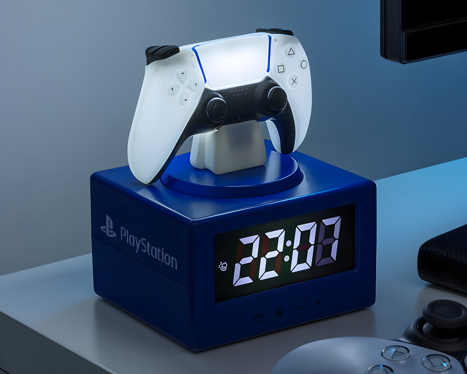 Playstation Controller Icon är en väckarklocka från Paladone som förenar funktionalitet med en ikonisk design. Dess tydliga display gör det enkelt att se tiden från olika vinklar, vilket är praktiskt för alla gamers som vill ha en stilren och informativ detalj i sitt rum. Med en höjd på cirka 18 cm är denna väckarklocka en perfekt följeslagare på nattduksbordet eller i spelrummet. Den är officiellt licensierad och utgör en makalös present till både spelentusiaster och fans av PlayStation. Väckarklockan drivs av 3x AA-batterier (ingår ej).Sammanfattning