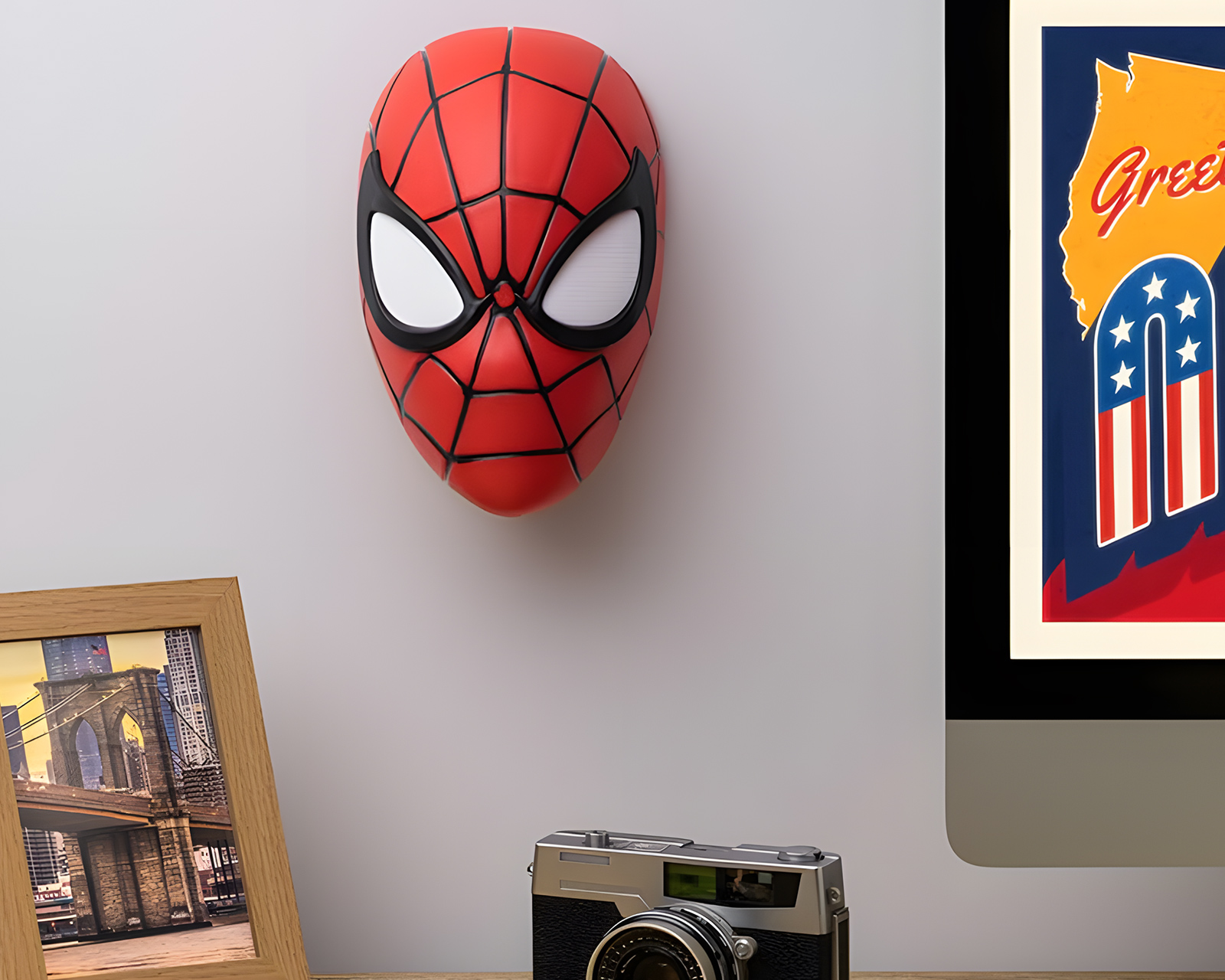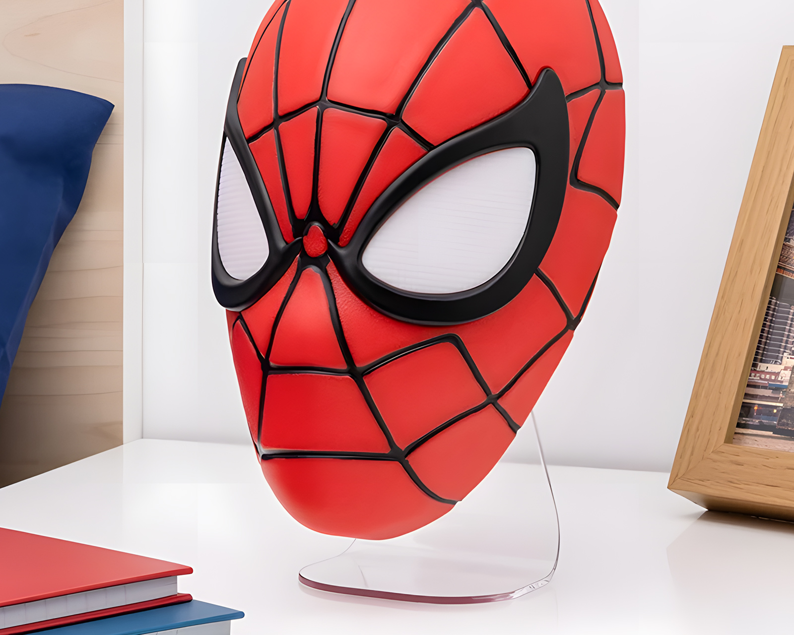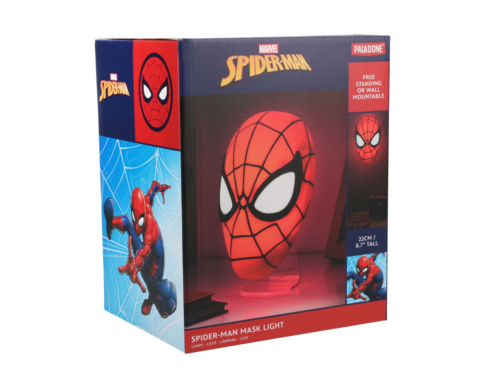 Spiderman Mask Light är en lampa från Paladone. Denna LED-lampa tar inspiration från den ikoniska Spiderman-masken och är designad för entusiaster av popkultur och gaming. Lampan är tillverkad av hållbar plast och ger en unik atmosfär i ditt hem eller spelrum.Byggkvaliteten hos Spiderman Mask Light är hög och den är officiellt licensierad, vilket säkerställer att detaljerna är trogna originaldesignen. Lampan finns i färgerna svart, röd och vit, vilket gör att den kan passa in i olika inredningar och stilar. Den energisparande LED-teknologin ger ett mjukt och behagligt ljus som är perfekt för både vardagsrum och som nattbelysning. Tack vare sin storlek och design kan lampan enkelt placeras på hyllor eller skrivbord, vilket gör den till ett utmärkt samlarobjekt för fans.