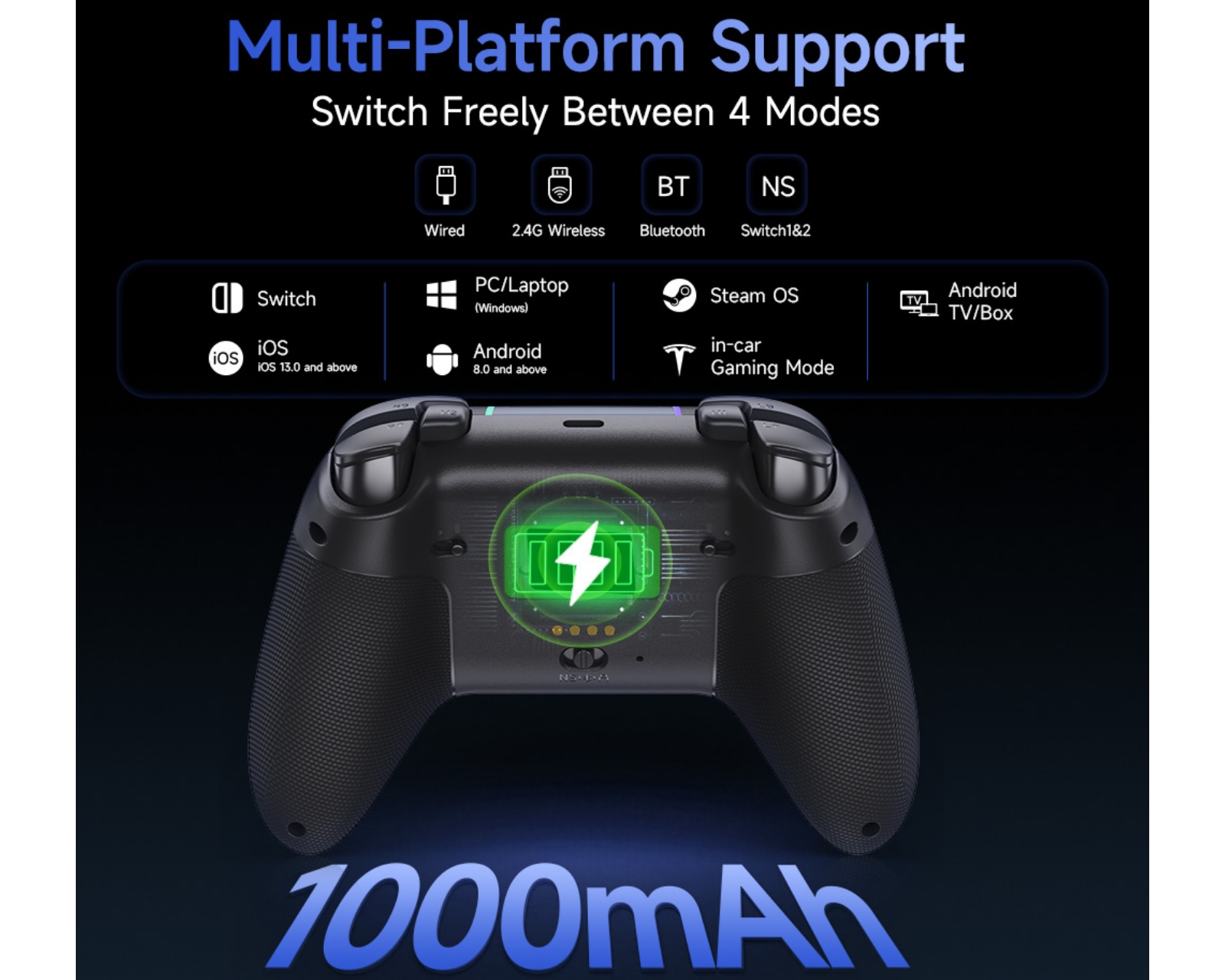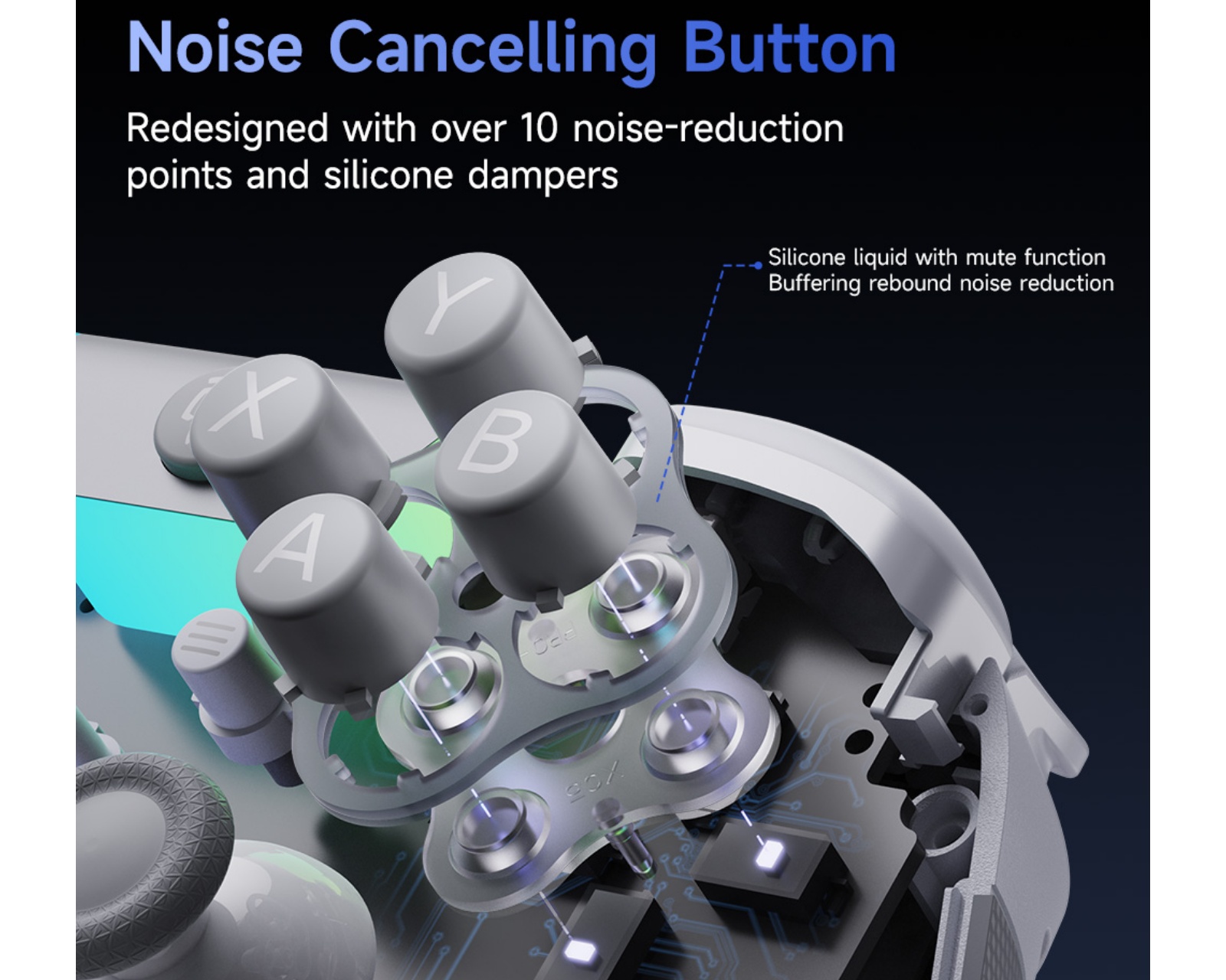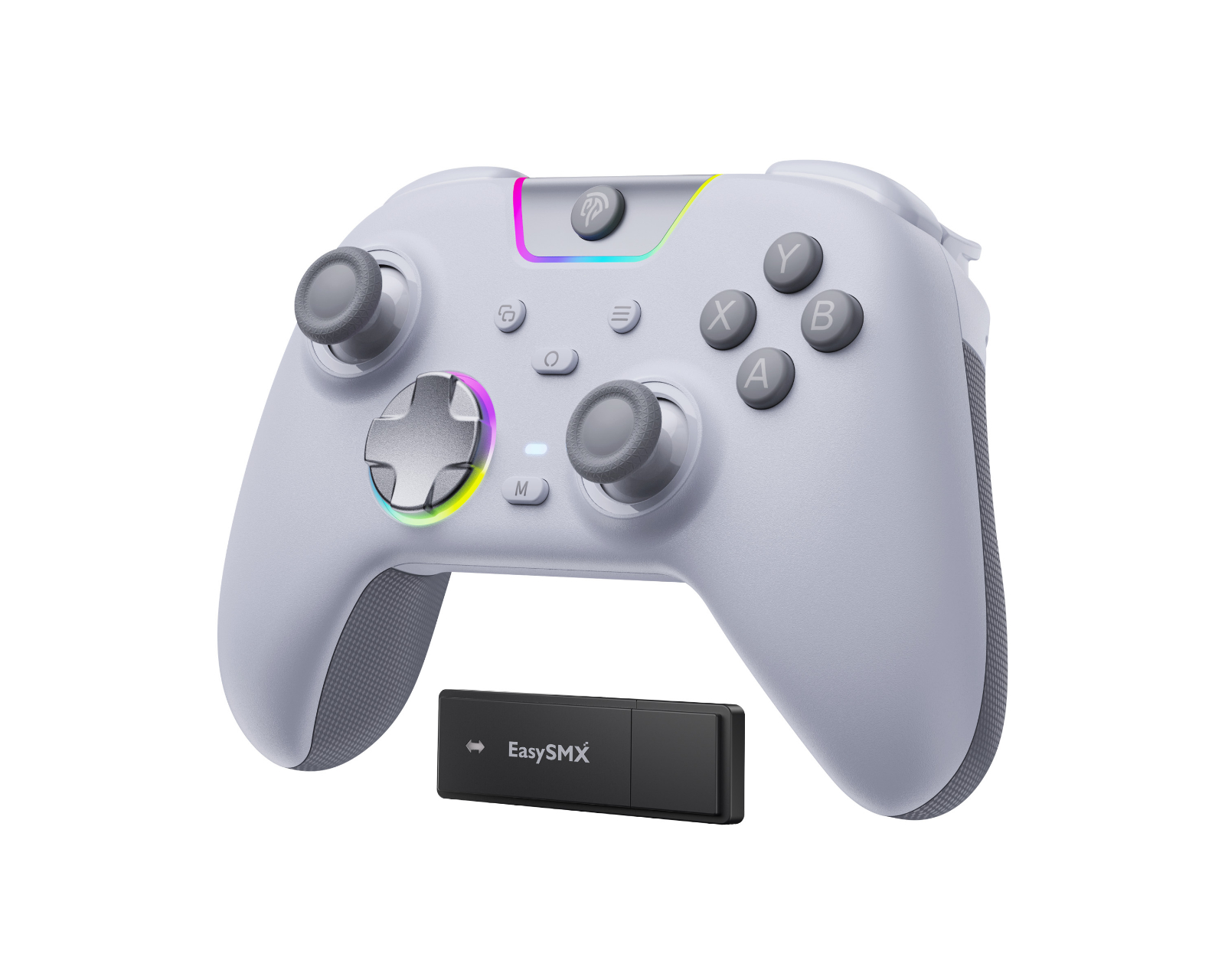 EasySMX X05Pro är en trådlös gamingkontroller som stödjer flera plattformar. Den är specifikt designad för användning med PC, Nintendo Switch samt mobila enheter. Kontrollen har ljuddämpande knappar för tysta spelupplevelser och erbjuder en avancerad dual-stage hall trigger-låsning för ökad precision i spelkontroll. Den är byggd med högkvalitativa material och integrerar Hall-effekt joysticks som möjliggör långvarig och responsiv användning.Utöver detta erbjuder den en 8-vägs D-pad för exakt riktning och utförande av kombinationer, samt ett uppgraderat vibrationssystem för förbättrad feedback under spel. Kontrollen stödjer också RGB-belysning med anpassningsbara färger för en personlig touch.