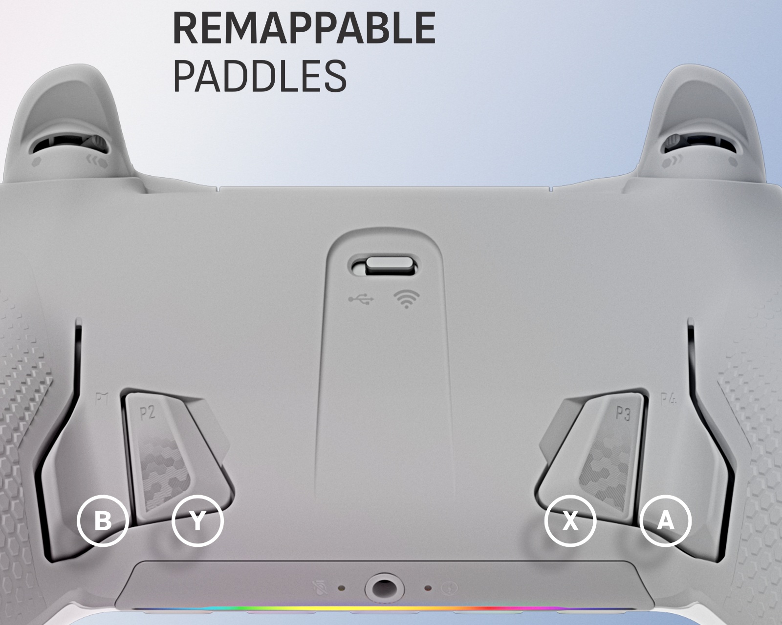 SCUF Envision Pro är en trådlös kontroll för PC från Scuf, designad för att förbättra spelupplevelsen. Den kommer med 11 ytterligare programmerbara ingångar, snabb wired/wireless-anslutning och avancerad programvara för makron och anpassningsmöjligheter. Kontrollens OMRON™ mekaniska ABXY- och D-Pad-knappar erbjuder en responsiv känsla.Kontrollens konstruktion inkluderar anti-drift Hall Effect-kontroller, vilket bidrar till längre livslängd för enheten. De fyra bakre paddlarna är programmerbara och gör det möjligt för gamern att behålla fokus på spakarna för snabbare reaktioner. Justerbara Instant Triggers gör att man kan växla mellan musliknande klick och full tangenttryckning. Användaren kan även konfigurera RGB-ljusslingan via Corsair iCUE. Kontrollens tre on-board profiler tillåter snabba justeringar mellan favoritspelen.