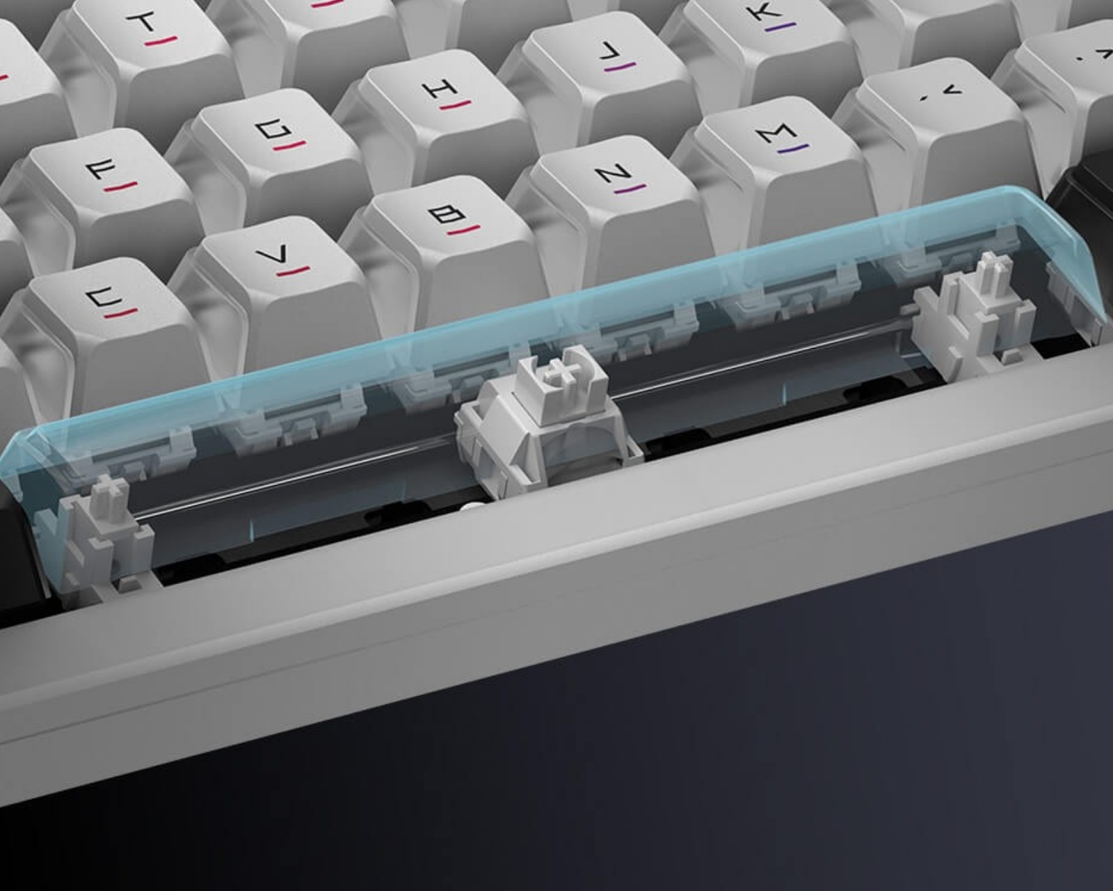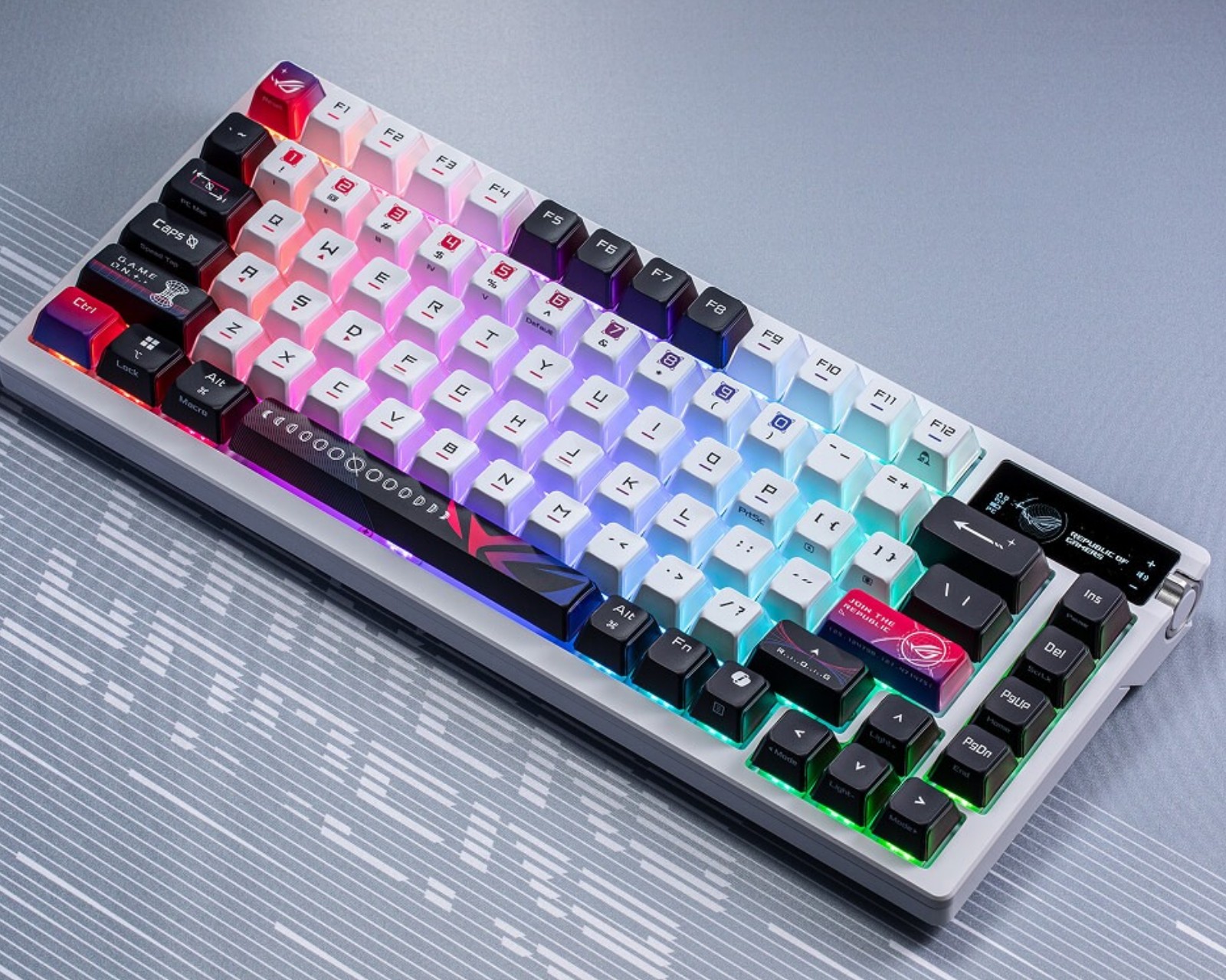ROG Azoth X är ett 75% gamingtangentbord från Asus som erbjuder trådlös anslutning och tri-mode koppling med ROG SpeedNova-teknologi. Den är försedd med hot-swappable ROG NX V2 mekaniska switchar, vilket möjliggör enklare anpassning av knapparna utan lödning. Tangentbordet är designat för teknikentusiaster och gamers som värdesätter en elit känsla vid skrivande och avancerad funktionalitet för spelande.Denna enhet har en metallöverdel och en FR4 positionsplatta som bidrar till en flexibel skrivkänsla, tillsammans med fem lager av dämpande skum och en gummibody-upphängning som effektivt absorberar vibrationer och ljud. Tack vare en södervänd PCB optimeras kompatibiliteten med olika keycaps och avancerade belysningslösningar. Det finns också en OLED-display som visar systeminformation och inställningsindikatorer, kompletterat med ett trevägs kontrollhjul för intuitiv funktionalitet. En silikonhandledsstöd säkerställer komfort och stöd under längre användningspass.