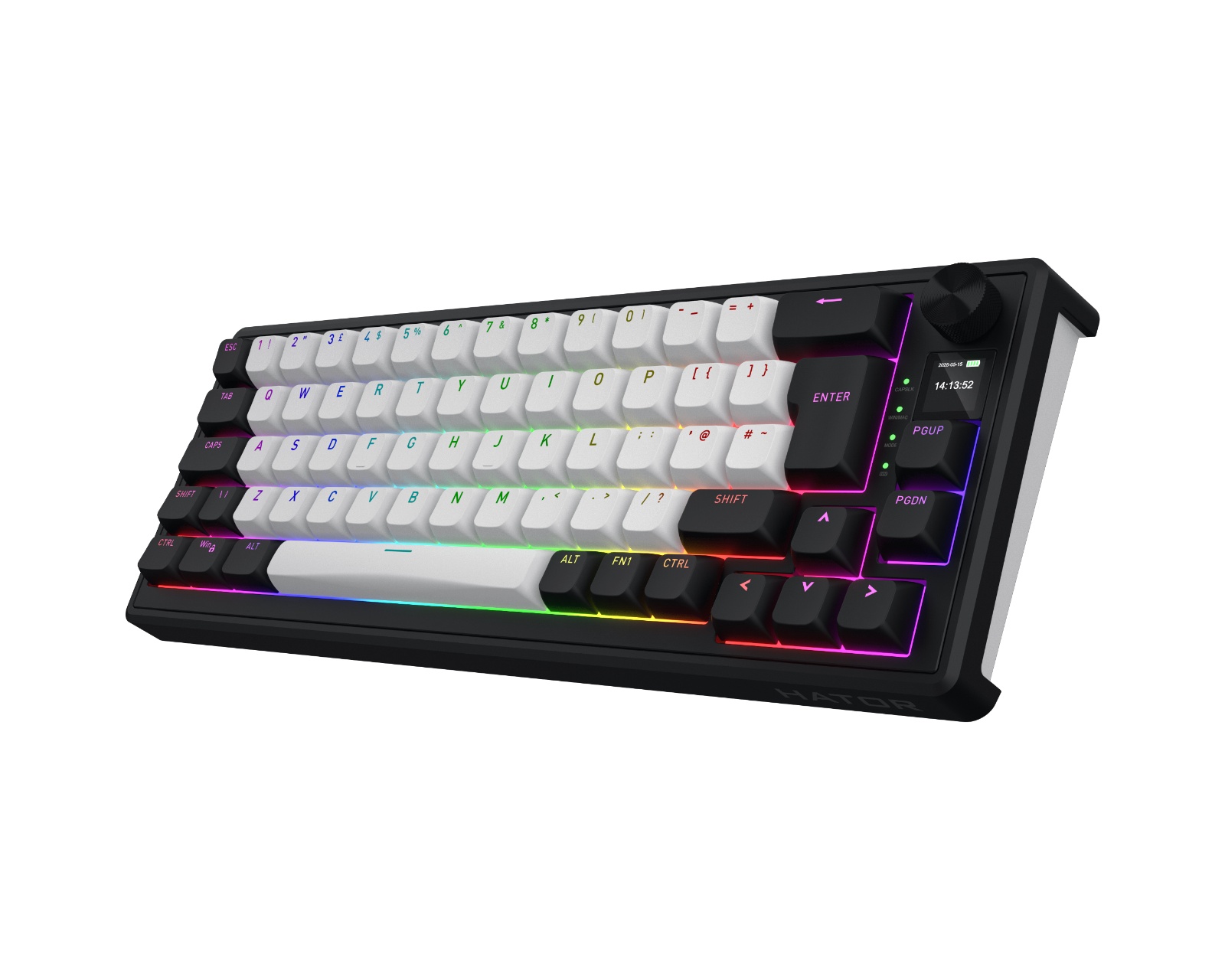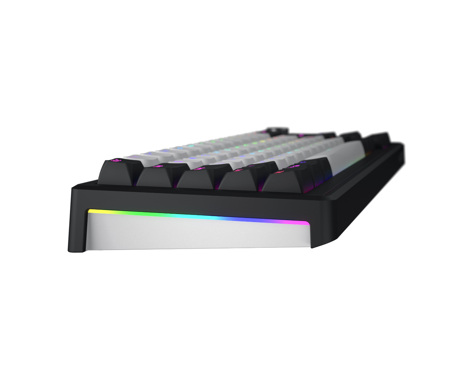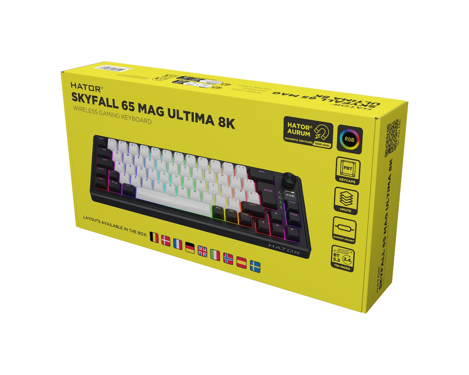 Skyfall 65% MAG Ultima 8K är ett trådlöst tangentbord från Skyfall som kombinerar hög prestanda med anpassningsbarhet. Med magnetiska Aurum Ice-switchar registreras varje tangenttryck med precision, där aktiveringspunkten kan justeras individuellt för varje tangent. Det erbjuder också en polling rate på upp till 8000 Hz, vilket minimerar fördröjningar vid registrering av knapptryck. I förpackningen ingår även extra keycaps för ISO layouterna: DE,Nordic, IT, ES, FRA och BE.Tangentbordets konstruktion är gasket-monterad och innehåller flerskikts-ljuddämpning, vilket ger ett kontrollerat nedslag och minskar resonans. Den flexibla tri-mode anslutningen via USB, 2.4 GHz eller Bluetooth säkerställer en stabil och snabb återkoppling. Digitala komponenter och en TFT-skärm ger snabb åtkomst till inställningar, medan den anpassningsbara RGB-belysningen erbjuder visuella indikationer för varje tangent. Dessutom stödjer tangentbordet hot-swap av switchar, vilket förenklar justering utan behov av lödning.