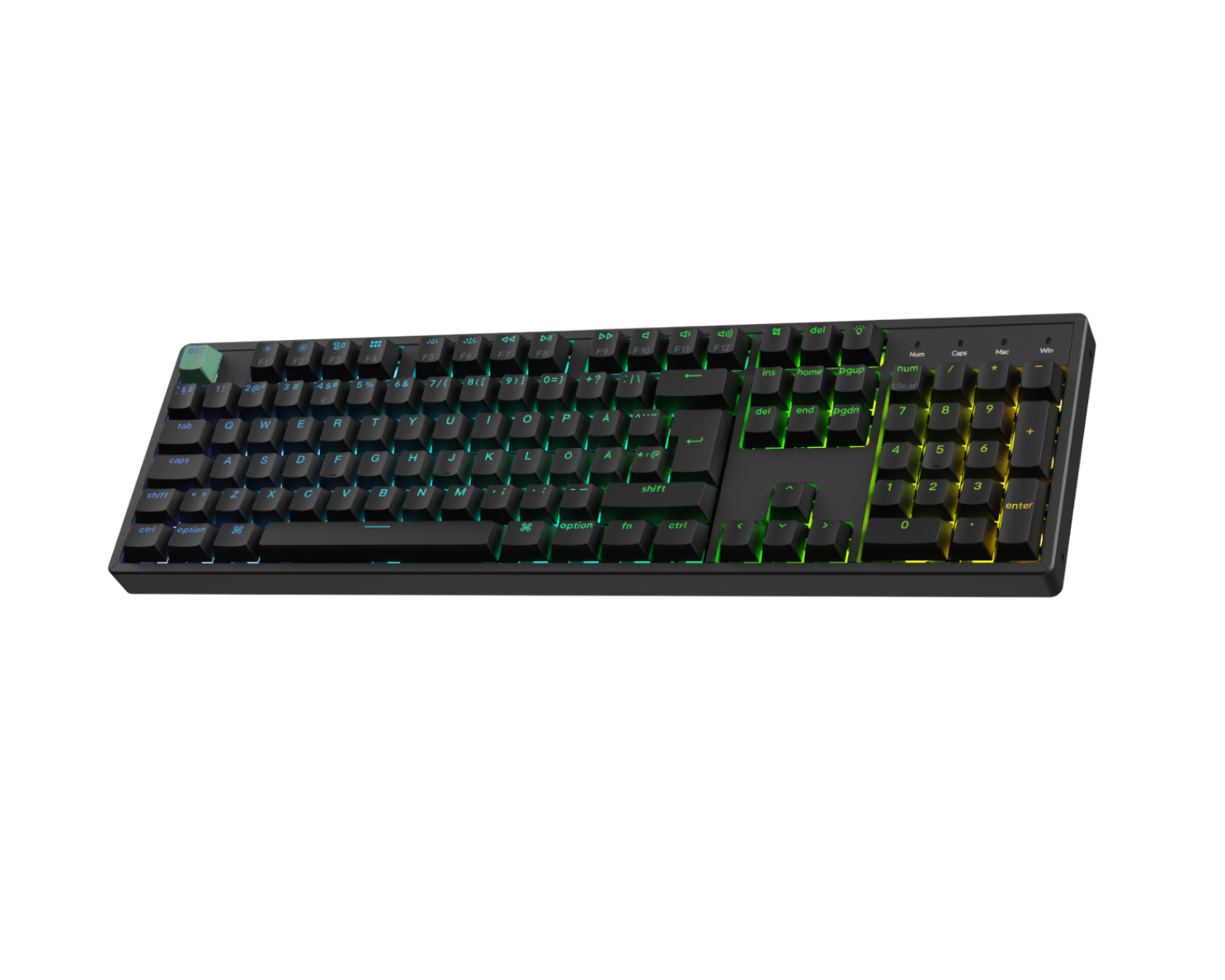- Dubbelskott PBT keycaps för ökad hållbarhet