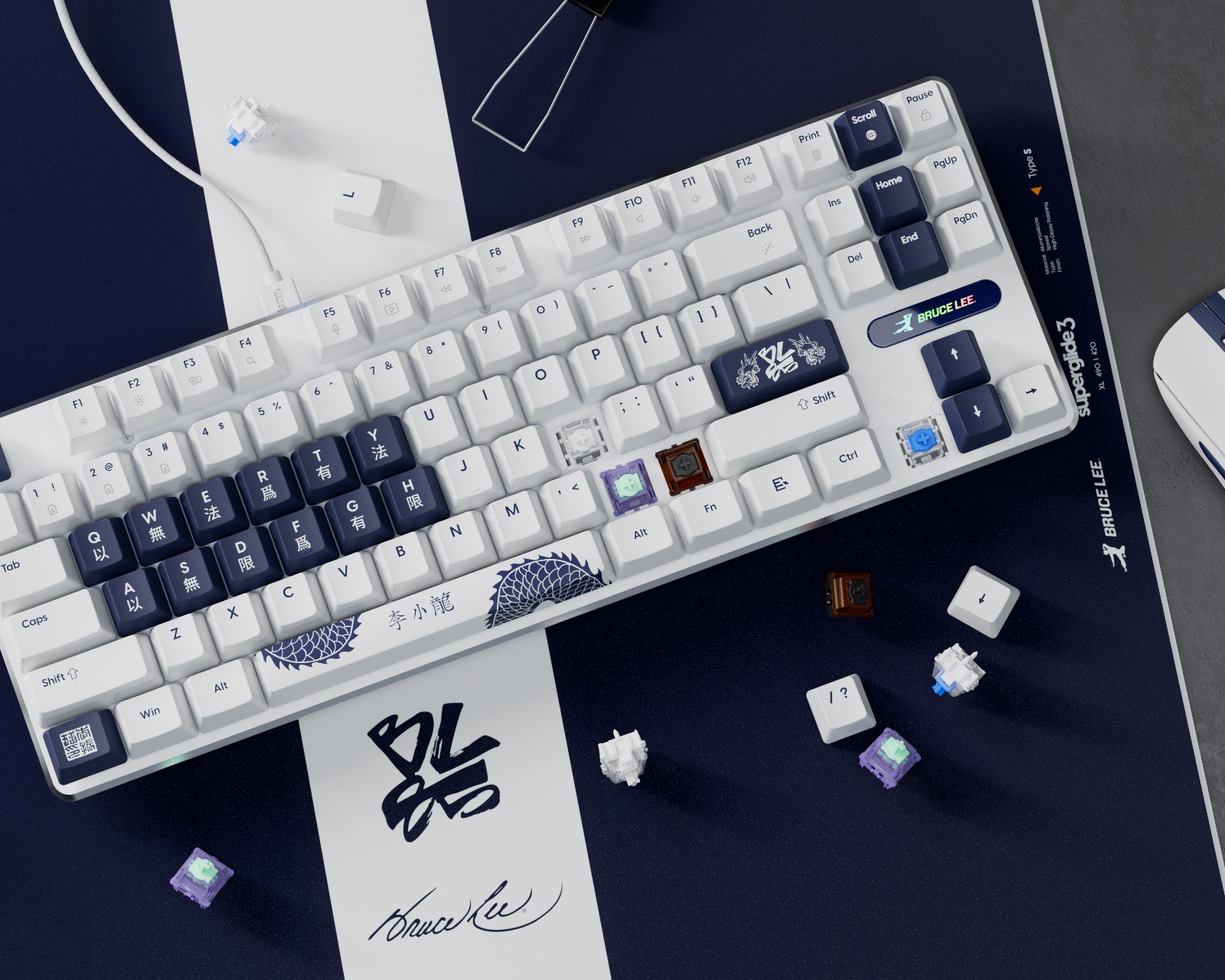 PCMK 3 HE 60 Bruce Lee 85:e ED är ett gamingtangentbord från Pulsar som använder Hall Effect-teknologi för exakt registrering av tangenttryckningar. Det erbjuder en scanning rate på upp till 35,000 keystrokes per sekund och en polling rate på 8,000 Hz, vilket säkerställer snabba och precisa inmatningar. Detta tangentbord är avsett för gamers som kräver högpresterande tangentlösningar.Byggkvaliteten på tangentbordet inkluderar en 10-lagers PCB som minimerar elektrisk störning och ger stabil inmatning. Enheten använder linjära Gateron x Pulsar-magnetiska switchar med en initial kraft på 30 ± 7 gf och en total resa på 4.1 ± 0.2 mm. Användare kan anpassa aktionsdjupet mellan 0.1 mm och 4.0 mm, vilket ger individuell anpassning efter preferenser. Tangentbordet är utrustat med PBT double-shot keycaps för ökad hållbarhet samt en aluminiumlegering som stärker stabiliteten. Det stödjer även joystick-läge för bättre kompatibilitet med olika spel.