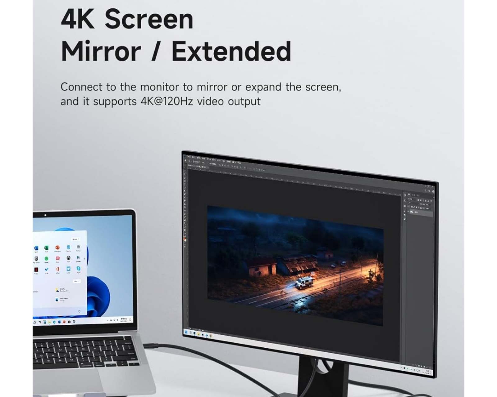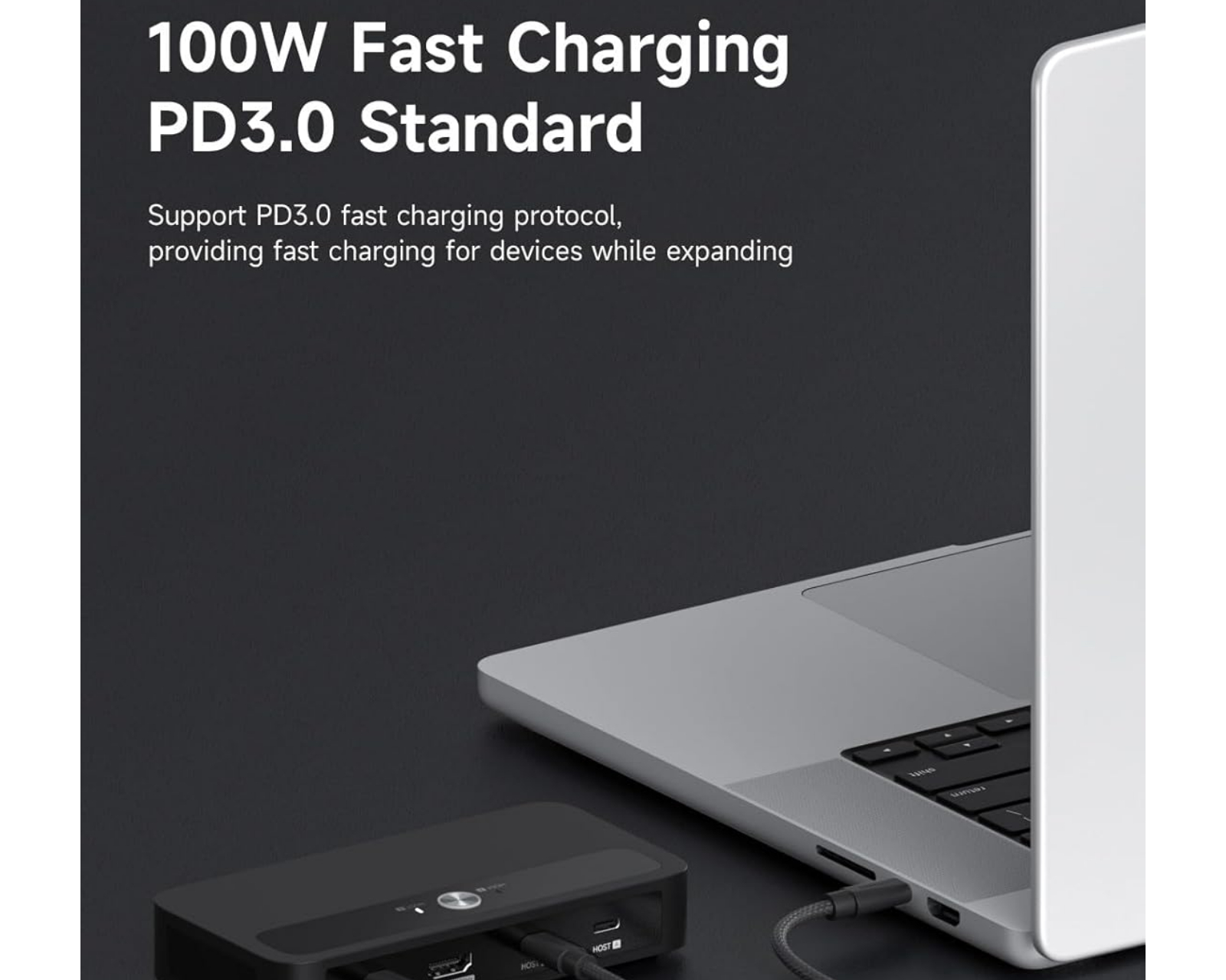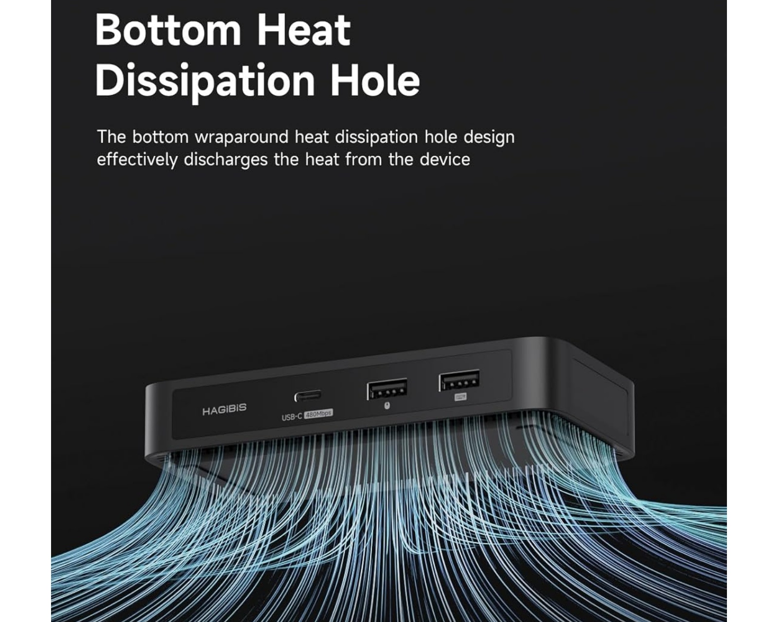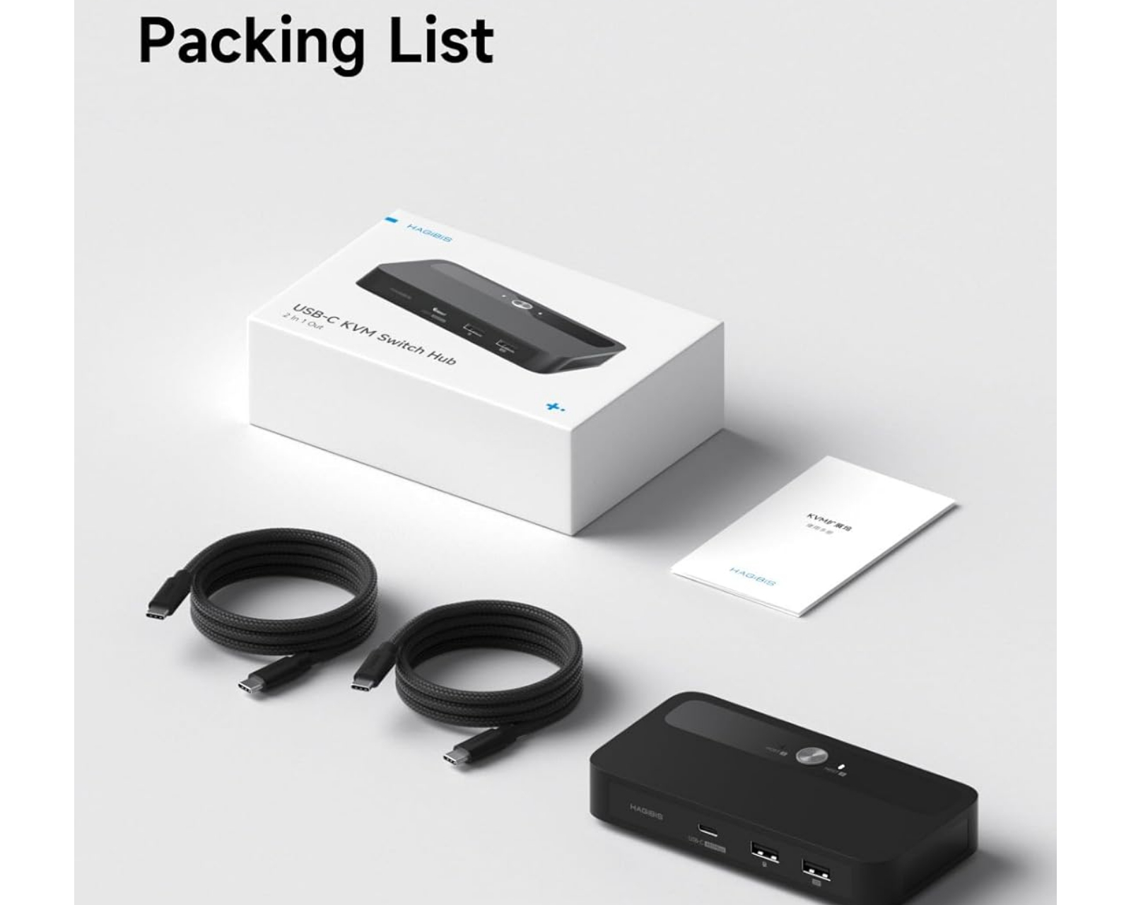Hagibis KVM Switch är en KVM-switch som möjliggör anslutning av en monitor till två datorer. Den har stöd för 4K@120Hz upplösning via HDMI och erbjuder en 100W PD-strömförsörjning. Produkten är kompatibel med Windows, macOS och Linux, vilket gör den användbar för olika system. Den är avsedd för gamers och professionella användare som behöver dela bildskärm, tangentbord och mus mellan olika enheter.Produkten är utformad med en USB 3.0 Type-C anslutning och innehåller totalt 7 portar, inklusive 4 USB-portar och 2 HDMI-portar. Den utnyttjar PD3.0 (Programmable Power Supply) för att ge upp till 100W dynamisk ström, vilket möjliggör direkt laddning av kraftfulla enheter. Dessutom minimerar designen av kylventiler risken för överhettning och säkerställer effektiv värmeavledning under drift. Den stöder även olika kombinationer av enheter som laptops, stationära datorer och mobila enheter för flexibel användning.