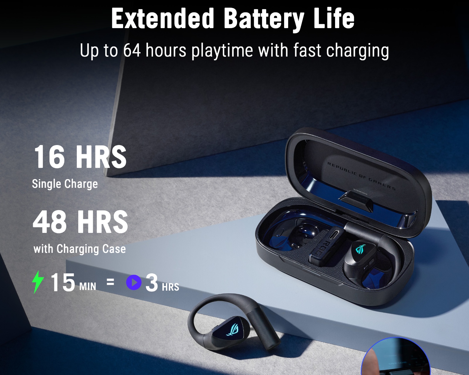 ROG Cetra Open är trådlösa hörlurar från Asus som erbjuder gamers friheten att njuta av ljud av hög kvalitet. Dessa hörlurar har en öppen design som gör dem både bekväma och praktiska för långvarig användning. Med dual-mode-anslutning kan användare enkelt växla mellan Bluetooth för allmän användning och den låglatenta ROG SpeedNova 2.4GHz för intensiv gaming. Den kraftfulla 14.2 mm DLC-belagda membranen levererar klara högtoner, djup bas och en luftig ljudbild, vilket skapar en förstklassig ljudupplevelse i alla sammanhang.Byggkvaliteten i ROG Cetra Open Wireless är noggrant genomtänkt med en IPX5-vattentålig design som gör dem idealiska för träning och utomhusbruk. Med upp till 16 timmars oavbruten speltid och möjlighet att få upp till 3 timmars användning med endast 15 minuters snabbladdning, är dessa hörlurar skapade för att passa en aktiv livsstil. De smarta ljudfunktionerna, som Phantom Bass och Immersion Mode, anpassar sig till olika miljöer för att optimera lyssningsupplevelsen. De mjuka öronkrokarna och fysiska knapparna säkerställer att hörlurarna är bekväma att bära och ger exakt kontroll.