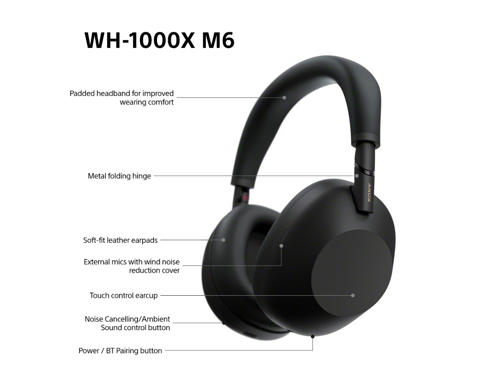 WH-1000XM6 är ett par trådlösa over-ear-hörlurar från Sony, designade för en premium ljudupplevelse med enastående brusreducering och komfort. Med den nyutvecklade HD Noise Cancelling-processorn QN3 erbjuder dessa hörlurar oslagbar ljudisolering och kristallklar ljudkvalitet. Med upp till 30 timmars batteritid för användning under hela dagen och en snabb laddning som ger tre timmars speltid på bara tre minuter, är WH-1000XM6 konstruerade för att hålla jämna steg med din livsstil.Byggkvaliteten är hög med en vikbar design och hållbara metallgångjärn, vilket gör dem lätta att förvara och transportera. Dessa hörlurar har även 30 mm högtalarenheter som stöder Hi-Res Audio och DSEE Extreme, vilket ger en förfinad ljudupplevelse. Multi Noise Sensor Technology inkluderar tolv mikrofonsensorer som känner av och dämpar omgivande ljud effektivt. Med Auto-Ambient Sound Mode kan du justera ljudnivån efter din omgivning för bästa möjliga balans mellan musik och omgivning. WH-1000XM6 erbjuder även en utmärkt samtalskvalitet, tack vare AI-driven strålformningsteknik.