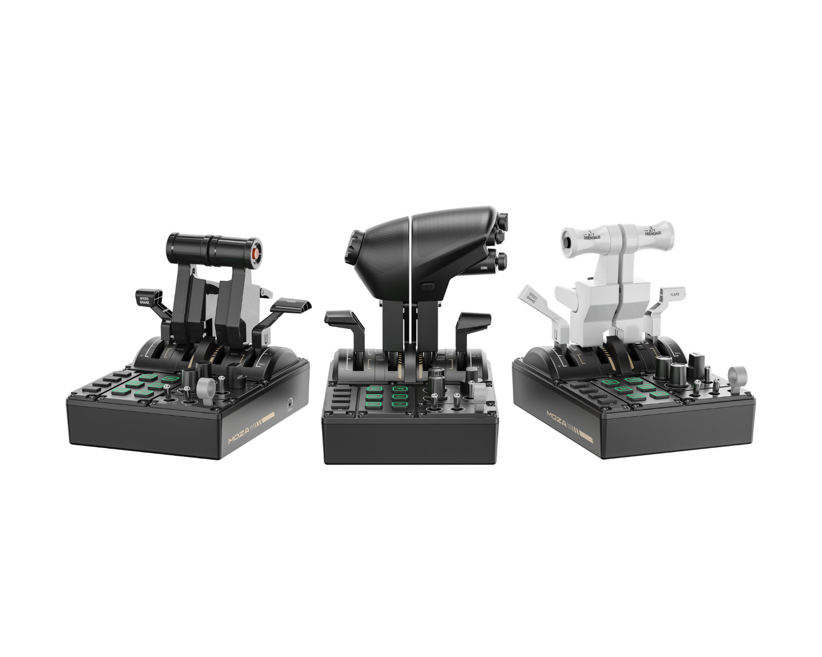 MTQ Throttle TQB Modul är en joystick från Moza Racing som efterliknar den typiska konstruktionen av throttle levers från Airbus A3X-serien. Denna modul har en tydlig detent-struktur och reverseringsbeteende, vilket ger förutsägbara och precisa kontroller för gamern. Taktile feedback gör att du enkelt kan justera throttlen utan att behöva visuell bekräftelse för varje rörelse.Modulen är byggd med högkvalitativa material och design för att säkerställa lång hållbarhet och funktionalitet. Den tydliga indelningen av detents tillåter exakt finjustering och snabb respons, vilket är avgörande under intensiva spelsessioner. TQB-modulen integreras enkelt med andra simulatorer och har en ergonomisk utformning som bidrar till komfortabel användning under längre perioder. Dess mångsidighet gör att den passar en rad olika simulerings- och spelinställningar.