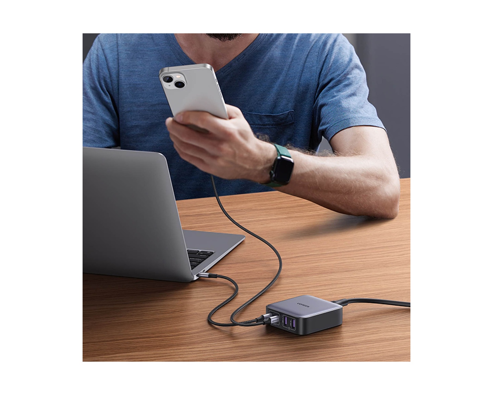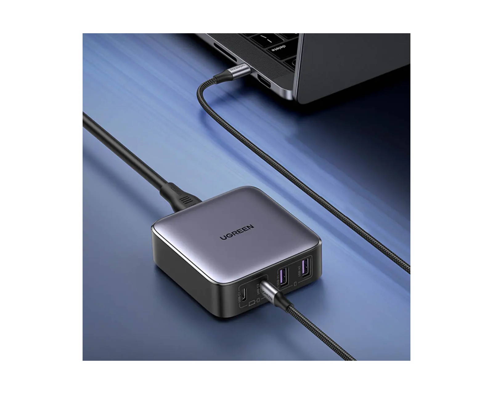 Vi introducerar UGREEN Nexode 65W 4-Ports Desktop Charger GaN - den ultimata strömlösningen för alla dina laddningsbehov. Laddaren är utformad med precision och effektivitet i åtanke och är fullpackad med funktioner som kommer att revolutionera hur du laddar dina enheter.Med sin eleganta och kompakta design är UGREEN Nexode-laddaren perfekt för både hem- och kontorsbruk. Laddstationen har två USB-C-port för maxladdning på 65 W och kan ladda din 13-tums MacBook Air till 100 % på mindre än 1,5 timme. Säg adjö till att vänta på att dina enheter ska laddas - med UGREEN Nexode är du tillbaka till full kraft på nolltid.