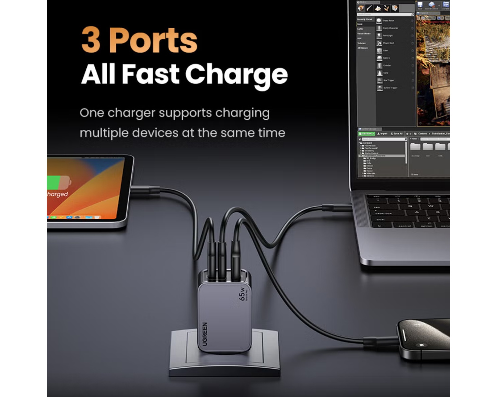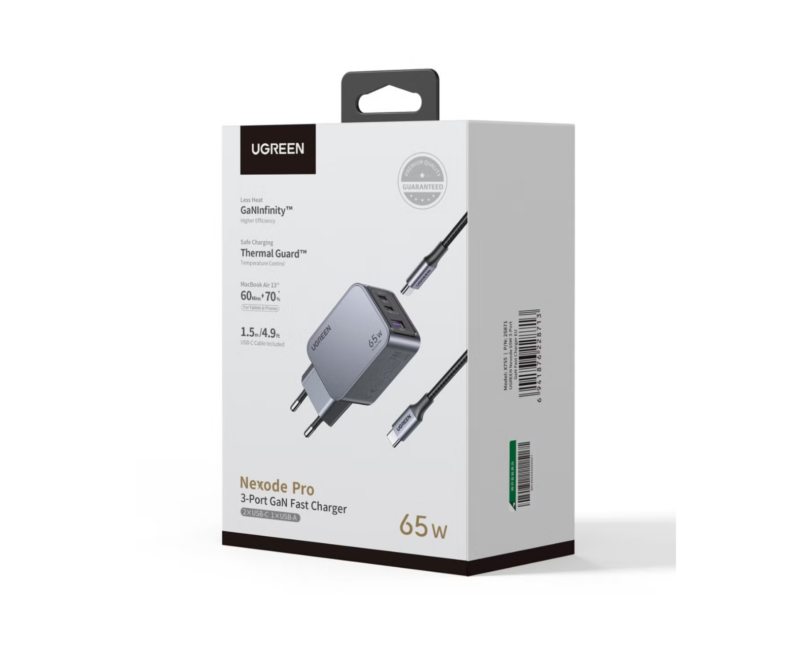 Nexode S 65W 3-port är en väggladdare med snabb uppladdning av din enhet. Genom dess avancerade laddningsteknik kan du effektivt och pålitligt ladda din smartphone, surfplatta eller andra elektroniska enheter. Med dess smarta överhettningsskydd kan du vara säker på att dina enheter laddas snabbt och säkert. Se till att du alltid är redo för dagen med fulladdade enheter som håller dig ansluten och produktiv under hela dagen.Med Nexode S 65W har du tre stycken anslutningsportar tillgängliga, vilket gör det enkelt för dig att hålla alla dina enheter fulladdade och redo att användas när du behöver dem. Dessa portar ger dig möjligheten att ladda din smartphone, surfplatta och andra enheter samtidigt, vilket är perfekt för att effektivt hantera din digitala vardag.