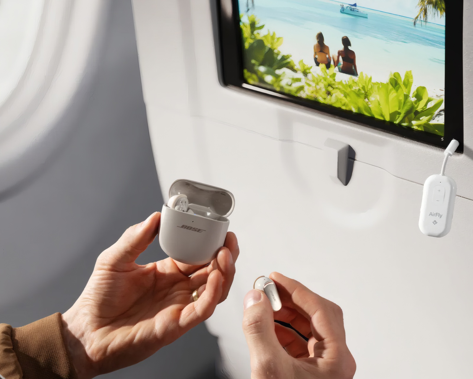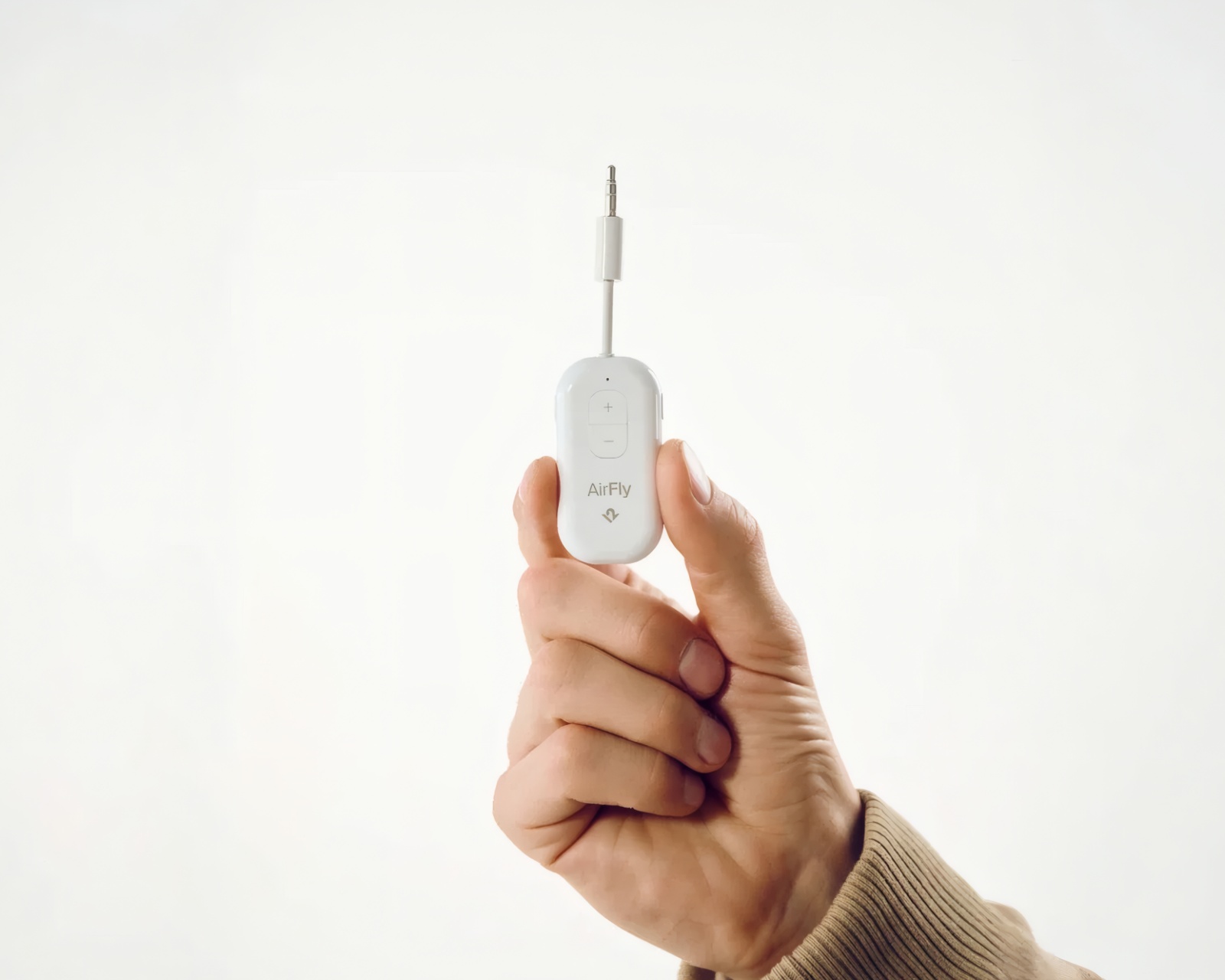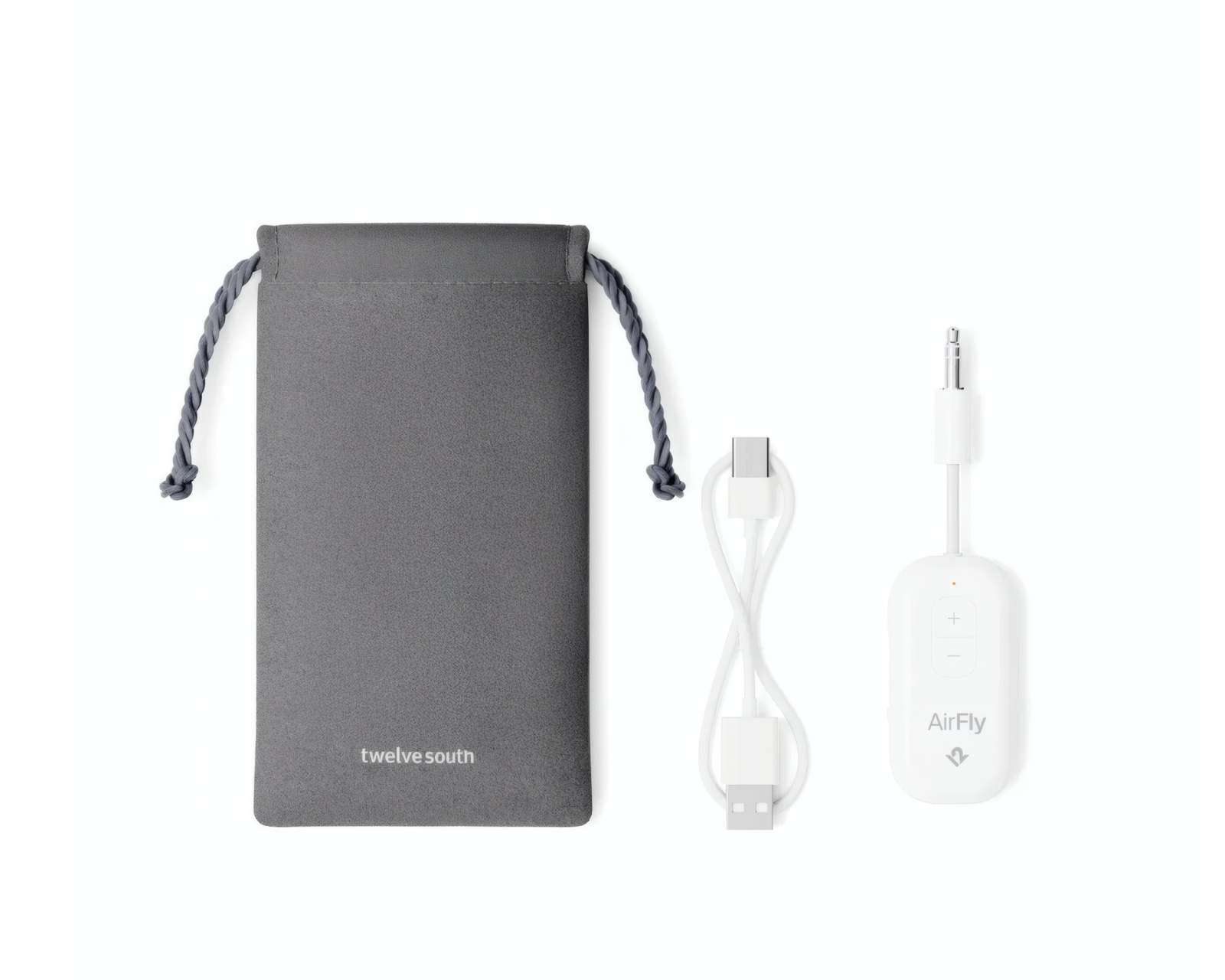 AirFly Pro 2 är en trådlös adapter för hörlurar från Twelve South. Denna enhet möjliggör anslutning av AirPods eller andra Bluetooth-hörlurar till alla enheter med hörlursuttag, exempelvis flygplanssystem, gymutrustning och spelkonsoler. AirFly Pro 2 kan hålla över 25 timmar på en laddning och laddas genom USB-C.AirFly Pro 2 är kompakt och lätt, vilket underlättar transport och användning under resor. Den har två knappar för att para ihop upp till två trådlösa hörlurar till en enda enhet, utan behov av en splitterkabel. Enheten har även intuitiva kontroller för volym och mute, samt en klart synlig batteriindikator. För deluxe-versionen ingår en internationell flygplansadapter och en premium reseväska för optimal användning vid resor.