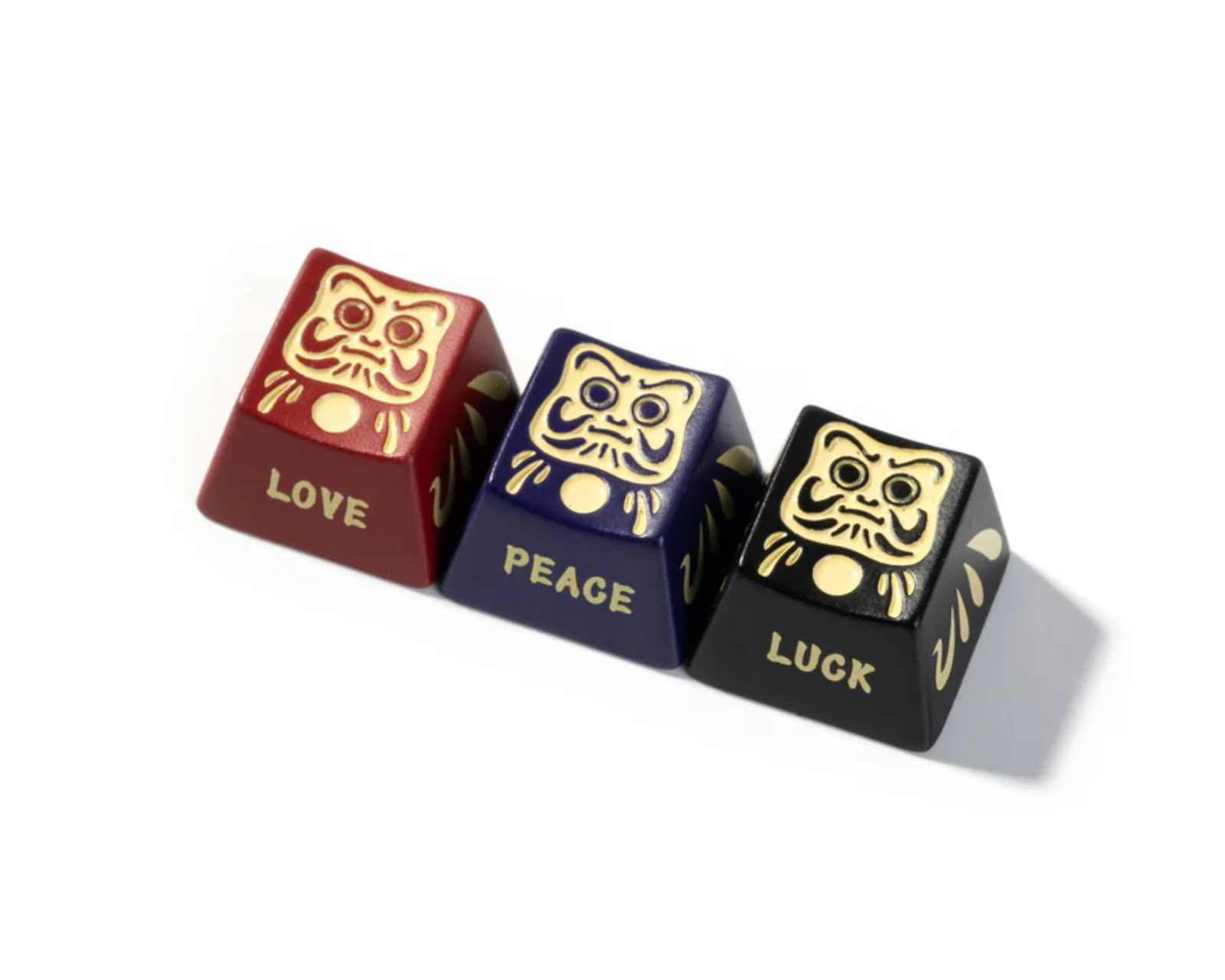 Den vackra Dharma tangentknappen är inte bara en talisman för lycka och uppmuntran, den är en påminnelse om att uppskatta de små sakerna i livet. Med sina traditionella färger i rött, lila och svart samt budskapen "Kärlek", "Frid" och "Lycka" tryckta på sidorna, bär varje tangentknapp en unik symbolik som strävar efter att skapa en bättre värld omkring oss.