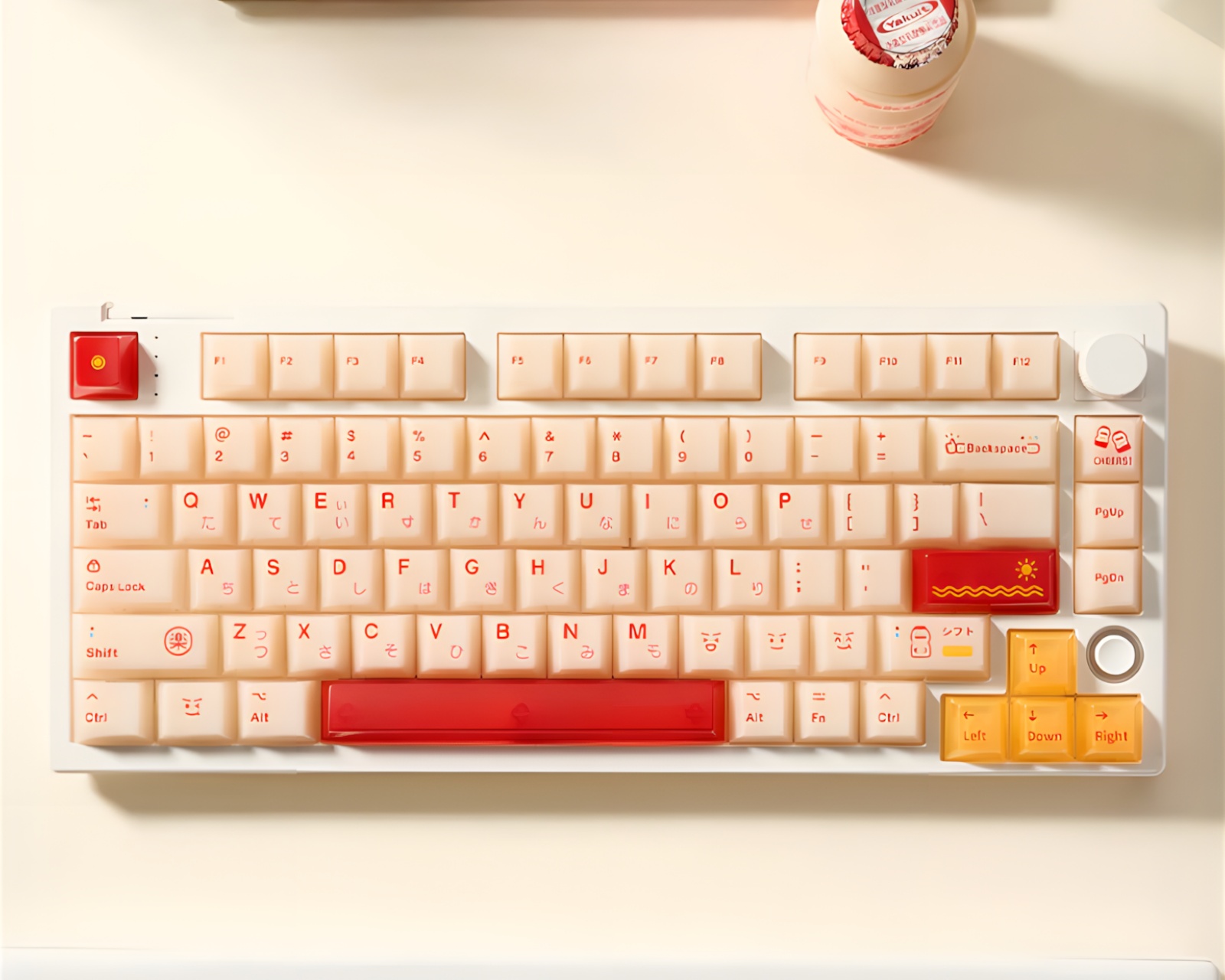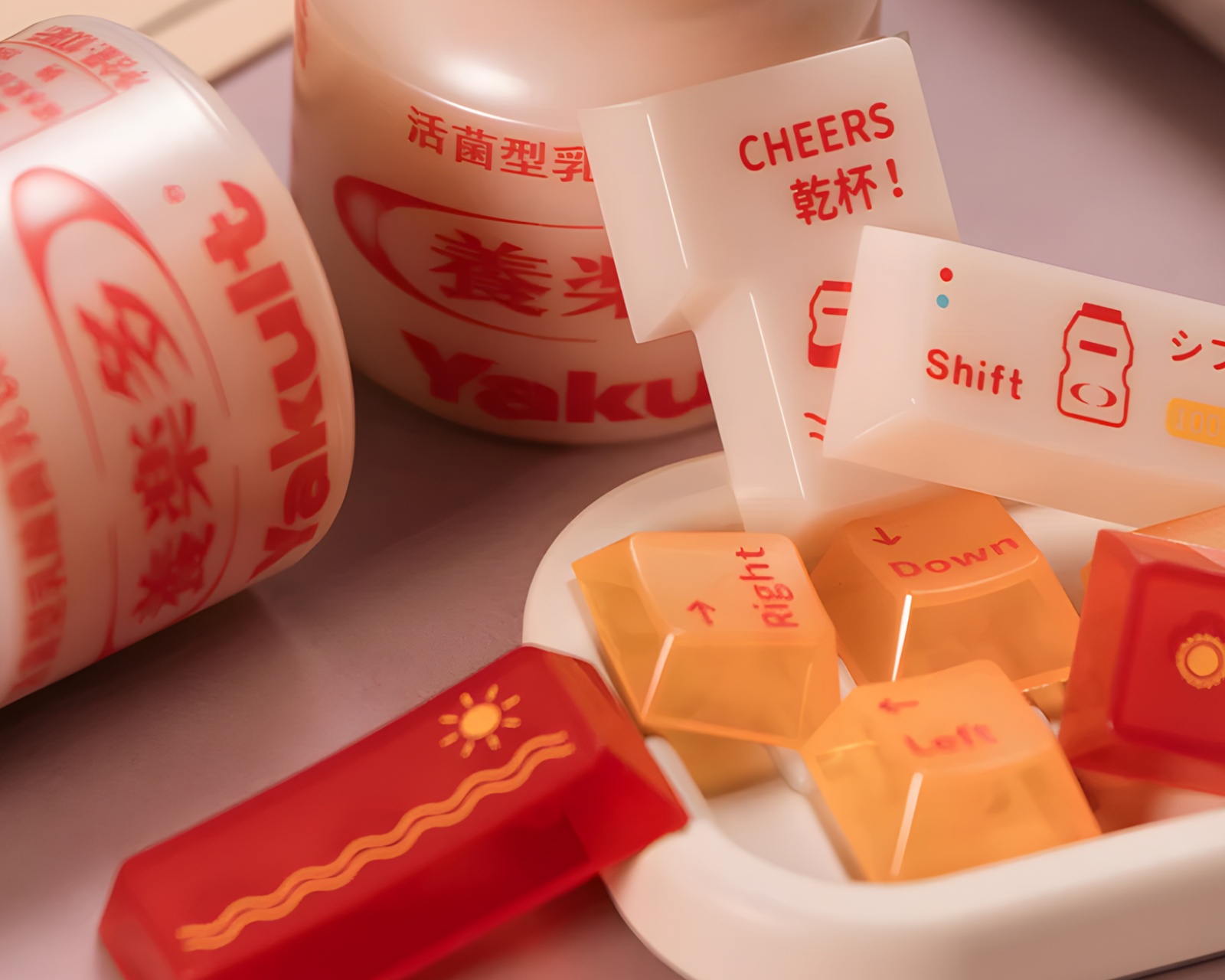 Cheers! Keycap set från Keymoji som erbjuder en visuell nostalgiresa med inspiration från den ikoniska probiotiska drycken Yakult. Med sin klassiska mjölkvit flaska, ljusgula och livligt röda detaljer, återskapar detta set en fräsch och lekfull estetik som för tankarna till glada minnen av att sippa på Yakult. Bestående av 148 tangenter med Cherry-profil och kompatibel med MX-brytare, är detta keycap-set perfekt för alla typer av användning, vare sig det handlar om spelande, arbete eller studier.Byggd av högkvalitativ PC-plast, är dessa keycaps hållbara och motståndskraftiga mot slitage, vilket gör dem lämpliga för dagligt bruk på spel- eller kontorsmiljöer. Den färgglada designen med sina förenklade mönster, roliga ikoner och dolda emojis ger varje tangent en lekfull karaktär som livar upp varje knapptryck. Tack vare tillverkningsmetoden i injektionsformning, säkerställs att färgerna är livfulla och långvariga. Dessa keycaps är inte bara praktiska men också ett fantastiskt samlarobjekt för varje tangentbordsentusiast.