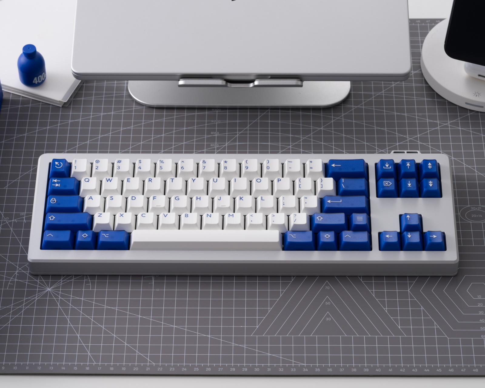 PBTfans Klein Blue R3 är ett bas kit av keycaps från KBDfans. Denna produkt erbjuder en unik estetisk prägel i färgen International Klein Blue, som är en ikonisk nyans skapad av den franske konstnären Yves Klein. Keycapsen är konstruerade av ABS-material med en semi-transparent profil av Cherry-typ. De är utformade för att vara kompatibla med Cherry MX-switchar samt MX-stil kloner, vilket gör dem lämpliga för ett brett spektrum av tangentbord.Tillverkningsmetoden för dessa keycaps är doubleshot, vilket ger en hög hållbarhet och långvarig färg utan att blekna. Produkten levereras i en ABS keycaps tray med en designad tray cover, vilket underlättar förvaringen. Det är viktigt att notera att endast keycaps ingår i paketet, ingen tangentbord medföljer. Deskmatet som erbjuds har måtten 900 mm x 400 mm x 4 mm med ±1 cm tolerans. Det har en slittålig struktur med sydda kanter och en mjuk tygyta som ger en behaglig känsla under användning. Dess vikt ligger runt 800 g, vilket ger stabilitet på skrivbordet.