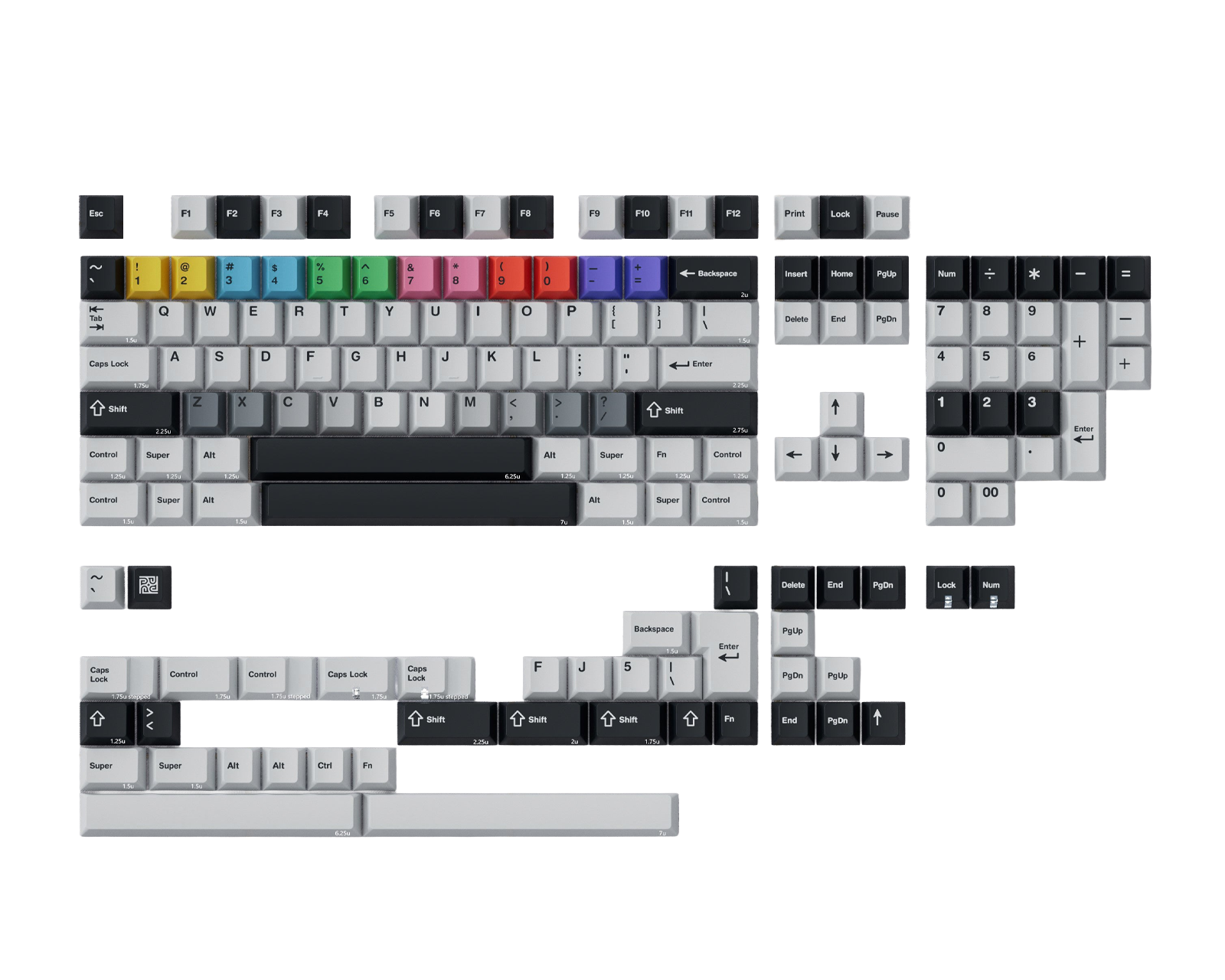 PBTfans No Signal är ett set av keycaps som inspirerats av elektroniskt genererade testmönster som tidigare användes för att kalibrera tv-apparater. Setet innehåller designade grafiska element som refererar till olika testmönster, såsom Indian-head-testmönstret och SMPTE-färger, vilket gör att tangentbordet utvecklas till ett kalibreringsverktyg. Dessa testkort användes ursprungligen för att signalera att tv-kanaler ännu inte hade påbörjat sina program. Det har blivit en del av populärkulturen och förekommer i moderna produktioner.Keycapsen är tillverkade av PBT-material och har en Cherry-profil som ger en bekväm användarupplevelse. Produktionsmetoden inkluderar dye-sub och reverse dye-sub, vilket säkerställer hållbarhet och färgintensitet. Setet är kompatibelt med Cherry MX-switchar och MX-stil kloner. Det kommer i en ABS-keycaps-tray med en designad tray-cover, vilket gör förpackningen praktisk för förvaring och transport. Observera att endast keycaps ingår, ingen tangentbord.