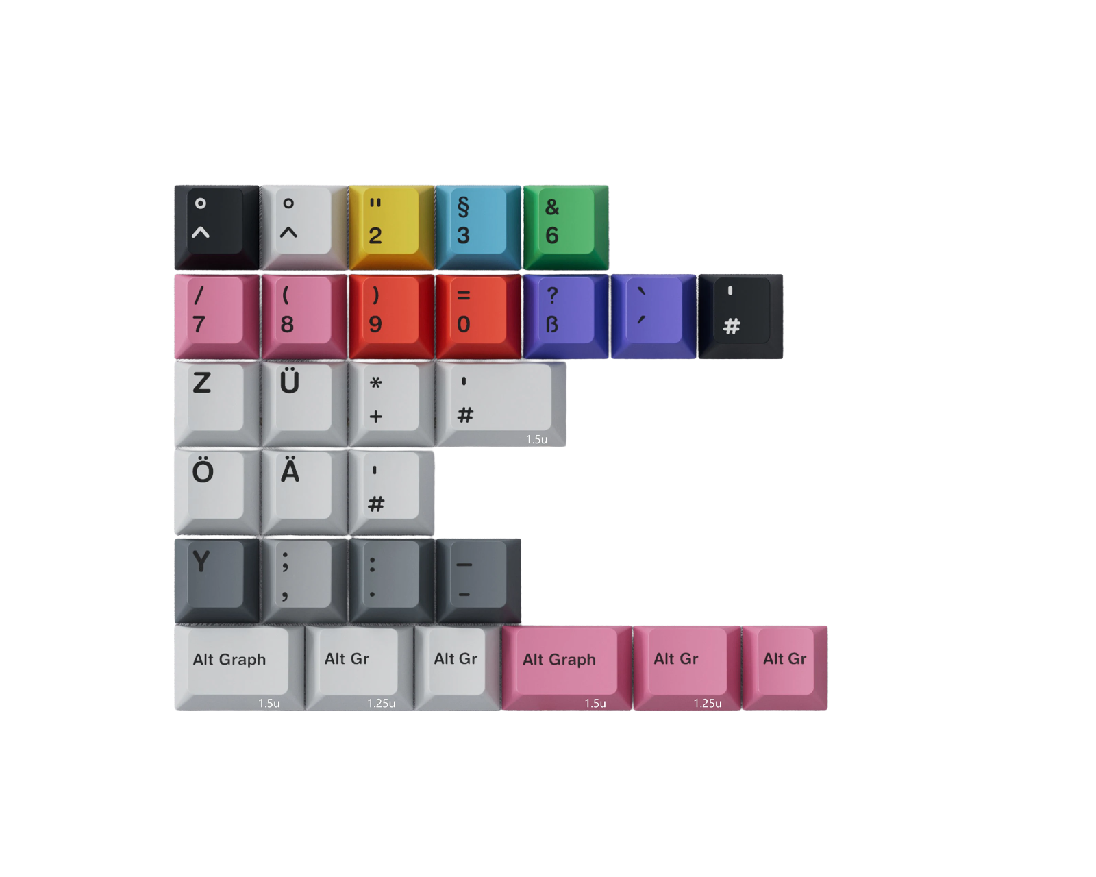 PBTfans No Signal är ett set av keycaps som inspirerats av elektroniskt genererade testmönster som tidigare användes för att kalibrera tv-apparater. Setet innehåller designade grafiska element som refererar till olika testmönster, såsom Indian-head-testmönstret och SMPTE-färger, vilket gör att tangentbordet utvecklas till ett kalibreringsverktyg. Dessa testkort användes ursprungligen för att signalera att tv-kanaler ännu inte hade påbörjat sina program. Det har blivit en del av populärkulturen och förekommer i moderna produktioner.Keycapsen är tillverkade av PBT-material och har en Cherry-profil som ger en bekväm användarupplevelse. Produktionsmetoden inkluderar dye-sub och reverse dye-sub, vilket säkerställer hållbarhet och färgintensitet. Setet är kompatibelt med Cherry MX-switchar och MX-stil kloner. Det kommer i en ABS-keycaps-tray med en designad tray-cover, vilket gör förpackningen praktisk för förvaring och transport. Observera att endast keycaps ingår, ingen tangentbord.