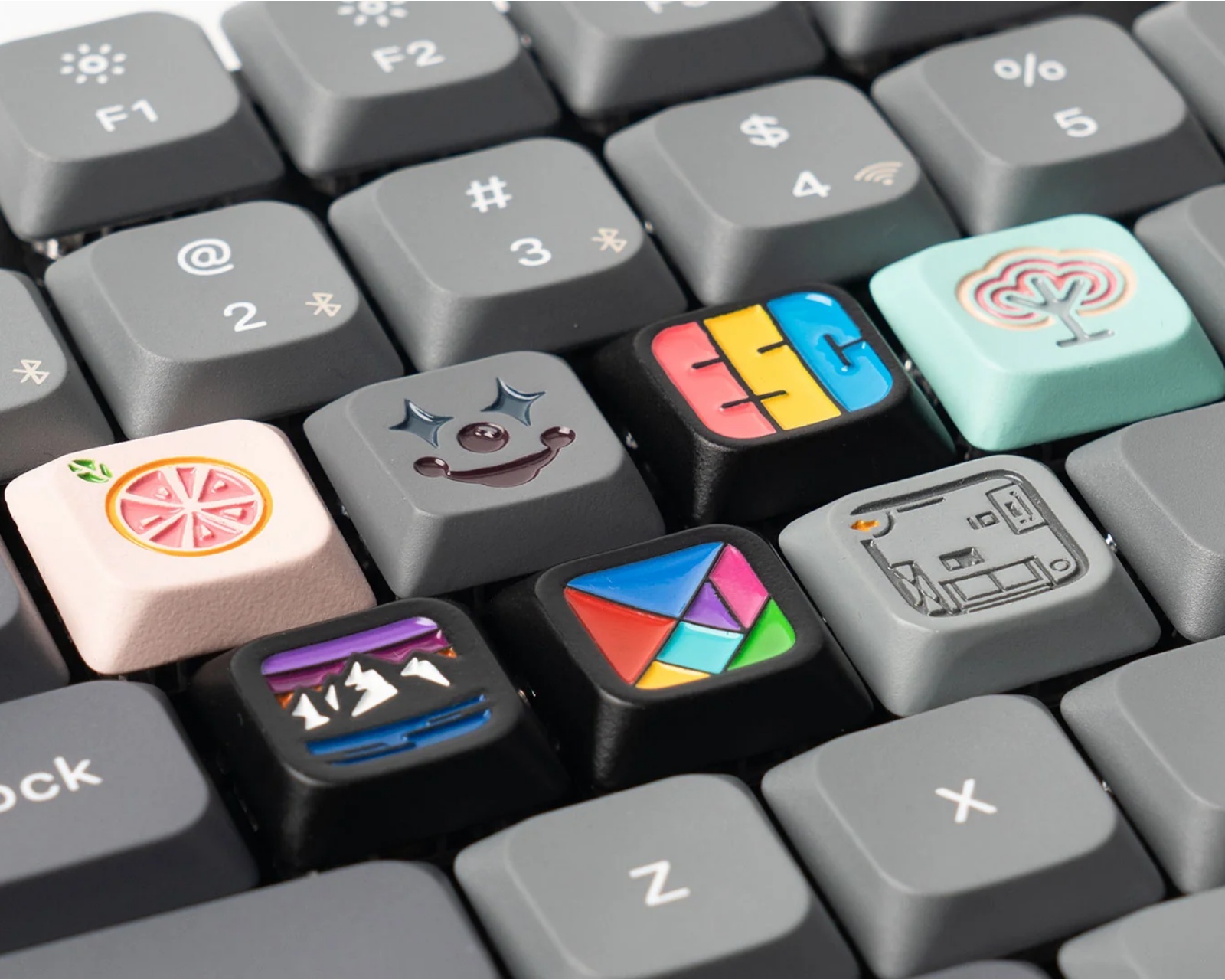Low-Profile Keycaps är tillverkade av zinklegering och genomgår en noggrann process med högtryckselektrostatisk sprutning för att säkerställa både en delikat legend och stabil prestanda mot korrosion. Denna tillverkningsmetod hjälper till att bevara keycapsens kvalitet över tiden och förhindra blekning.Dessa keycaps är fullt kompatibla med Gateron MX-lågprofils mekaniska switchar, Keychrons lågprofils mekaniska switchar och lågprofil Keychron optiska switchar. Deras eleganta design och hållbara material gör dem till ett utmärkt val för både tangentbordsälskare och arbetare som värdesätter både stil och funktionalitet i sina tangentbord.