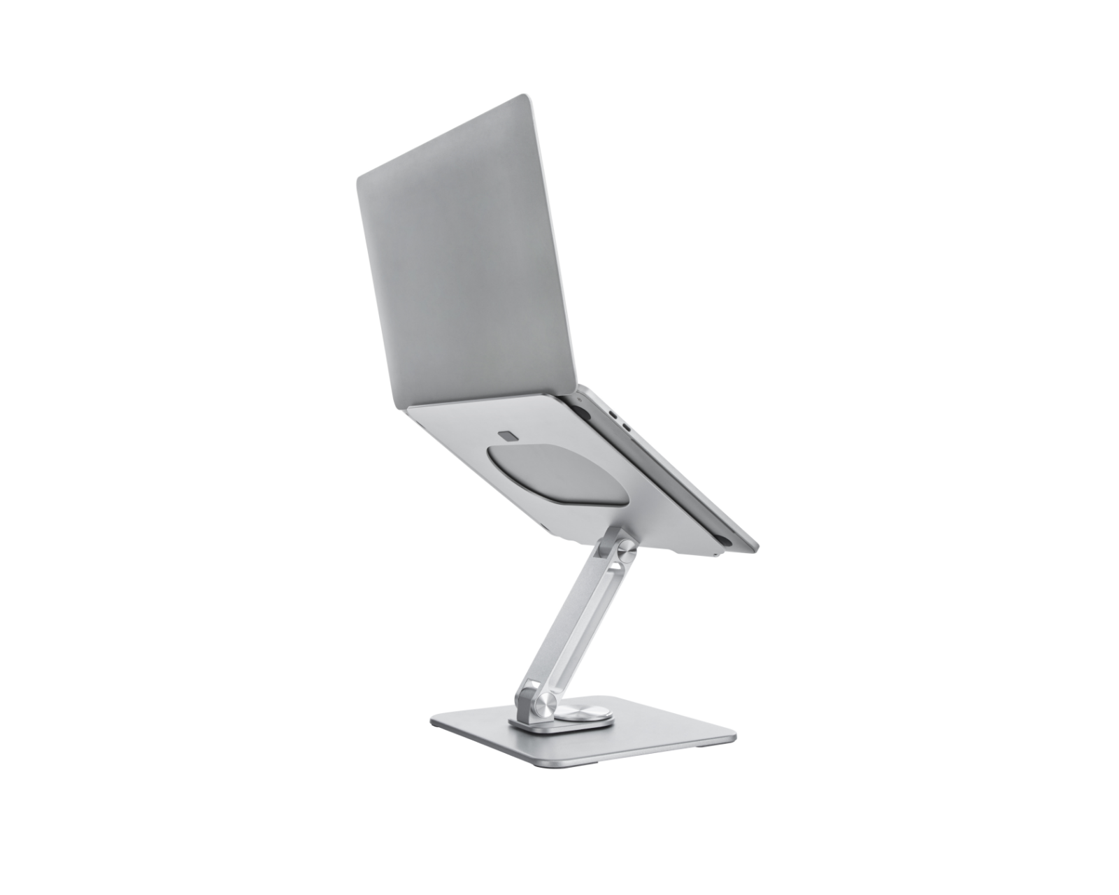 360° Rotationsbar Fällbar Laptopställning är en datoraccessoar från MaxMount som erbjuder en unik design för flexibel användning. Denna ställning kan vridas 360 grader vilket gör det enkelt att dela skärmen under möten eller växla mellan uppgifter. Den är kompatibel med bärbara datorer och surfplattor i storlekar från 11 till 17 tum. Den ergonomiska utformningen gör det möjligt att justera vinkeln för att uppnå den optimala betraktningshöjden och därmed förbättra användarkomforten. Den fällbara konstruktionen underlättar transport och förvaring.Materialet i ställningen är utformat för att säkerställa god ventilation, vilket förbättrar luftcirkulationen och fungerar som en värmesänkande mekanism. Anti-skiddynor finns för att förhindra skador på ytor, och en säkerhetskantstopper skyddar enheterna mot att glida av. Dess justerbara vinklar ger användarna möjlighet att hitta den mest bekväma positionen för långvariga sessioner. Ställningen är helt hopfällbar vilket gör den lätt att ta med sig.