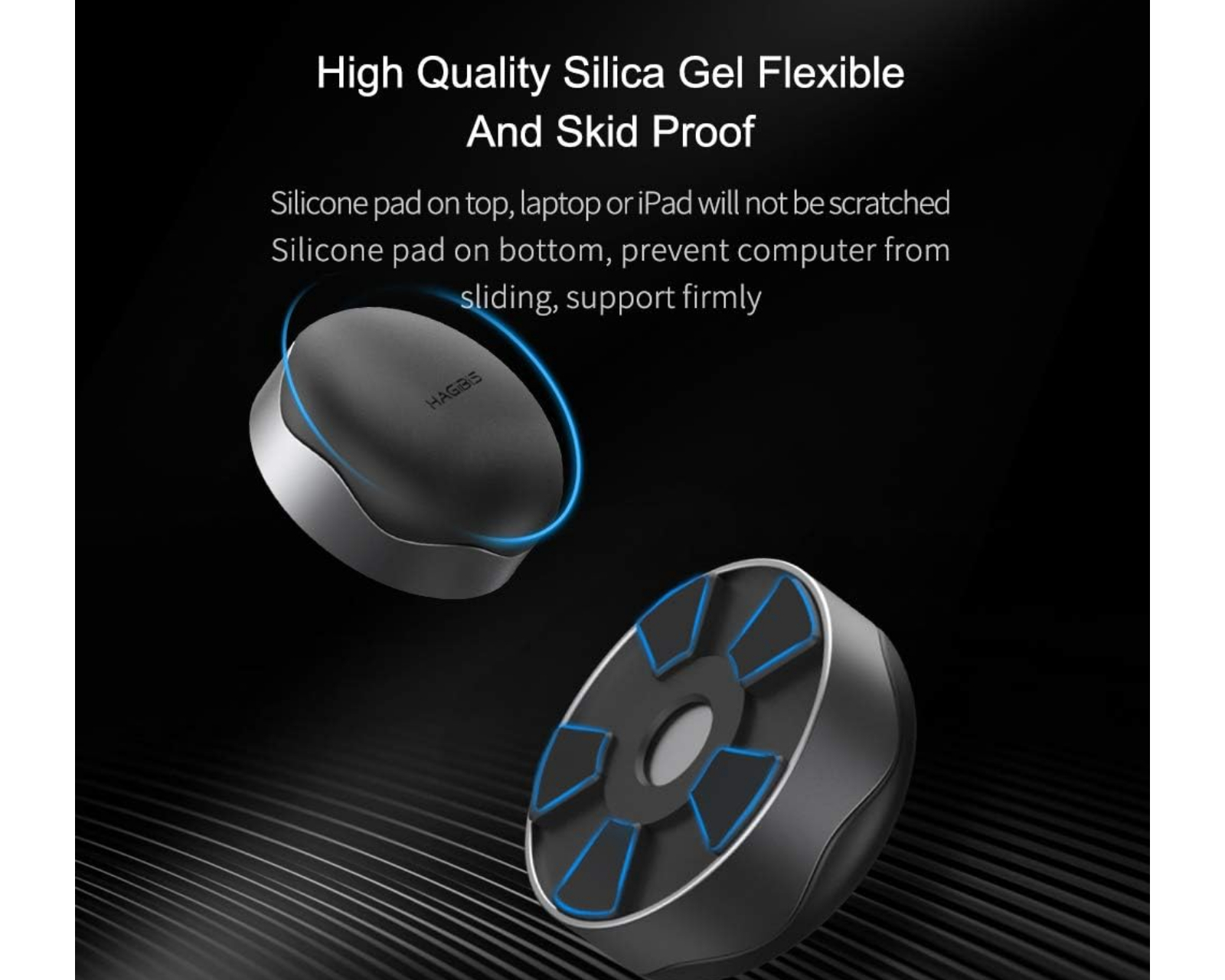 Laptop Ställ JD03MK är en ergonomisk laptopkyldyna från Hagibis. Produkten förbättrar skrivvinkeln för bärbara datorer och bidrar till ökad komfort under användning. Stativet är konstruerat för att optimera luftcirkulationen och effektivt avleda värme från enheten, vilket är särskilt viktigt för gamers och professionella användare av bärbara datorer.Med en kompakt design om endast 6,2 x 6,2 x 6,2 centimeter är den lätt att bära med sig. Stativet består av silikonmaterial som erbjuder hög flexibiltet och halkskydd, vilket förhindrar att den bärbara datorn glider av ytan. Den magnetiska designen med Nd-Fe-B-magneter gör det enkelt att ansluta och ta bort stativet. De två stativen väger endast 49,9 gram, vilket gör dem perfekta för enkel förvaring i fickor eller väskor. Ergonomin i designen minimerar belastningen på nacke och rygg vid längre arbetspass.