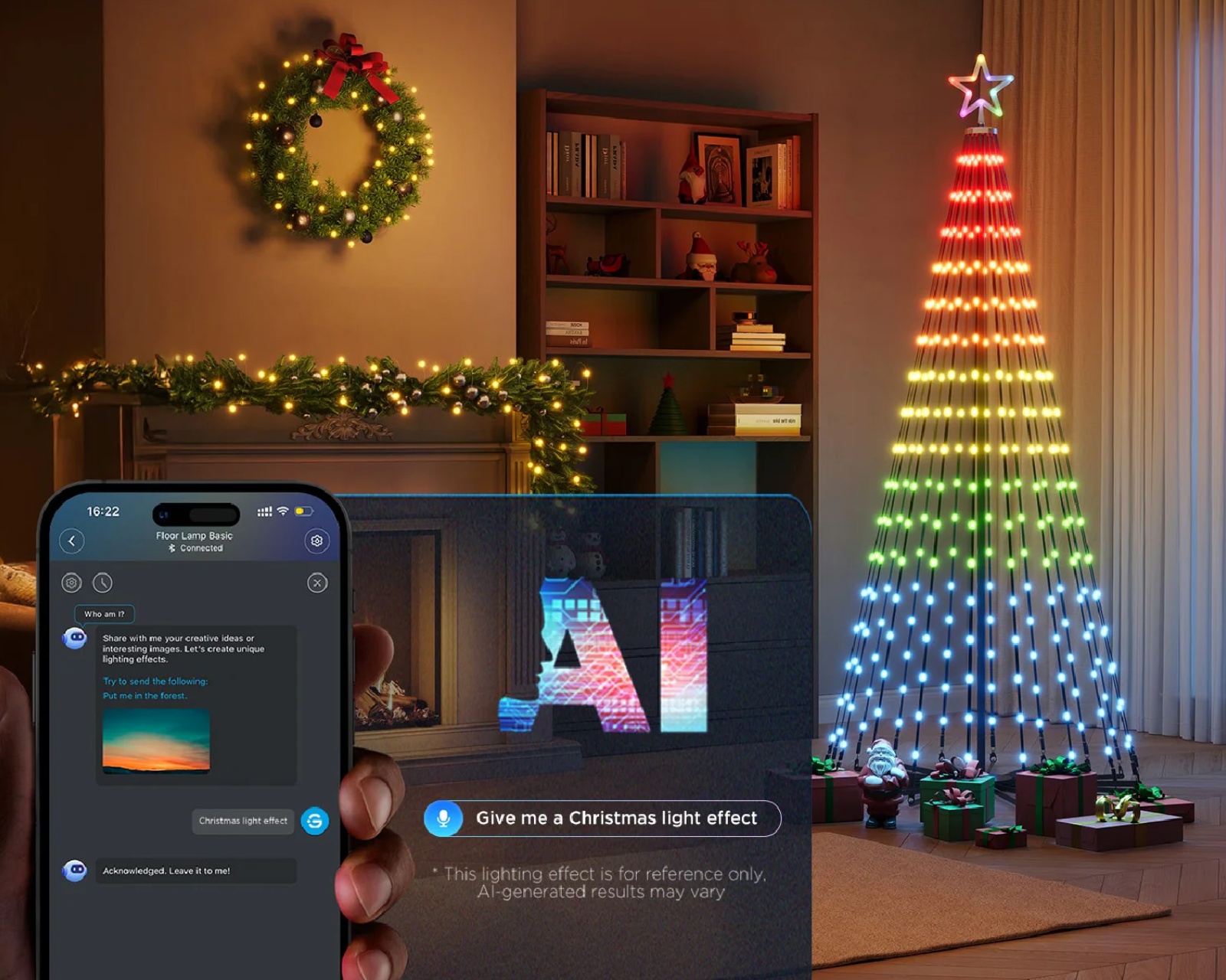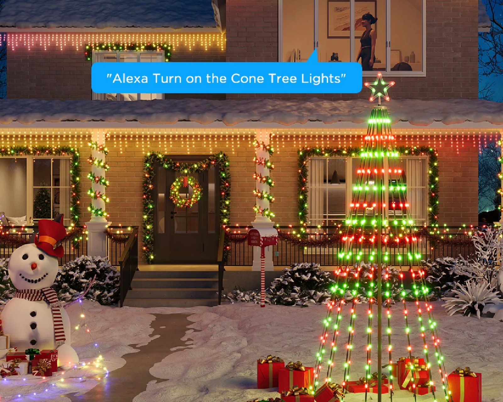 Cone Tree Lights är en ljusdekor från Govee som efterliknar en julgran och ger en festlig stämning i alla miljöer. Dessa lampor är utformade för att enkelt skapa en glad och mysig atmosfär under helgerna med en smidig installation och smarta kontrollalternativ. Med stöd för RGBIC-teknik erbjuder dessa ljus över 16 miljoner färger för personlig anpassning och kan styras via Govee Home App.Ljusen är byggda för att klara utomhusbruk och har en skyddad konstruktion mot vind och är IP67-vattentåliga, vilket gör att de tål både regn och snö under hela vintersäsongen. Med 82 förinställda scenlägen kan ljuset anpassas för olika tillfällen och den inbyggda mikrofonen gör att de kan synkroniseras med musik utan extra utrustning. Det finns även AI-baserade funktioner för att skapa skräddarsydda ljuseffekter.
