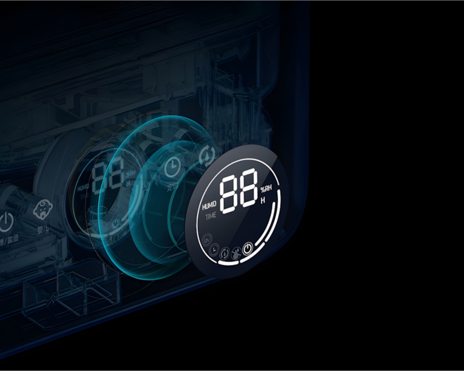 Enheten har en integrerad UV-C sterilisering som säkerställer att det vatten som används är rent och fritt från skadliga bakterier, vilket är essentiellt för en hälsosam inomhusmiljö. Modellen har även en Baby sleep mode, vilket ger optimala förhållanden för små barn genom att ställa in en konstant luftfuktighet på 65%. Vidare kan fuktighetsnivån justeras mellan 45% och 90% beroende på behov och omständigheter.