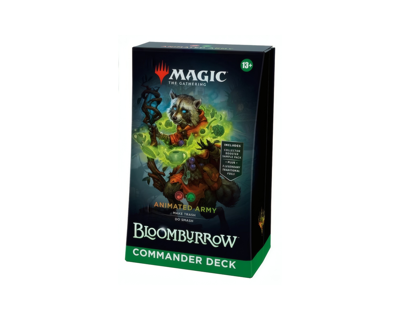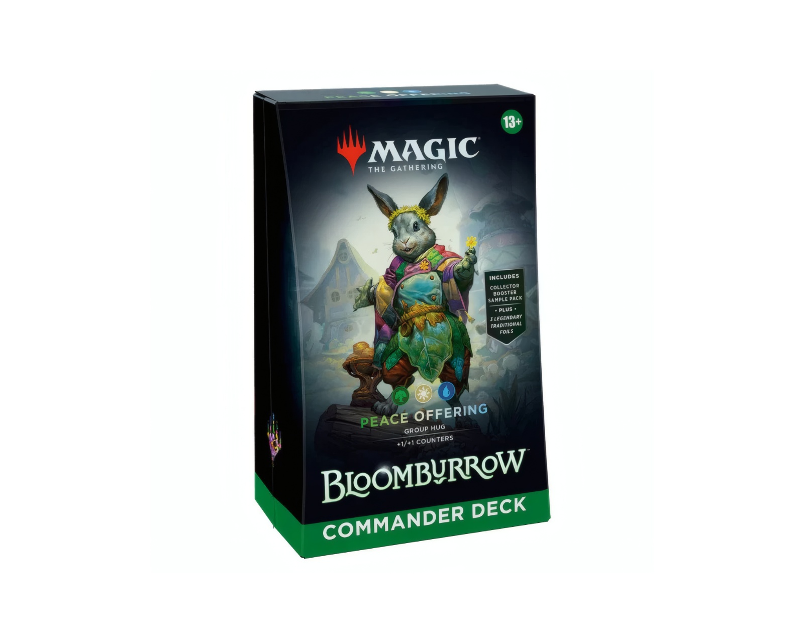 Bloomburrow Commander Deck är ett färdigt kortspel från Magic: The Gathering som innehåller 100 magiska kort designade för strategiskt spel med upp till fyra spelare. Den kommer med en mix av kort inklusive en borderless foil face card, en borderless Imagine: Courageous Critters foil card och 98 icke-foil kort, vilket gör den lättillgänglig för både nybörjare och erfarna gamers. Med detta deck kan spelarna delta i en kamp där mindre varelser som möss, grodor och fladdermöss står i centrum, vilket gör spelet till en unik upplevelse av styrka och strategi.Deckens byggkvalitet är hög med tydligt tryckta kort och ett robust spelformat, och den innehåller nya kort som förstärker spelupplevelsen med 15 nya magiska kort. Utöver korten ingår ett kort sammanställarpaket, tokens och en livskalkylator som underlättar spelet. Deckboxen rymmer upp till 100 kort och är praktisk för förvaring och transport.