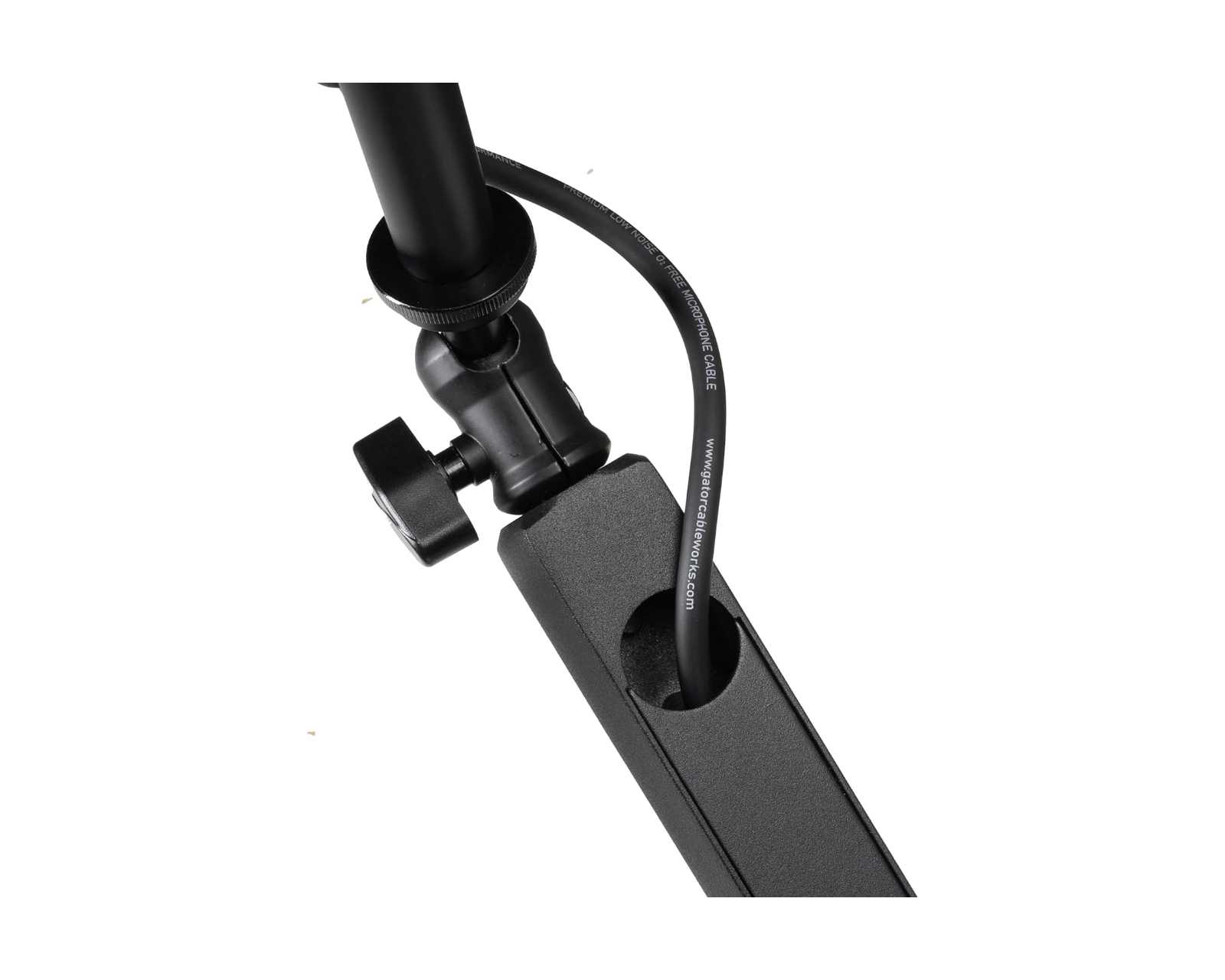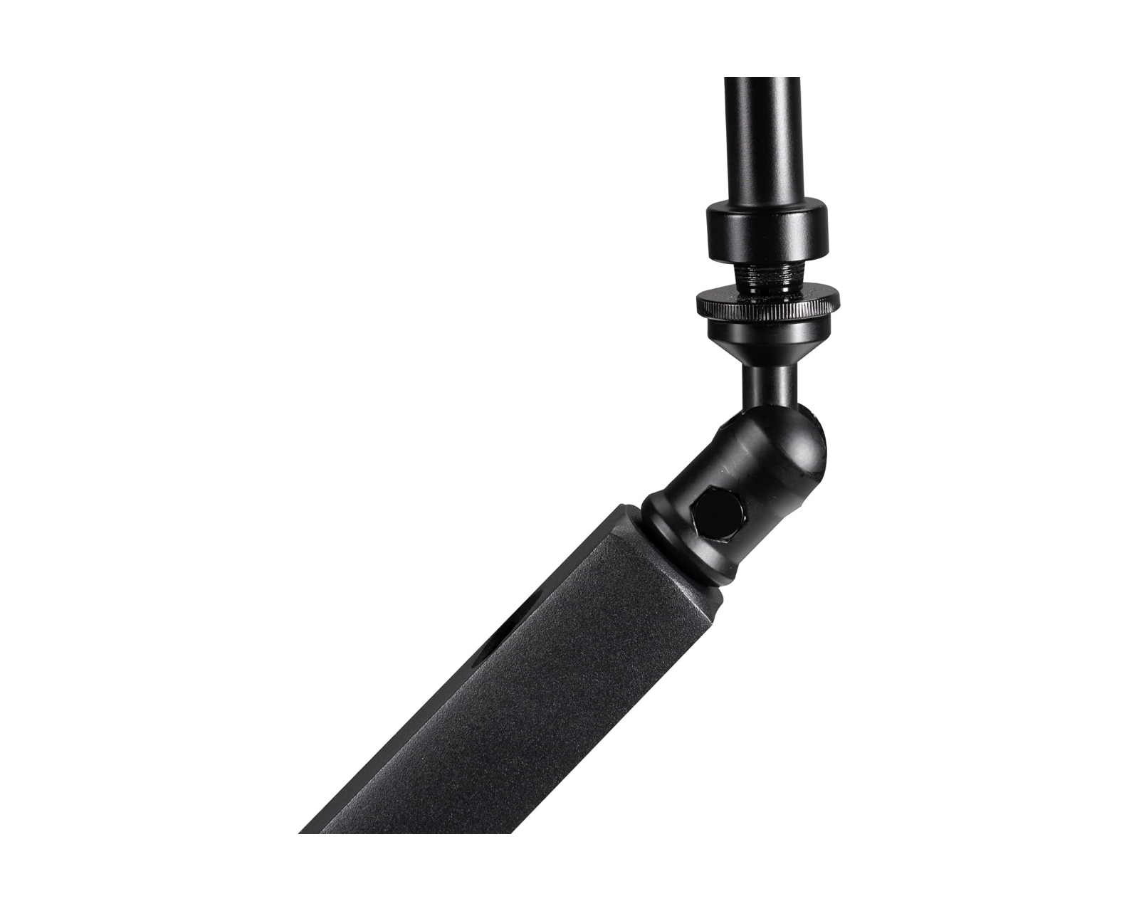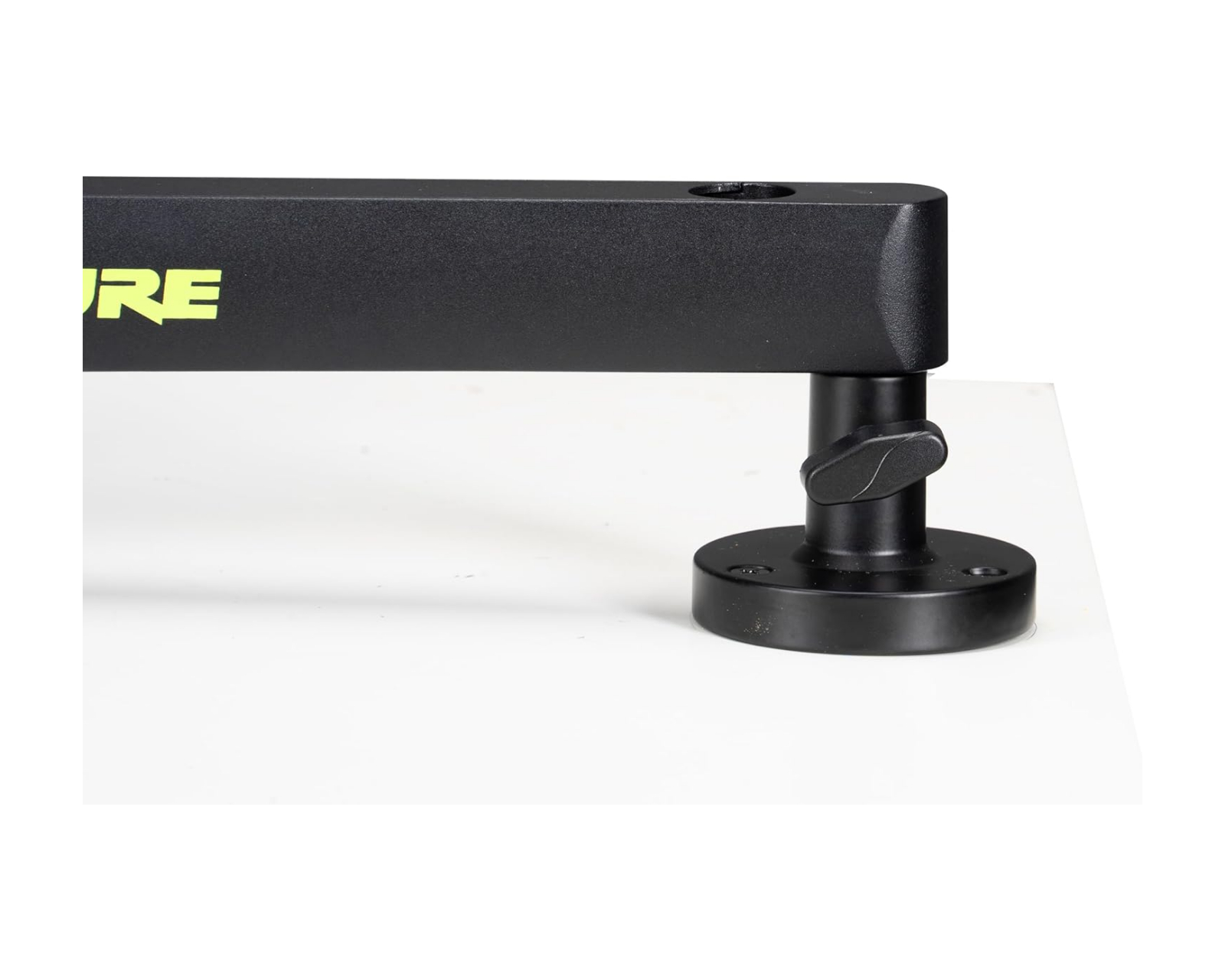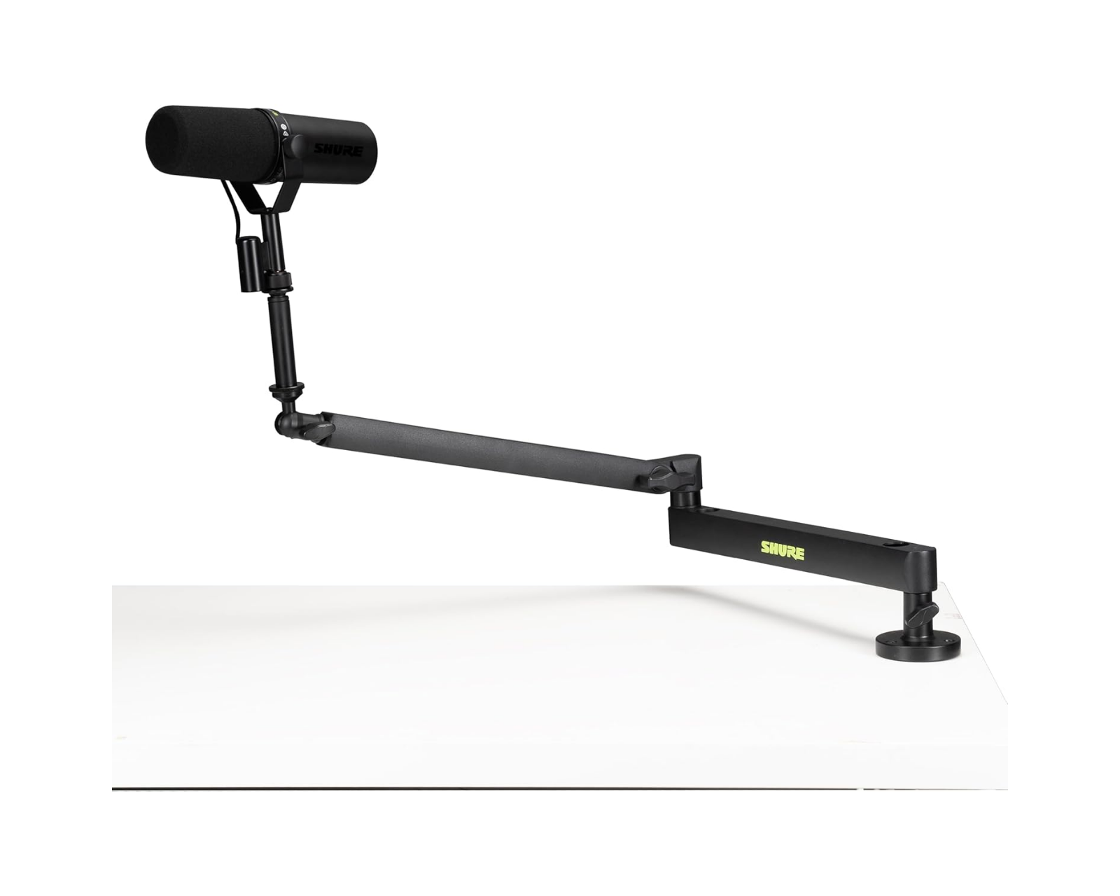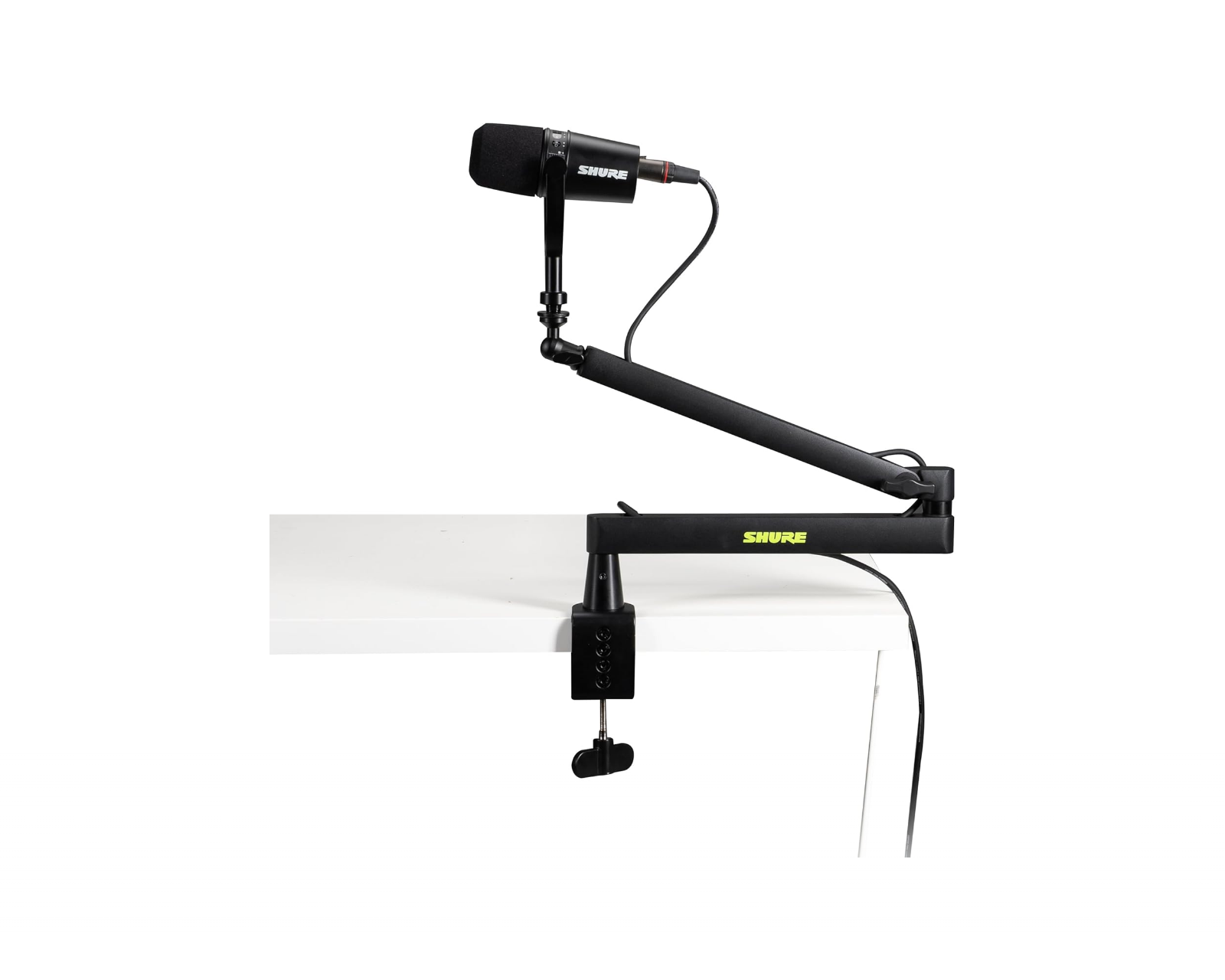 Low Profile Boom är en mikrofonarm från Shure som är designad för poddare, streamers och broadcasters. Den har en lågprofilkonstruktion som gör att den placeras under axelhöjd, vilket ger en obehindrad sikt och passar både små och stora skrivbord. Mikrofonarmen klarar av att hantera mikrofoner upp till 2 kilo i vikt.Mikrofonarmen erbjuder 360 graders rotation och 90 graders vertikaljustering för att ge maximal flexibilitet i placeringen av mikrofonen. Den robusta stålramen säkerställer stabilitet och hållbarhet. Installationen är enkel och kan göras med valfri klämma eller skruvfäste. Inbyggda magnetiska kabelkanaler gör att kablar kan hanteras smidigt och utan oordning, vilket bidrar till en organiserad arbetsyta. Den är också kompatibel med mikrofonserier som Shure SM7 och MV7.