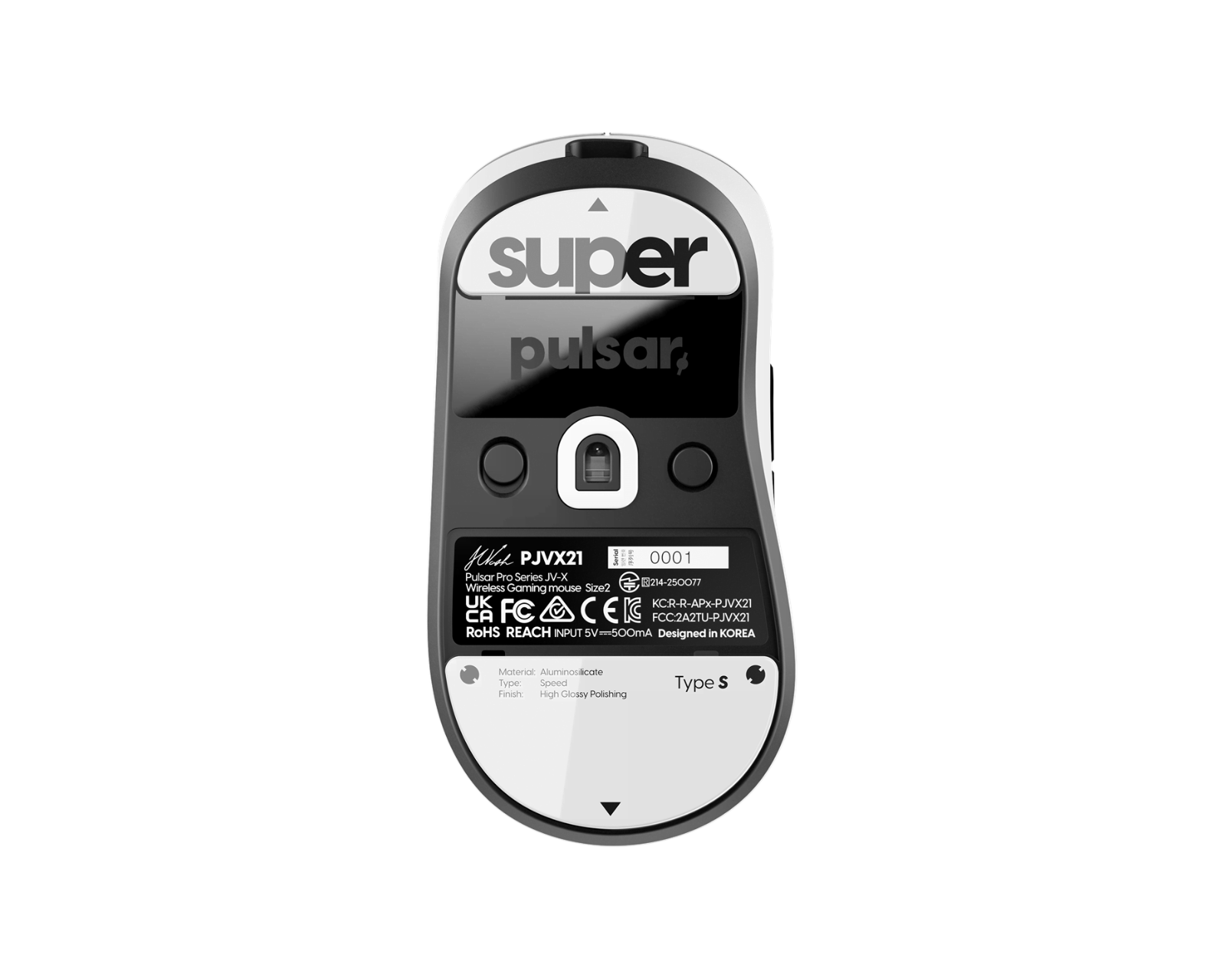 Glass Skates Type-S för JV-X är ett musglide-set från Superglide. Dessa glidytor är tillverkade av starkt aluminiumsilikatglas, vilket ger en mycket slät yta för mikrosikte och spårning. De är designade för gamers som söker en stabil och snabb glidupplevelse utan att slitas lika snabbt som traditionella PTFE-fötter.Materialet i Superglide består av härdat glas med en ny mikrotextur som möjliggör en snabb och smidig glidning, samt utmärkt stoppkraft i olika speltempon. Det rundade kantdesignen erbjuder en mjukare känsla vid användning. Dessa glidytor har en lång livslängd och kan användas nästan permanent utan signifikant slitage. Notera att dessa skates inte rekommenderas för användning på glas musmattor.