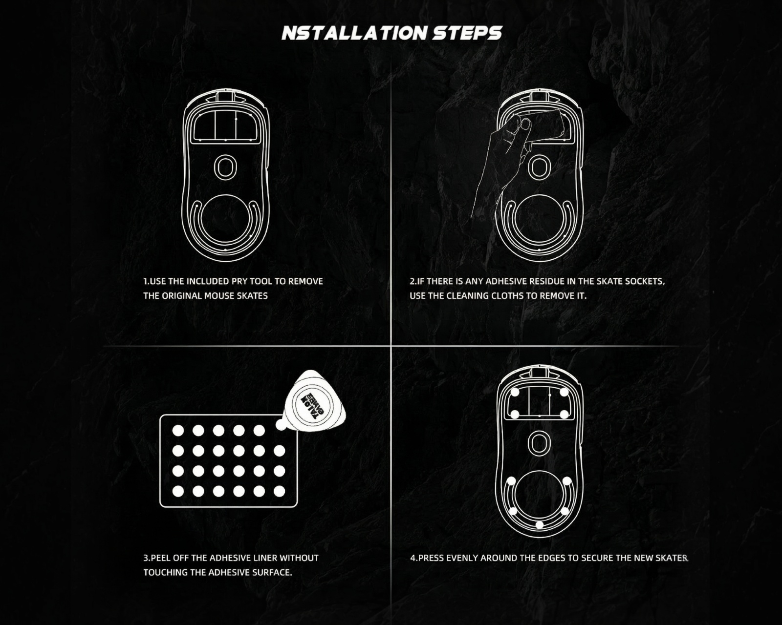 Iwa - Dot Mouse Skates för Glass Mousepad är utformade för att förbättra prestandan på musen och erbjuder ett optimalt glid på glasytor. Dessa skates är tillverkade av UPTFE-material vilket ger en hög slitstyrka och en sömlös glidupplevelse utan att tumma på kontrollen. Med sina ultra-abrasive resistance och noise reduction egenskaper, är dessa skates ideala för precision och tyst gameplay.De nya musskates är konstruerade med en super rund edge-polishing process vilket ger en hållbar och smidig yta för musens rörelser. 3M-adhesivet gör installationen enkel och utan risk för rester eller repor vid borttagning. Dessutom bidrar den unika designen för att reducera ljud och vibrationer under användning, vilket förbättrar kontrollerbarheten vid snabba rörelser. Varje förpackning innehåller 48 skates samt ett utdrag för enkel installation och rengöringsverktyg.
