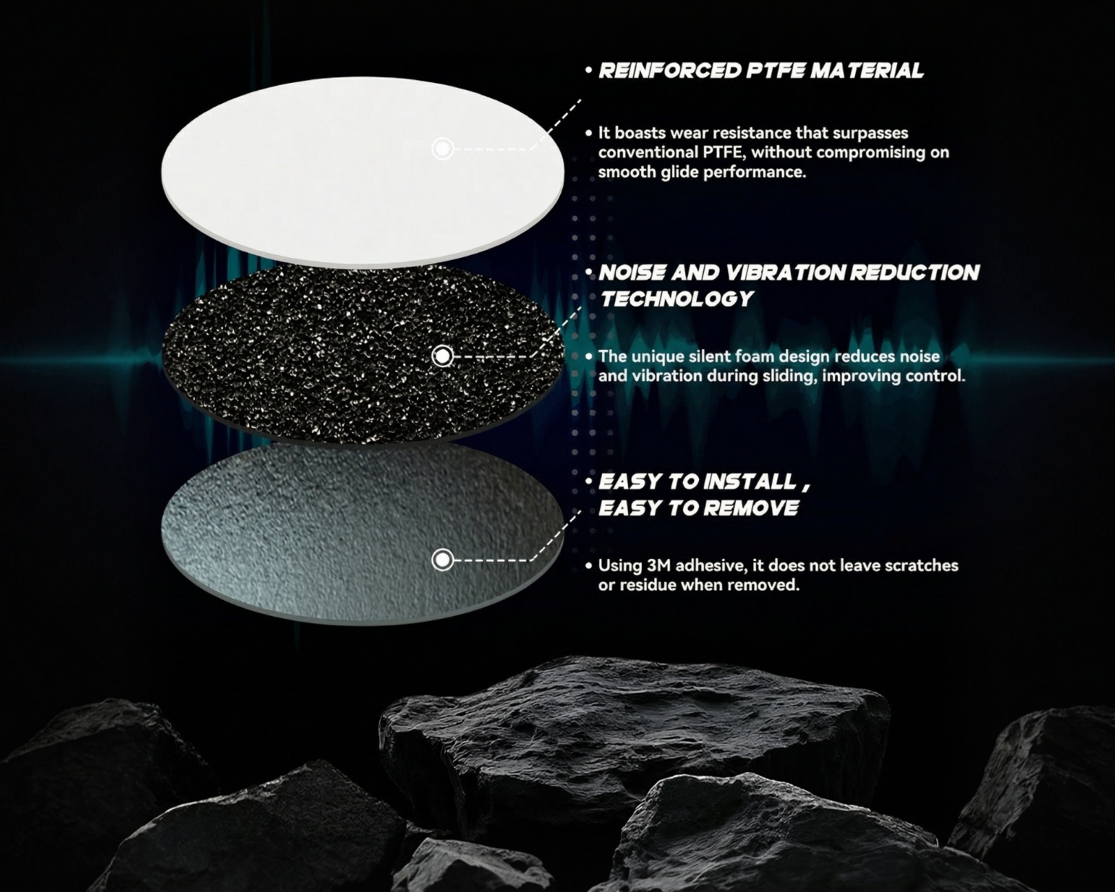Kumo - Speed Mouse Skates från Talon Games, speciellt utformat för användning på tyg-musmattor. Dessa skates erbjuder extrem hållbarhet och optimal glidförmåga, vilket säkerställer en precis kontroll under spelande. Med en tjocklek på 0,95±0,05 mm ger de en perfekt balans mellan hastighet och stabilitet.Produkten är tillverkad av förstärkt PTFE-material, vilket ger en slitstyrka som överträffar traditionell PTFE utan att påverka glidprestandan. Teknologin för ljud- och vibrationsreduktion minskar oljudet och vibrationerna vid glidning, vilket förbättrar kontrollen. Med hjälp av 3M-adhesiv är skatesen lätta att installera och ta bort utan att lämna några repor eller rester. Kumo - Speed Mouse Skates levereras med 48 skates och verktyg för installation och rengöring, vilket gör det enkelt att underhålla utrustningen.