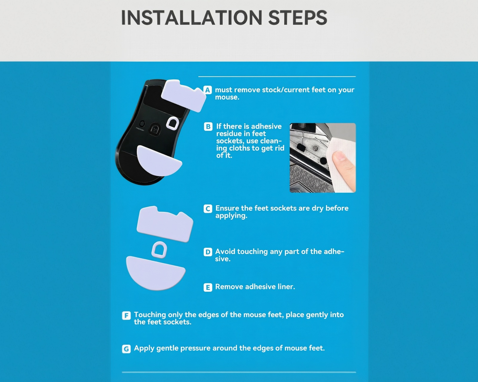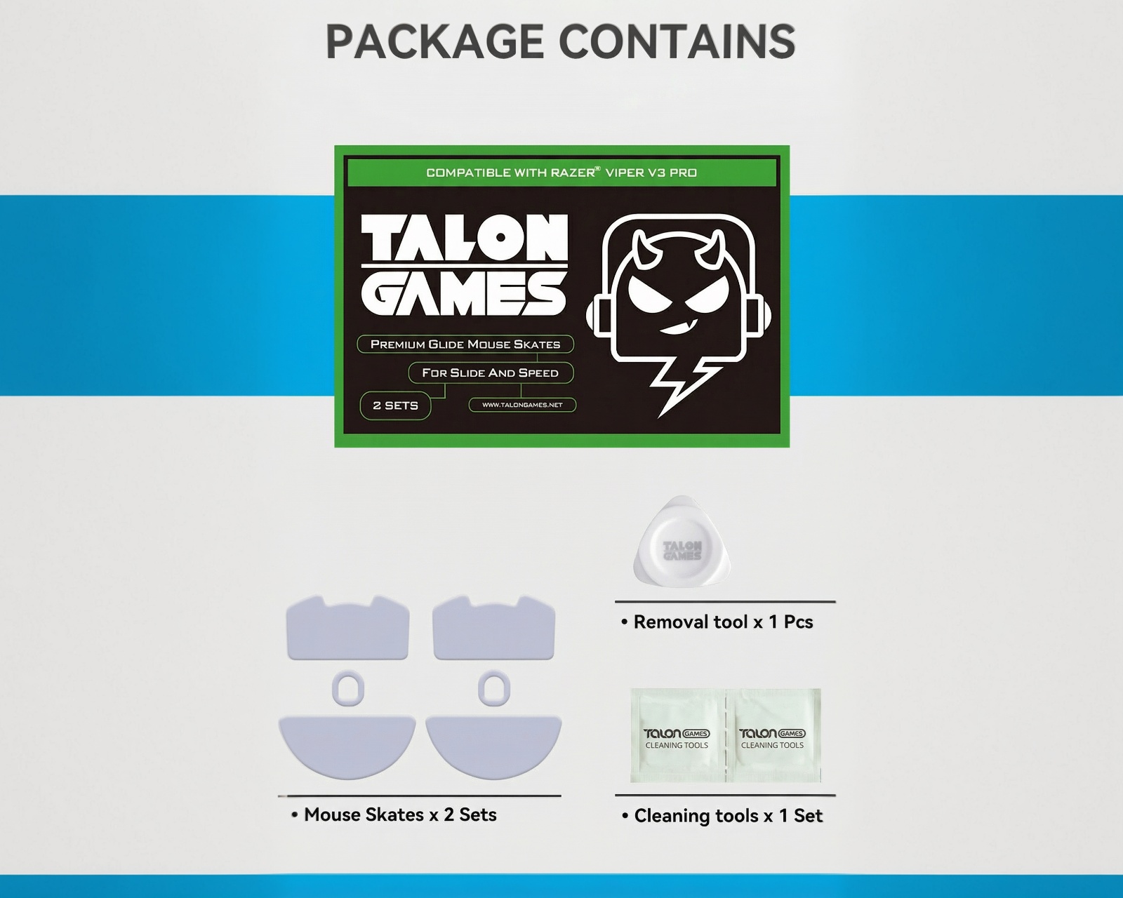 Mouse Skates från TalonGames erbjuder en högkvalitativ lösning för ökad precision och kontroll under användning. Dessa musfötter är tillverkade av ett specialiserat Teflon-material med en noggrant kalibrerad tjocklek, vilket ger en jämn och konsekvent glidning. Genom att byta ut de originalfötterna på din mus kan du förbättra din spelförmåga avsevärt.Produkten är framställd av 100% jungfruligt PTFE-material, vilket minimerar friktion och är miljövänligt. De rundade kanterna på varje fot möjliggör ett slittåligt glid samt en enkel installation med 3M:s klister för att undvika rester. Den väl avvägda tjockleken har färdigställts mån av musens sensors hållbarhet och noggrannhet, vilket är viktigt för spelare med olika spelstilar. Dessa fötter förbättrar också spelupplevelsen genom att minska greppspänning och handledsbelastning under långa sessioner.