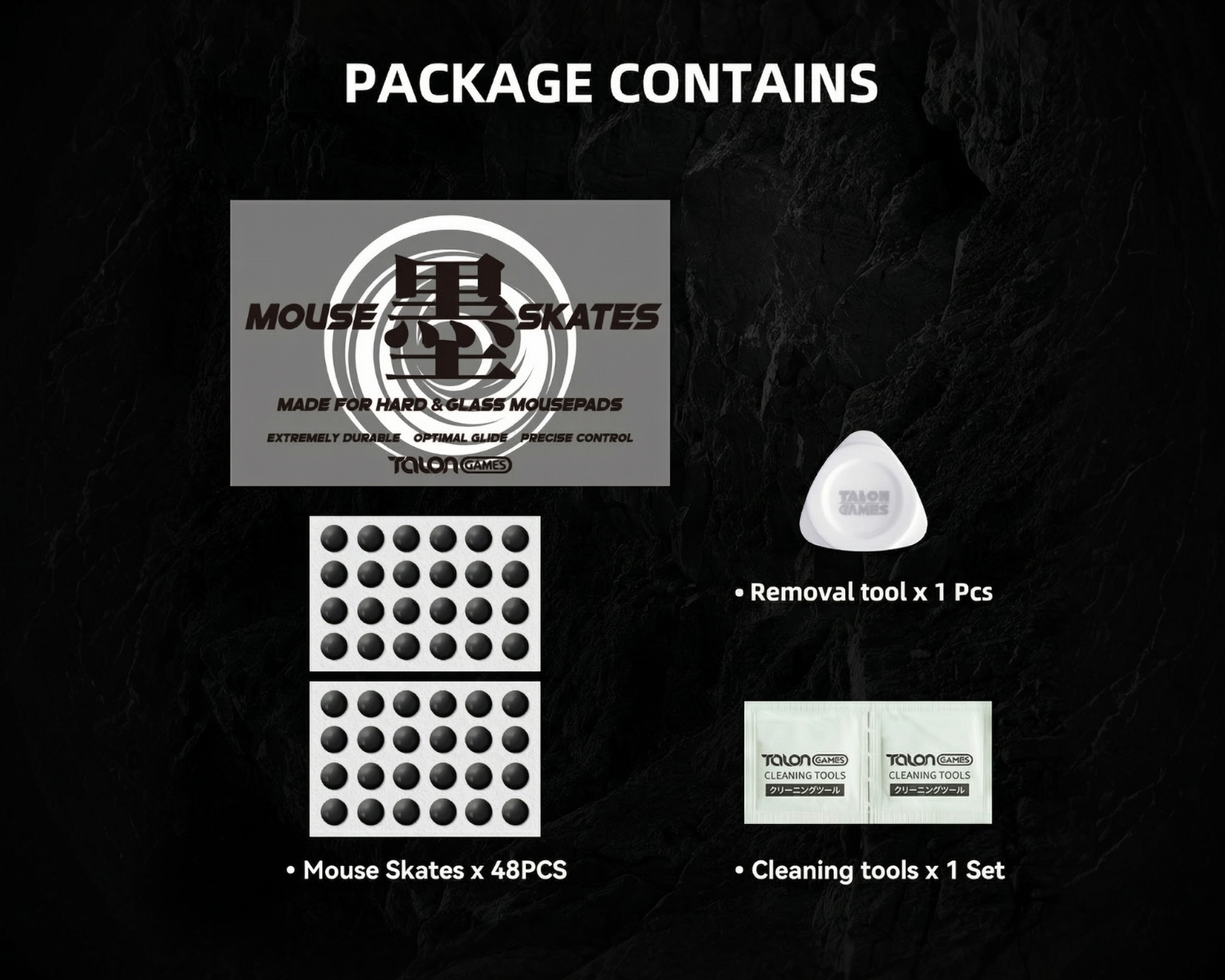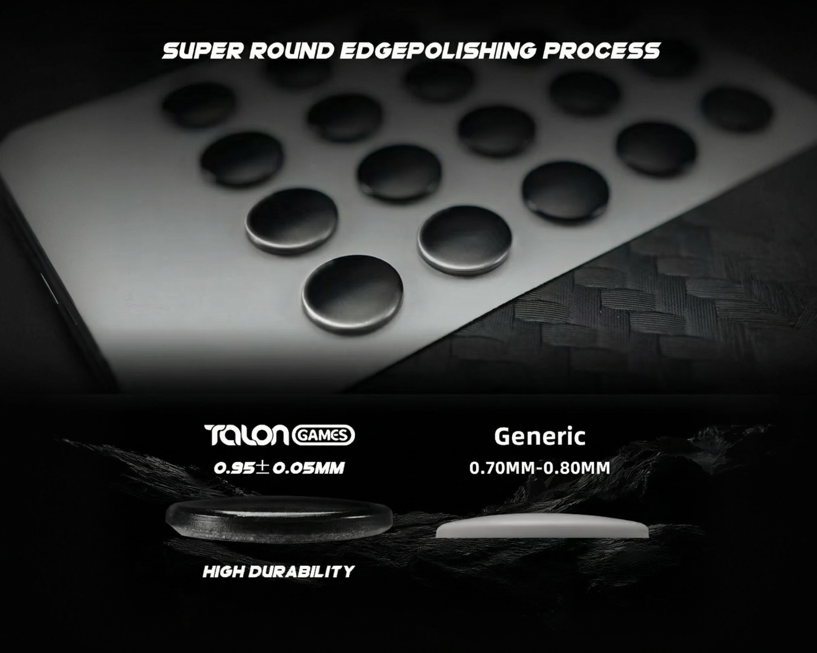 Ett sett med musskates från Talon Games, speciellt designade för hårda och glasytor. Dessa skates erbjuder optimal glidförmåga och precisionskontroll, vilket förbättrar användarens spelupplevelse. Med en diameter på 6 mm är de utformade för långvarig användning.