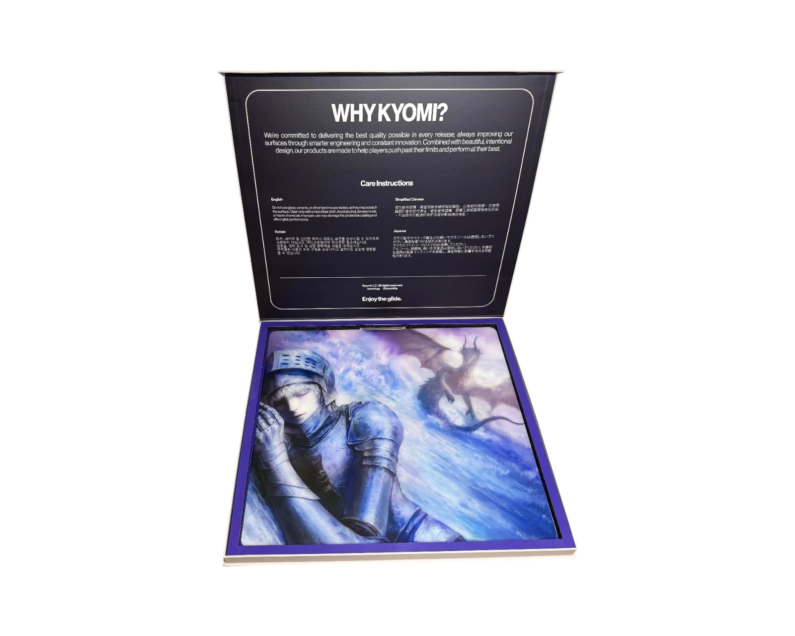 Utöver det estetiska fokuserar Kyomi på att leverera musmattor som kombinerar hög kvalitet, exceptionell hastighet och kontroll utan dess like. Detta gör att både professionella och entusiastiska gamers kan få en optimal spelupplevelse, oavsett vilken typ av spel de föredrar. För Kyomis engagemang för innovation och kvalitet har varumärket fått uppmärksamhet inom gaming-communityn.