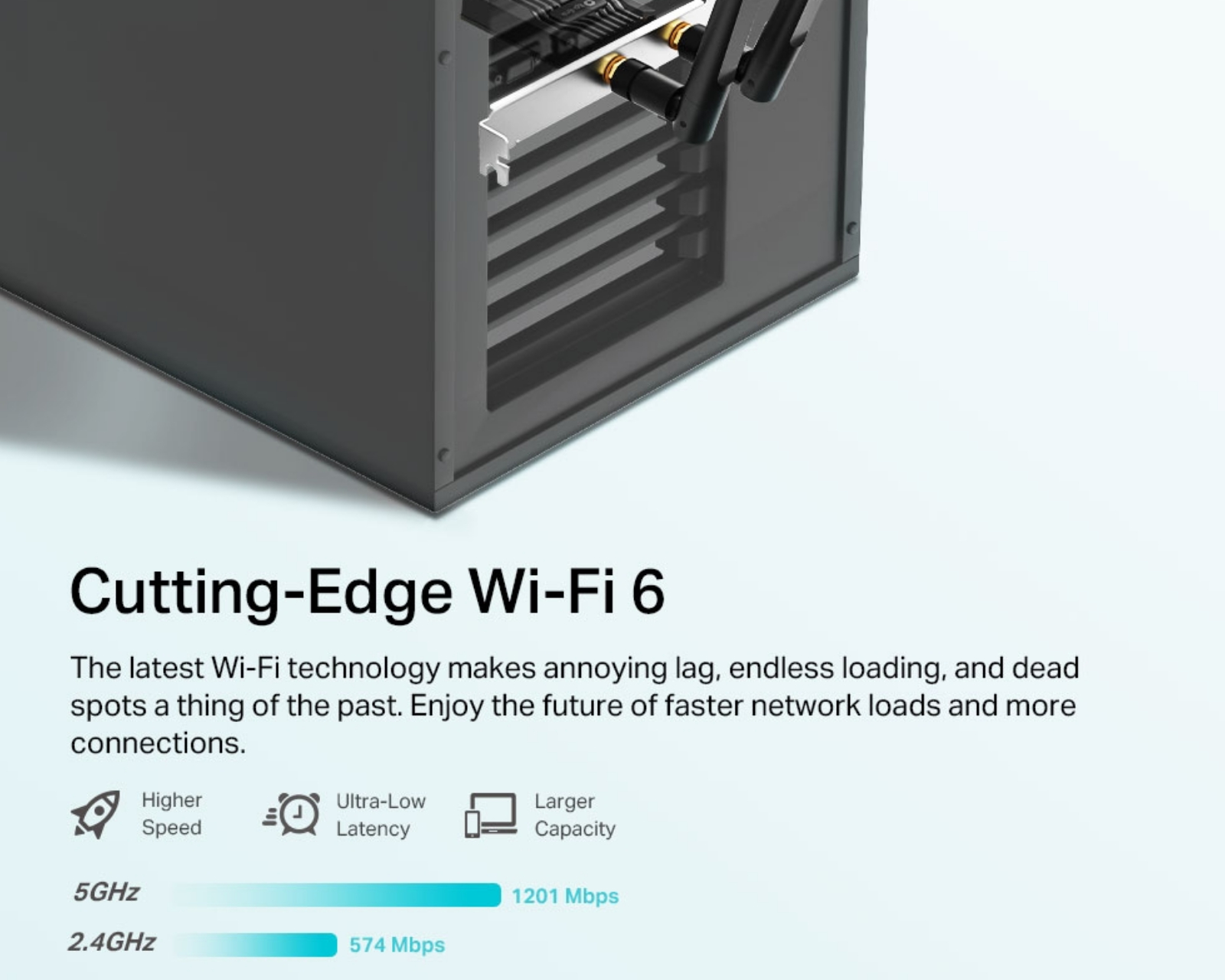 - Wi-Fi 6 hastighet upp till 1201 Mbps (5 GHz)
