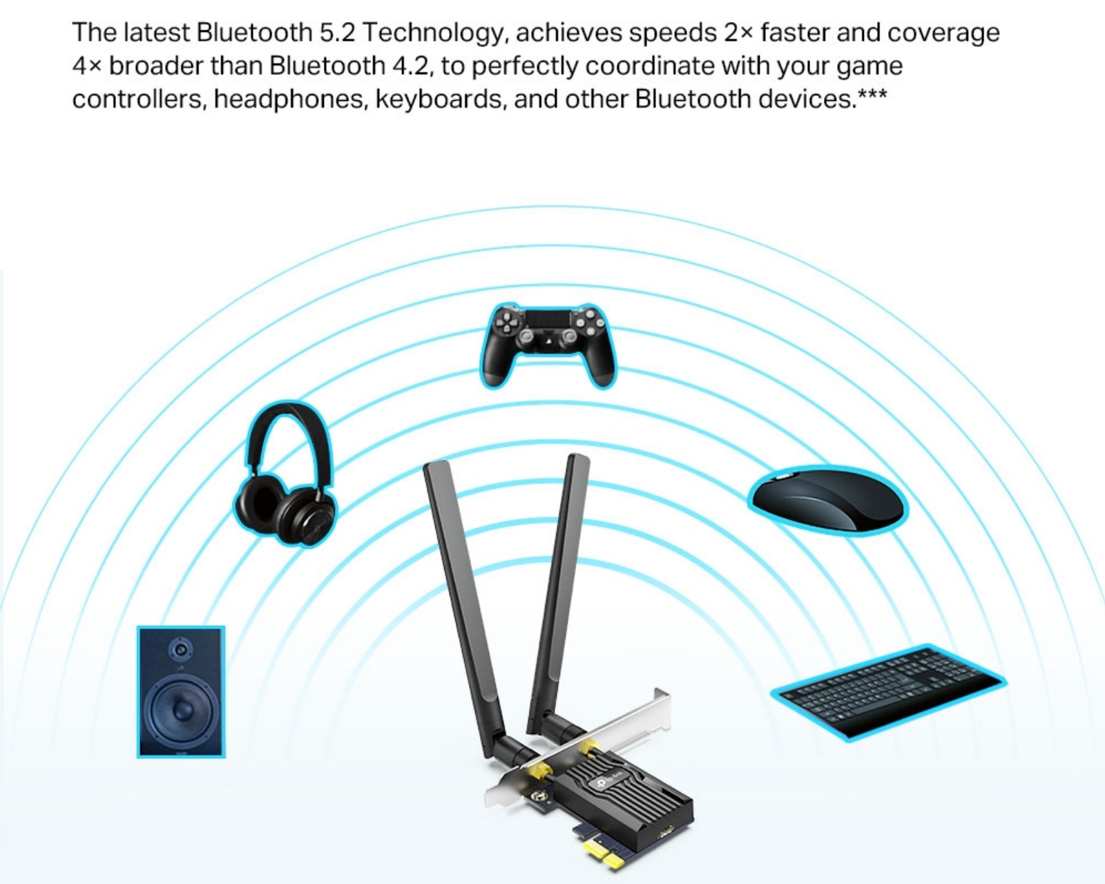 Archer TX20E är en PCIe-adapter från TP-Link som erbjuder stöd för Wi-Fi 6 och Bluetooth 5.2. Denna enhet ger enastående hastigheter med upp till 1201 Mbps på 5 GHz och 574 Mbps på 2.4 GHz, vilket bryter gigabit-barriären. Med två externa högpresterande antenner säkerställs en bredare signal täckning i hela hemmet, vilket bidrar till ökad stabilitet och anslutning.Archer TX20E är uppbyggd för att leverera hög prestanda och har stöd för de senaste tekniska standarderna, inklusive 802.11ax, ac, a, b, g och n. Bluetooth 5.2-teknologin möjliggör snabbare hastigheter och ökar täckningen med upp till fyra gånger jämfört med föregående versioner. Dessutom ger WPA3 säkerhetsprotokoll förbättrad skydd för personlig lösenordssäkerhet. Adapterns design går även i linje med att vara bakåtkompatibel, vilket gör den användbar för olika nätverkskonfigurationer.