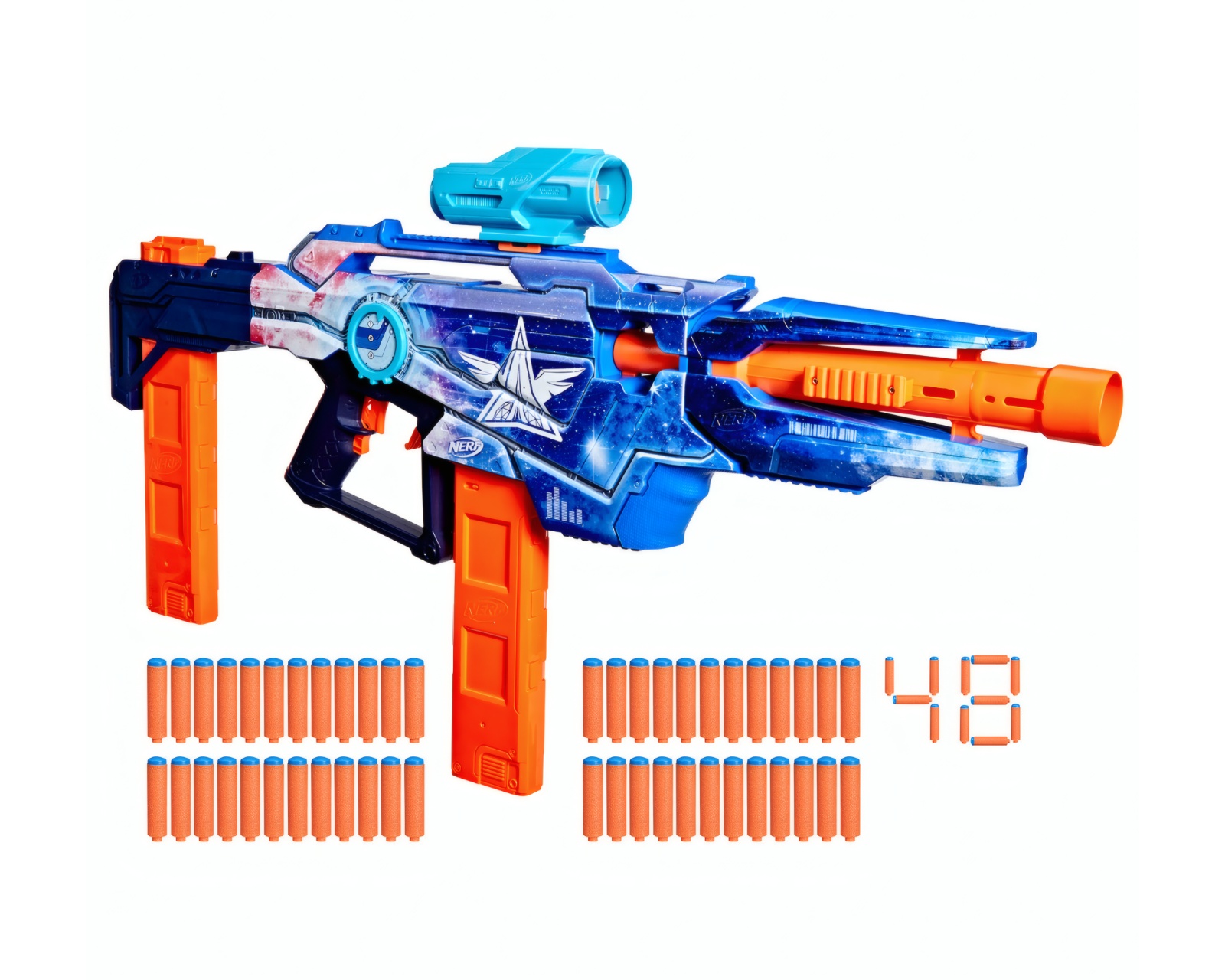 N-Series Blaster Utrustning - Galaktisk Kommendant är en NERF-blaster som erbjuder anpassningsbarhet med över 1000 kombinationer. Denna blaster har tre avfyrningslägen: halvautomatisk, 3-dart burst och helautomatisk. Den inkluderar 48 N1-darts samt ett sikte, kolv och pipa. Blastern är särskilt lämplig för gamers som vill efterlikna sina favoritvideospel. Blastern är tillverkad med högkvalitativa material som säkerställer hållbarhet och långvarig användning. De utbytbara tillbehören gör att användaren kan byta komponenter för att optimera prestandan.N1-darts är designade för att ge maximal precision och hastighet, vilket förbättrar användarens spelupplevelse. Siktet är konstruerat för att ge bra sikt under olika förhållanden. Tack vare designen är Galactic Commander-blastern kompatibel med andra N1 dartblasters, vilket ökar dess mångsidighet och användbarhet.