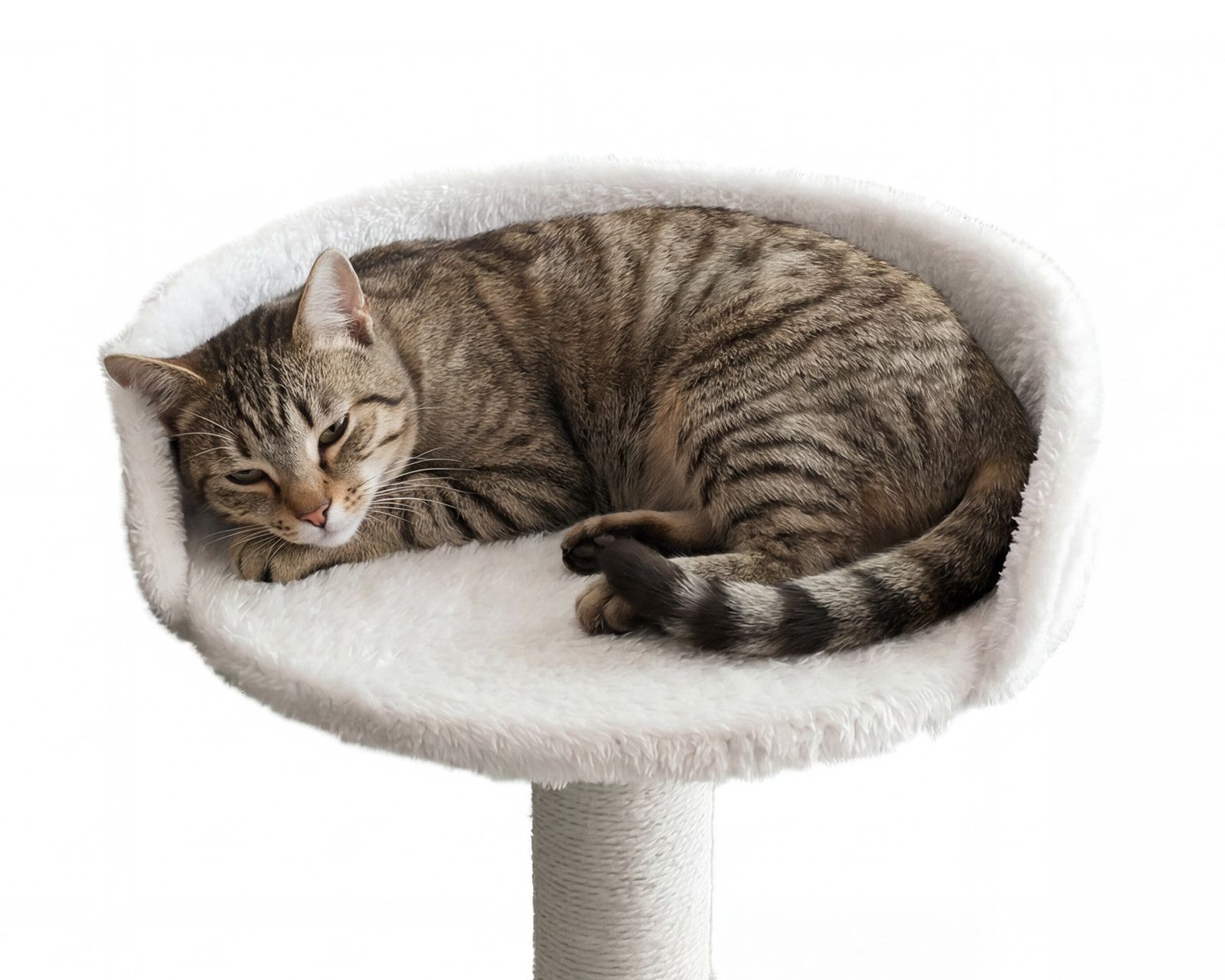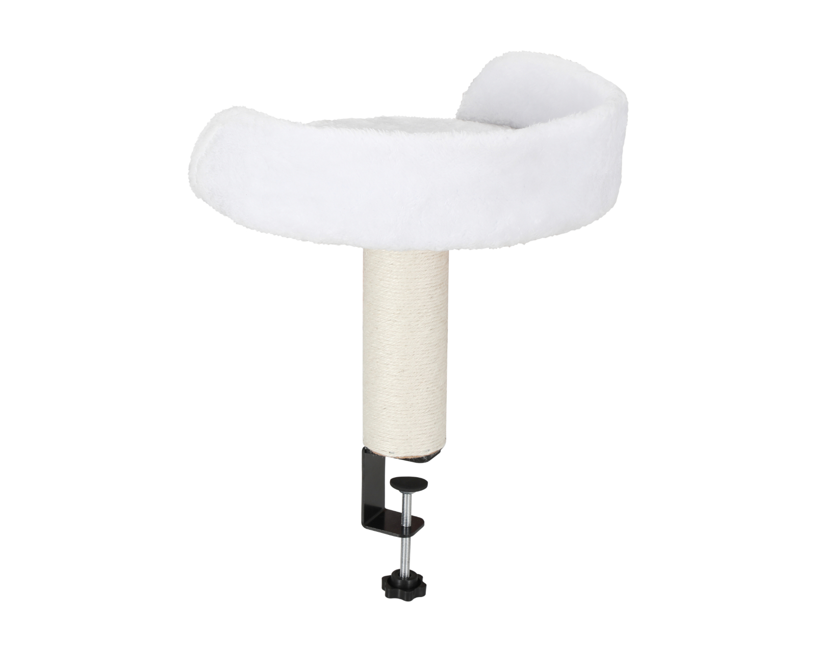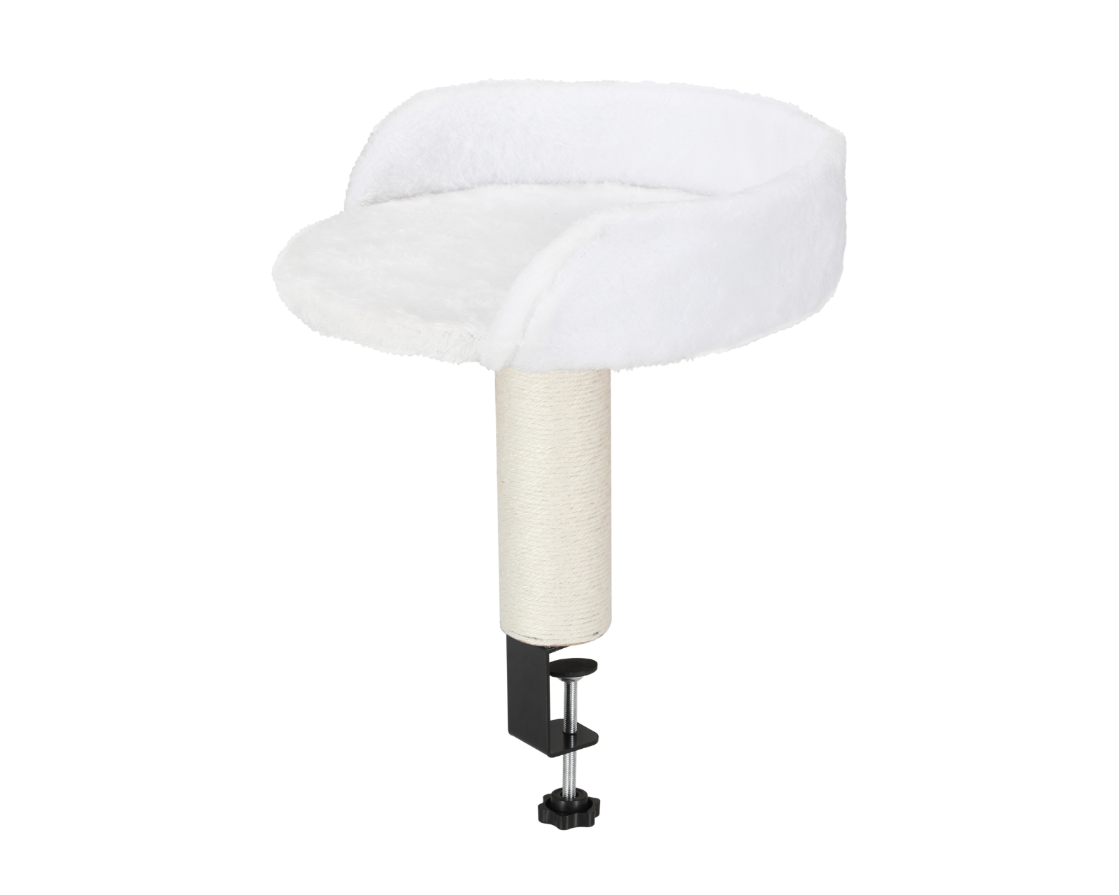 Bordsmonterad kattsäng är en kattbädd från MaxMount som fästs på skrivbordet med en klämma. Denna design gör det möjligt för katten att stanna nära användaren under arbete eller gaming, vilket skapar en säker och bekväm plats för vila. Kattbädden har en diameter på 30 cm och en höjd på 29 cm, och är konstruerad av högkvalitativa material som säkerställer både komfort och hållbarhet.Materialvalet prioriterar mjukhet och stöd för katten, vilket gör den till en användbar lösning för kattägare. Klämsystemet möjliggör enkel montering och avmontering utan att skada skrivbordets yta. Konstruktionen säkerställer också att bädden förblir stabil under rörelse, vilket gynnar både användaren och katten. Den neutrala vita färgen erbjuder en estetiskt tilltalande finish som är lämplig för både hem- och kontorsmiljöer.
