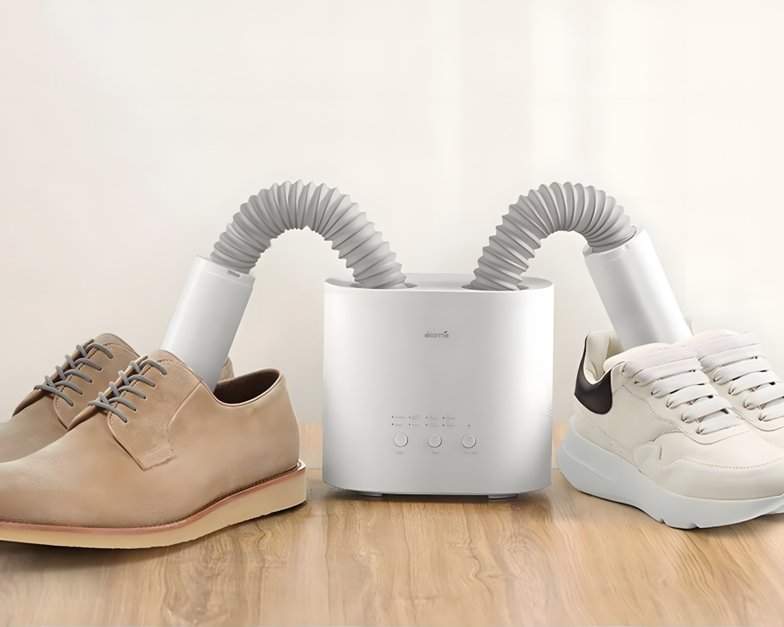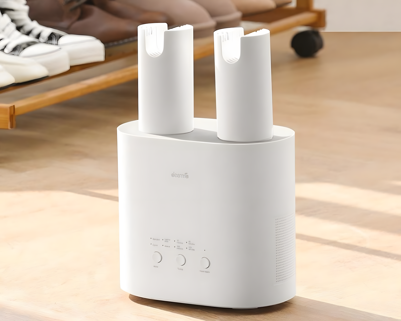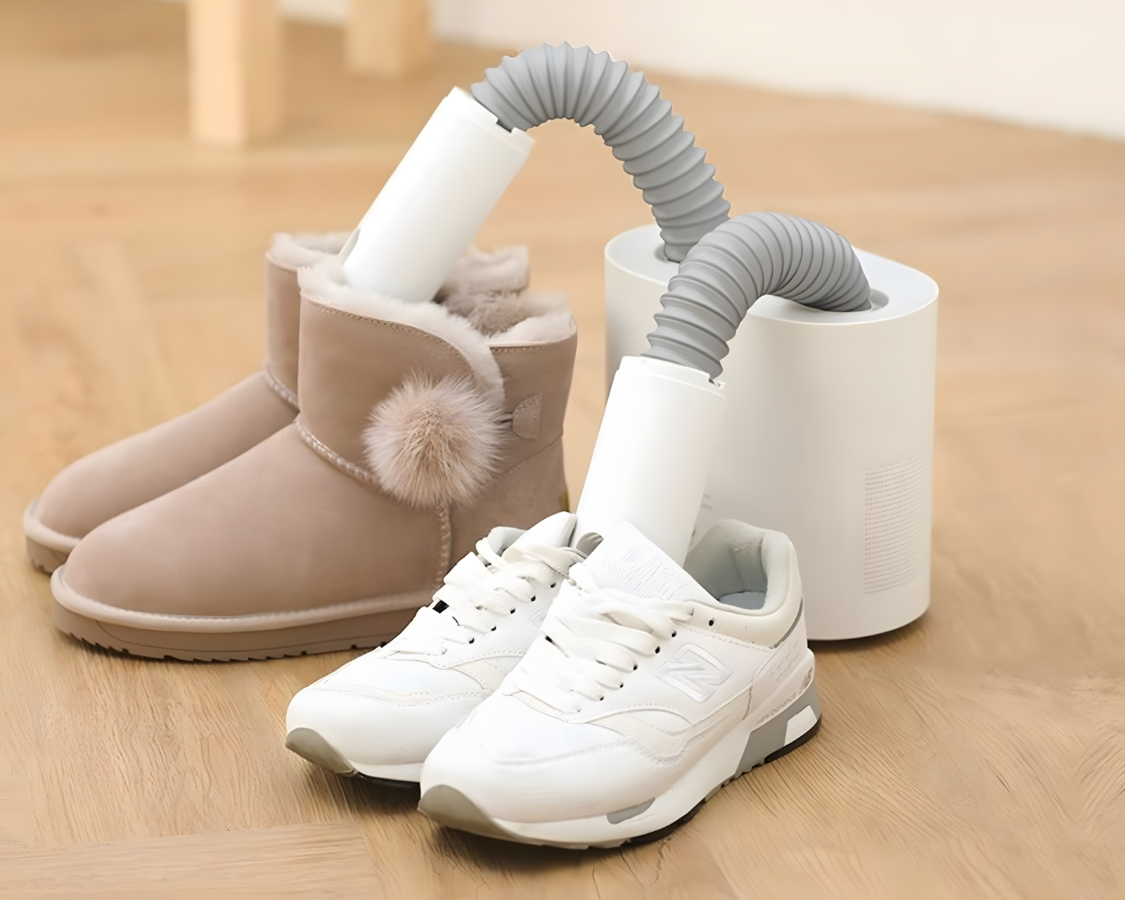 En högpresterande sko tork från Deerma som effektivt torkar blöta skor och motverkar bakterietillväxt. Med en temperaturjustering mellan 30-55°C eliminerar den 99.9% av bakterier och svamp utan att skada skorna. Den keramiska ozongeneratorn säkerställer att lukt och fukt tas bort effektivt, vilket ger dig torra och komfortabla skor även under kalla dagar.Enheten har fyra torklägen som gör den flexibel för olika typer av skor, inklusive läder och sneakers. Det 27 cm långa slangen når djupt in i skorna och säkerställer att varje del blir ordentligt torr. Särskilt fäste för höga skor garanterar stabilitet och effektiv torkning, vilket gör den idealisk även för stövlar. Torkens säkerhetssystem inkluderar temperaturregulator och skydd mot överhettning som ytterligare förstärker användarsäkerheten.