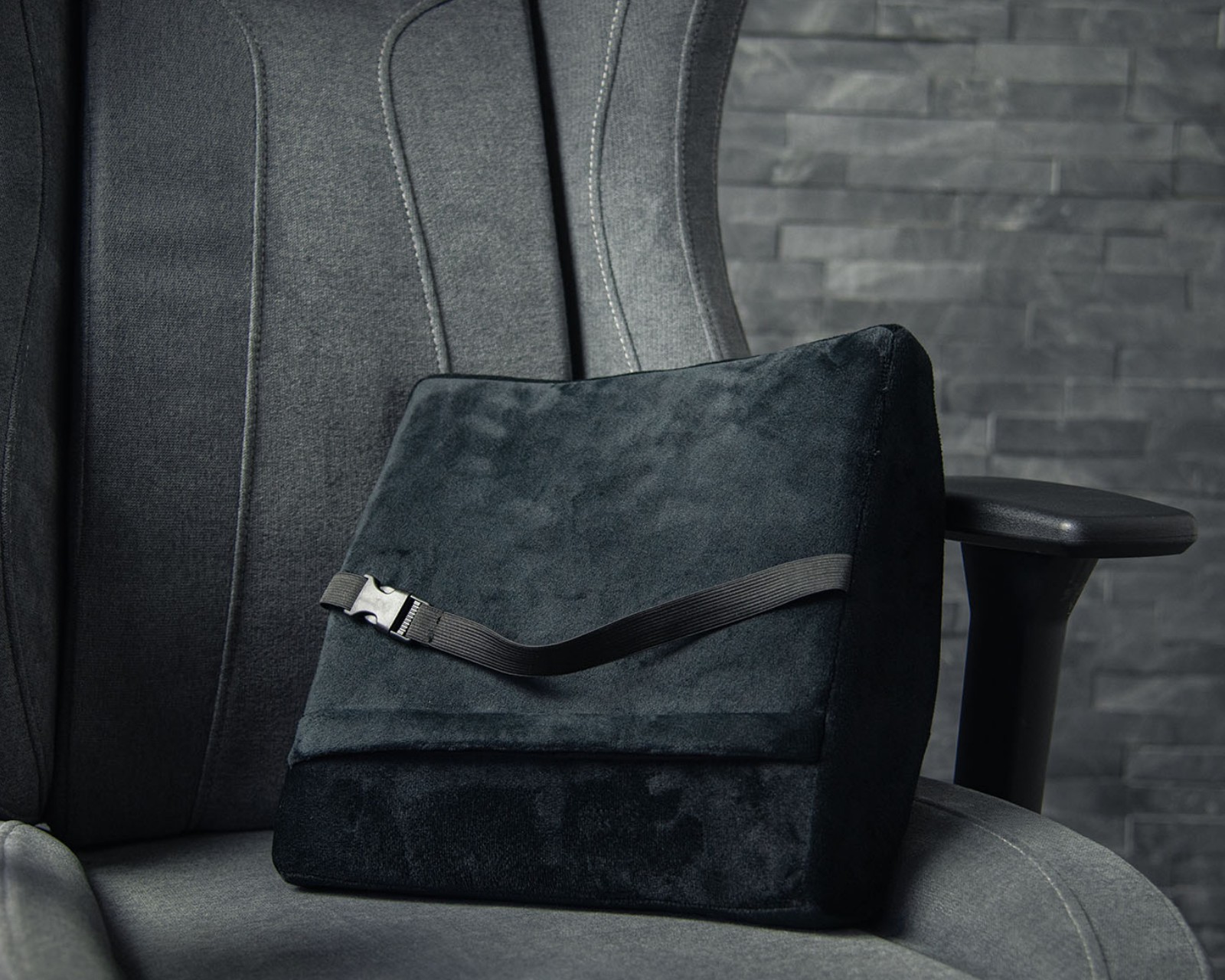 Svankstödskudden i memory foam lindrar ryggsmärta och trötthet efter långa perioder av arbete eller gaming.