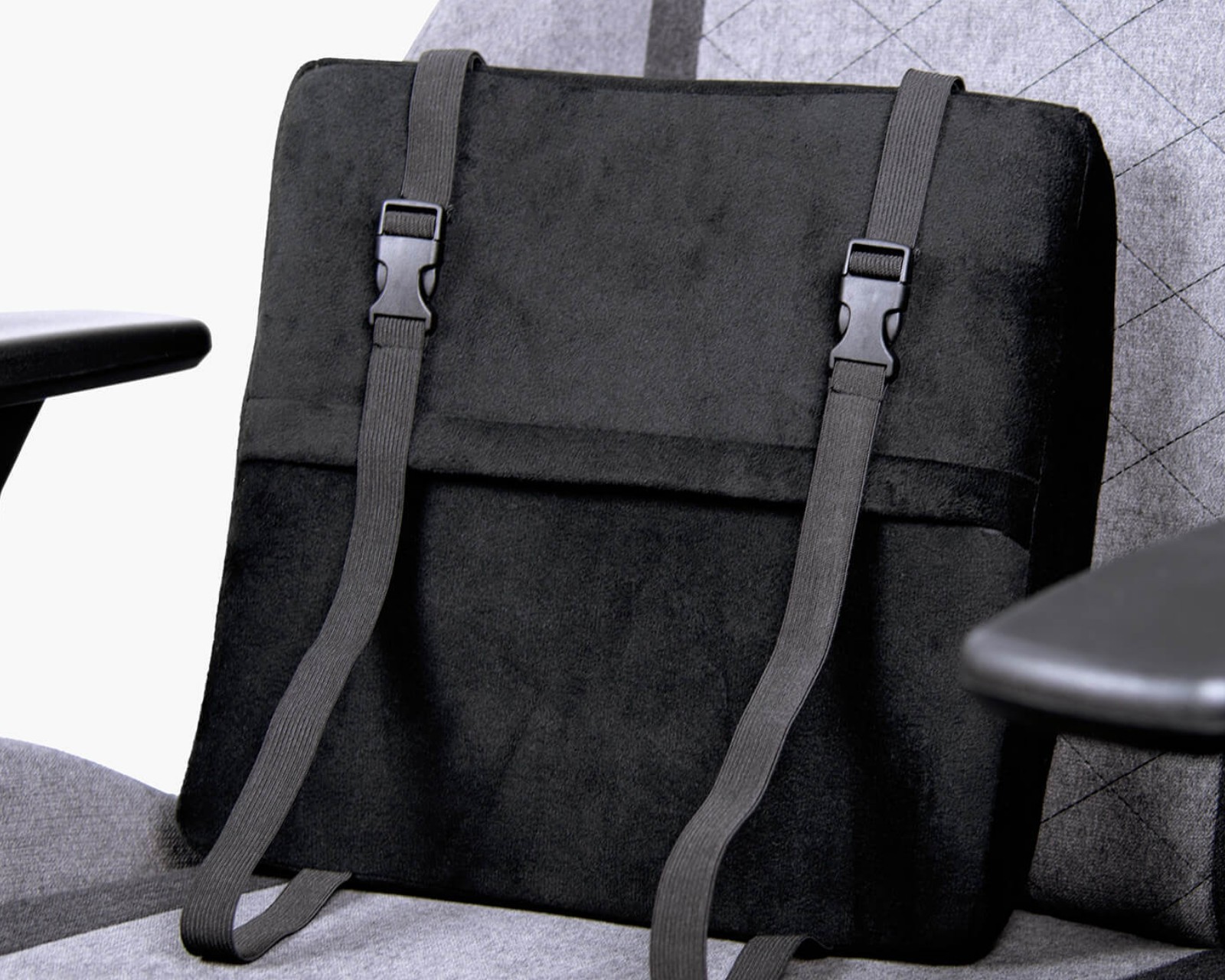 Svankstödskudden i memory foam lindrar ryggsmärta och trötthet efter långa perioder av arbete eller gaming.