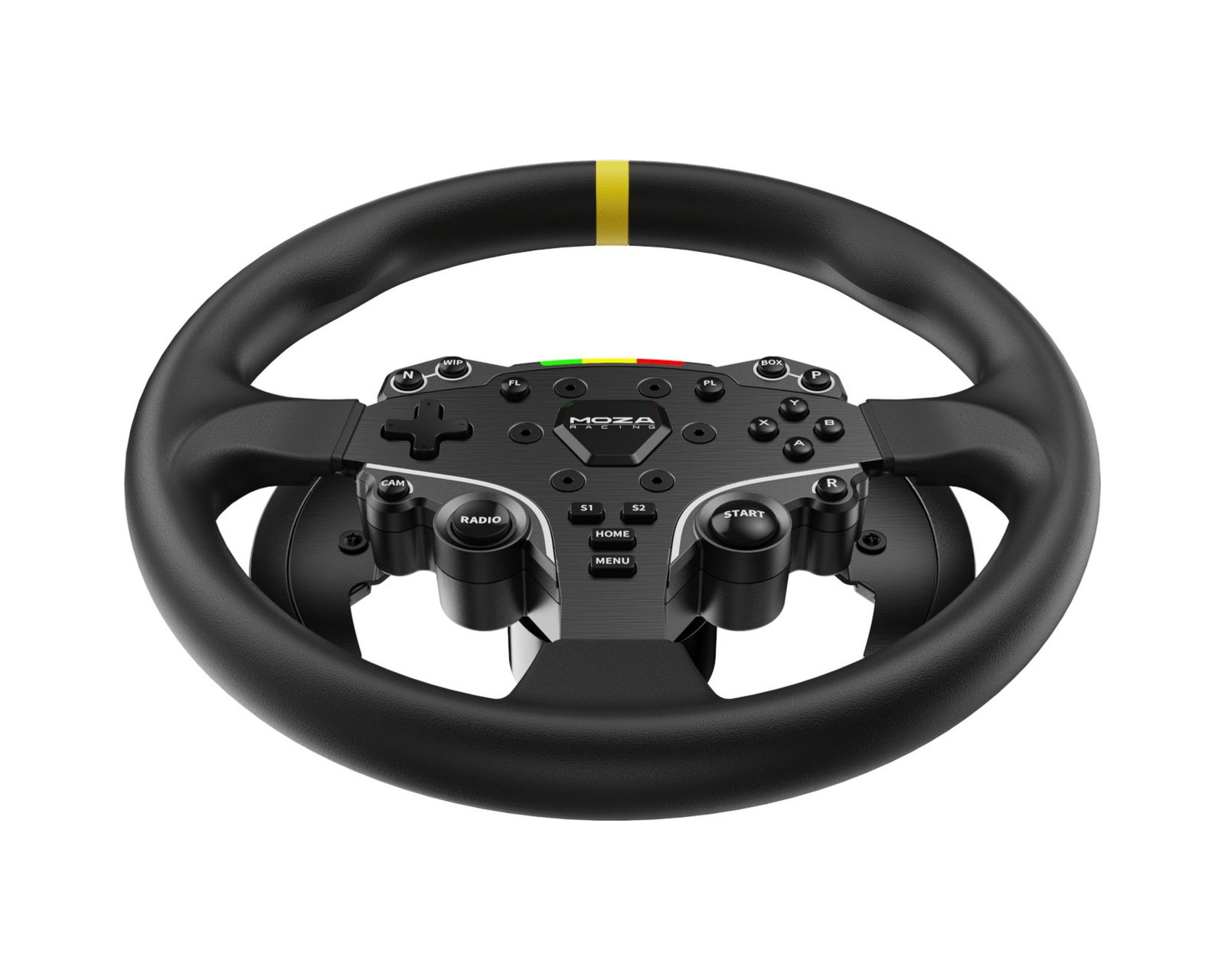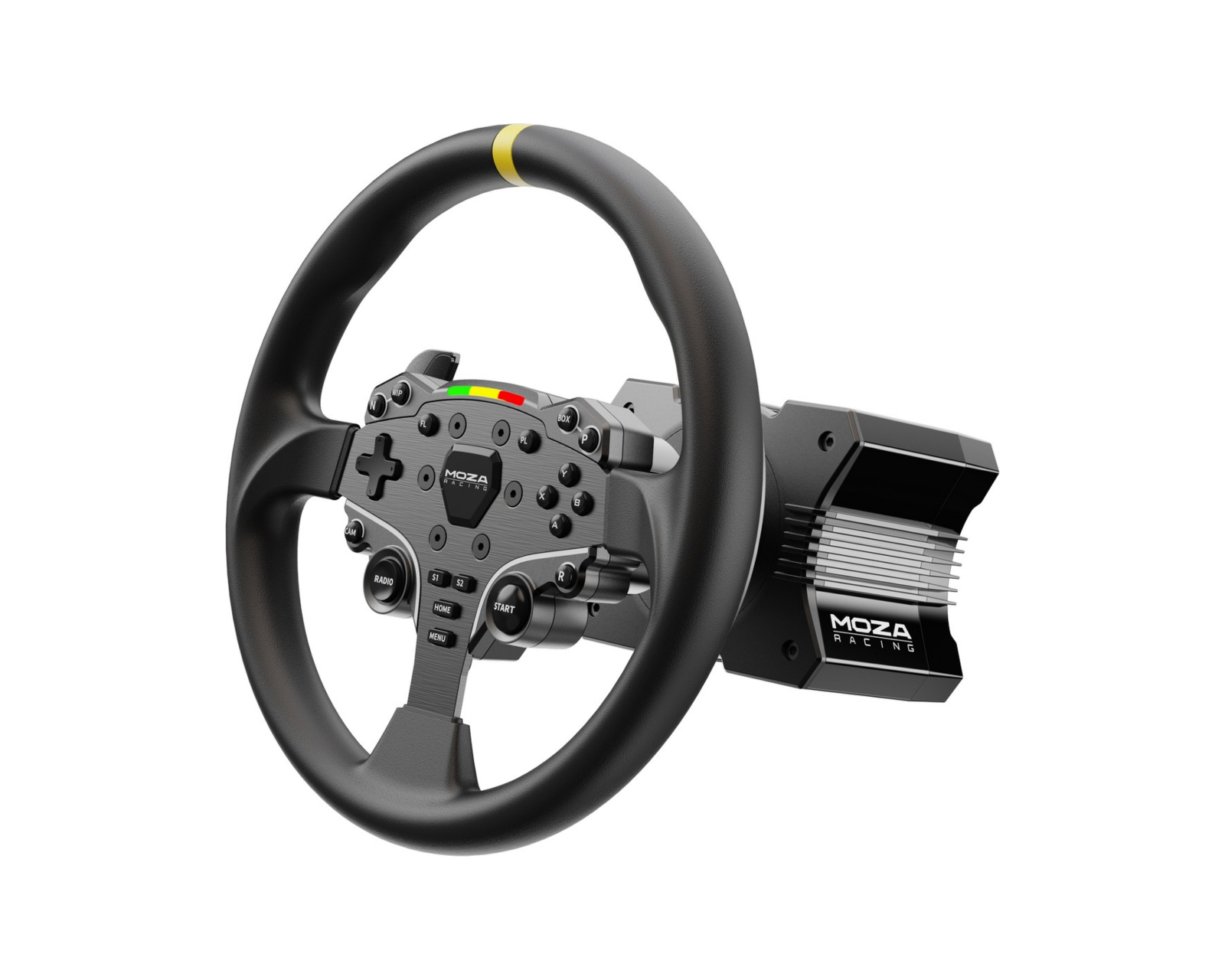 Moza Racing 12-tums runda rattmod från Moza Racing är designad för att ge en mer realistisk körupplevelse för gamers och entusiaster. Med en diameter på 12 tum (305 mm) erbjuder hjulet en ökad storlek i förhållande till det ursprungliga ES-hjulet, vilket närmar sig dimensionerna för en riktig bil. Den ergonomiska utformningen med handtag utan sömmar säkerställer komfort under längre spelsessioner, vilket gör den speciellt attraktiv för drifting-entusiaster.Hjulet är tillverkat i aluminiumlegering av flygkvalitet, vilket ger både hållbarhet och styvhet för en mer responsiv spelupplevelse. Handtagen i mikrofiberläder är omsorgsfullt inslagna för att maximera greppkänslan och motionen under intensiva spelsessioner. Den totala vikten är 850 g, vilket bidrar till ett lågt tröghetsmoment och en förbättrad förmåga att återskapa vägdetaljer. För extra komfort med den större hjulet medföljer även växlingspaddelförlängningsblock för att minska avståndet mellan hjulet och händerna.