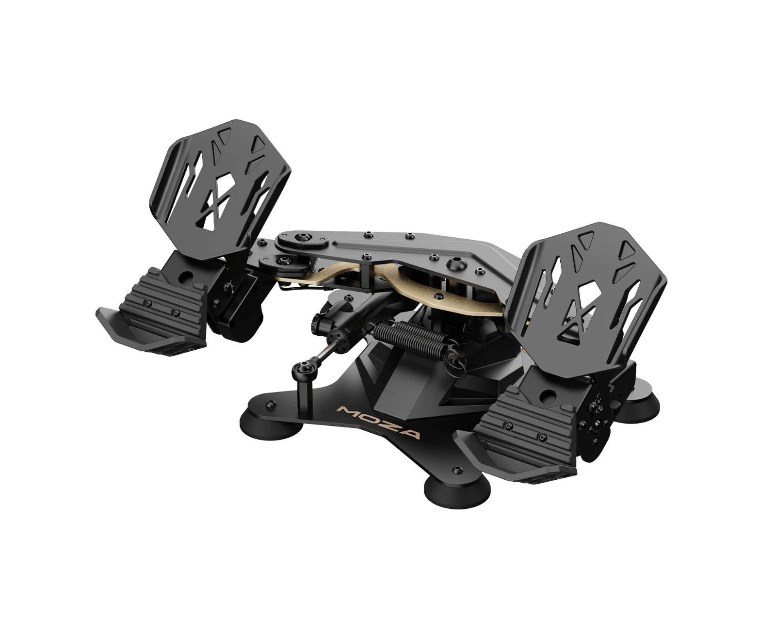 MRP Rudder Pedaler från Moza Racing erbjuder avancerad prestanda och är utformade för att ge en realistisk flygupplevelse och är konstruerad med högkvalitativa material för att säkerställa långvarig hållbarhet. Med en styrvinkel på upp till ±30° och en pedalsystem som kan justeras med en lutning på ±25°, är dessa pedaler idealiska för olika flygscenarier och användarpreferenser.MRP Rudder Pedaler har en robust metallram som ger stabilitet och hållbarhet även under intensiv användning. Swing-arm designen möjliggör en smidig och responsiv rörelse, vilket ger användaren en exakt kontroll över rudderingångarna. Genom att använda högprecisions Hall-sensorer säkerställs en jämn och exakt bromskontroll, vilket är avgörande under taxiing, takeoff och landing. Pedalerna har också anpassningsbara centreringskrafter genom utbytbara fjädrar, vilket möjliggör en personlig anpassning beroende på flygstil. För ytterligare realism, finns en valbar justerbar dämpare.
