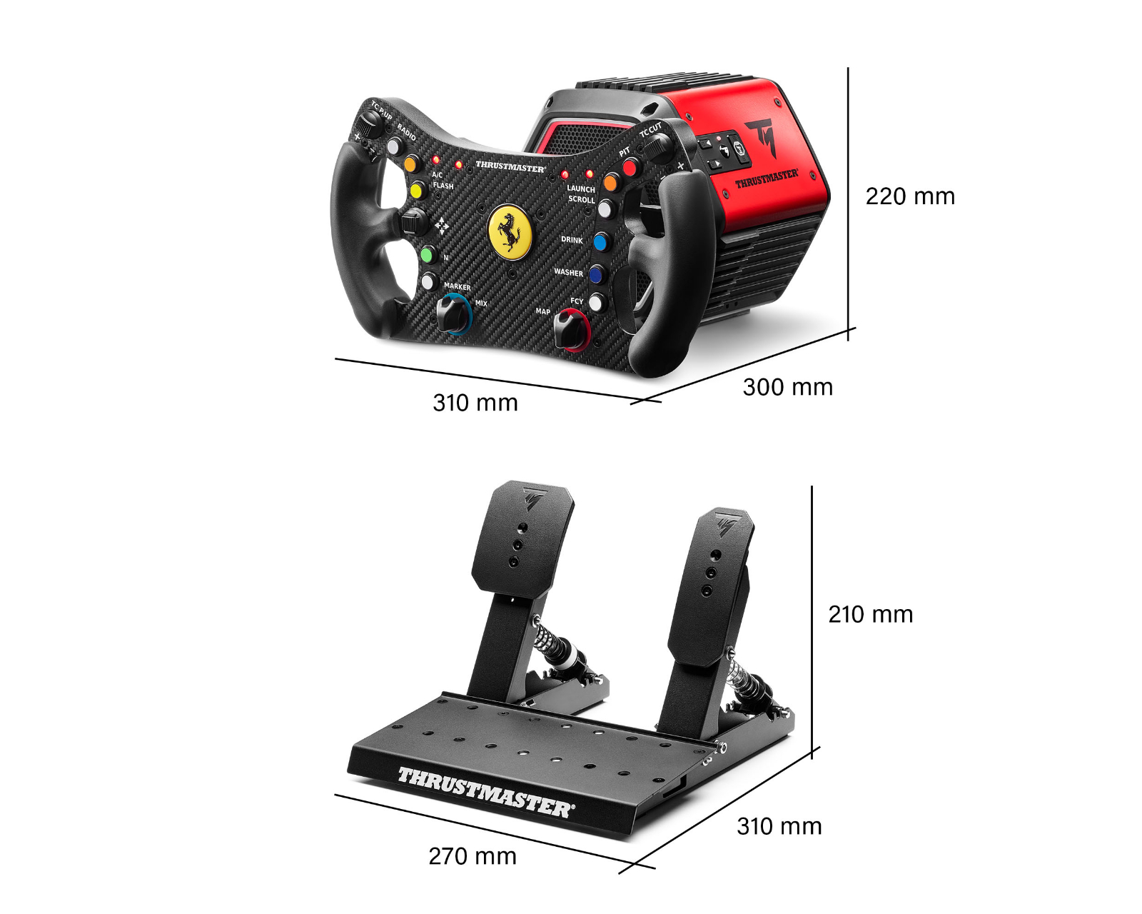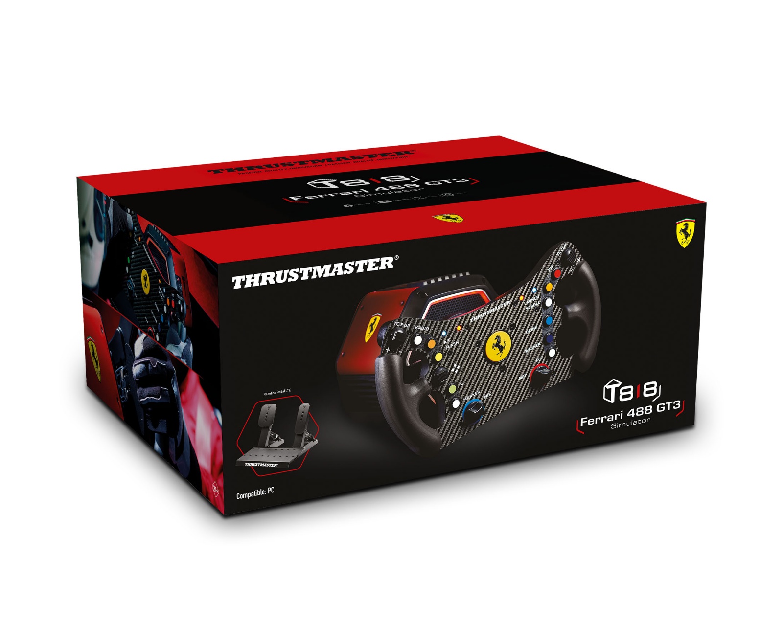 T818 Ferrari 488 GT3 Simulator är en racingpack som kombinerar avancerad teknik med officiell licensiering från Ferrari. Den består av T818 Direct Drive-basen, Ferrari 488 GT3 ratten och Raceline Pedals LTE pedalset, vilket gör den idealisk för seriösa gamers som söker en autentisk racingupplevelse. T818-basen levererar en konstant momentpådrag på 10 N·m med exceptionell respons, vilket ger omedelbar återkoppling och känsla.Den robusta konstruktionen av den nya T818-basen innebär en förstärkt koppling och optimerad motor för ökad pålitlighet.Tillsammans med My Thrustmaster Panel-programvaran kan användare anpassa Force Feedback och spara sina inställningar för en skräddarsydd spelupplevelse. Ferrari 488 GT3 ratten som ingår är en livsstorleksreplik av hög kvalitet, utrustad med 11 knappar, 4 encoders, en D-pad och Mag-Shift paddelväxlar för snabb och exakt växling. Raceline Pedals LTE pedalset erbjuder också lufttryck och justerbar konstruktion, vilket gör att användare kan fine-tune sina inställningar för att passa deras körstil.