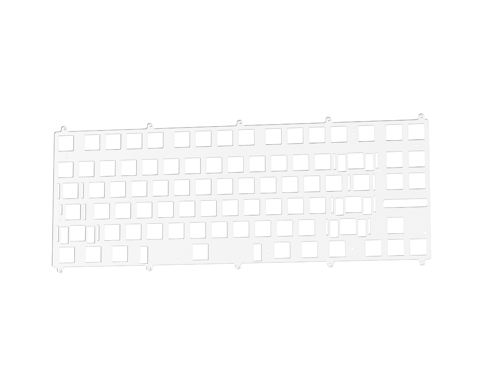Detta är en switchplatta till Holy80 / Wooting 80HE. Denna PC (polykarbonat) plate kommer att förändra akustiken och känslan i din Holy80 / Wooting 80HE. Det är ett utmärkt val när du planerar att använda ett metallcase (aluminium) då den det tar bort all "ping" eller högfrekvent resonans som annars produceras med en vanlig steel metal plate.PC-materialet är mjukare, vilket gör skrivupplevelsen överlag mjukare. Det främjar lägre frekvensljud och resonerar inte med högre frekvensljud.