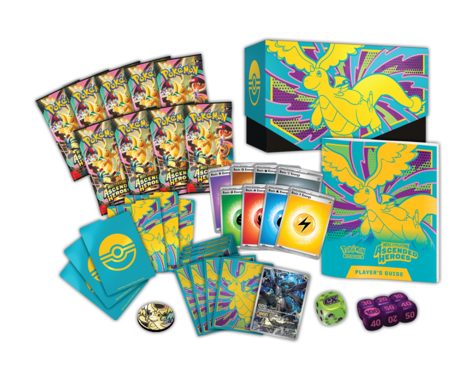 Lådan är konstruerad av slitstarka material med en design som underlättar organisation. Inuti finns 65 kortfickor för att skydda korten samt 40 energikort för spel. För att förbättra spelupplevelsen medföljer också en spelguide till expansionen, 6 skadesiffror och en tävlingslaglig tärning för myntkast, vilket gör den lämplig för både casual och tävlingsspelare. Dessutom ingår en plastmynt och en samlarlåda med 6 avdelare för att hålla allt organiserat. Produkten innehåller även en kod för Pokémon Trading Card Game Live.